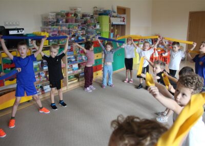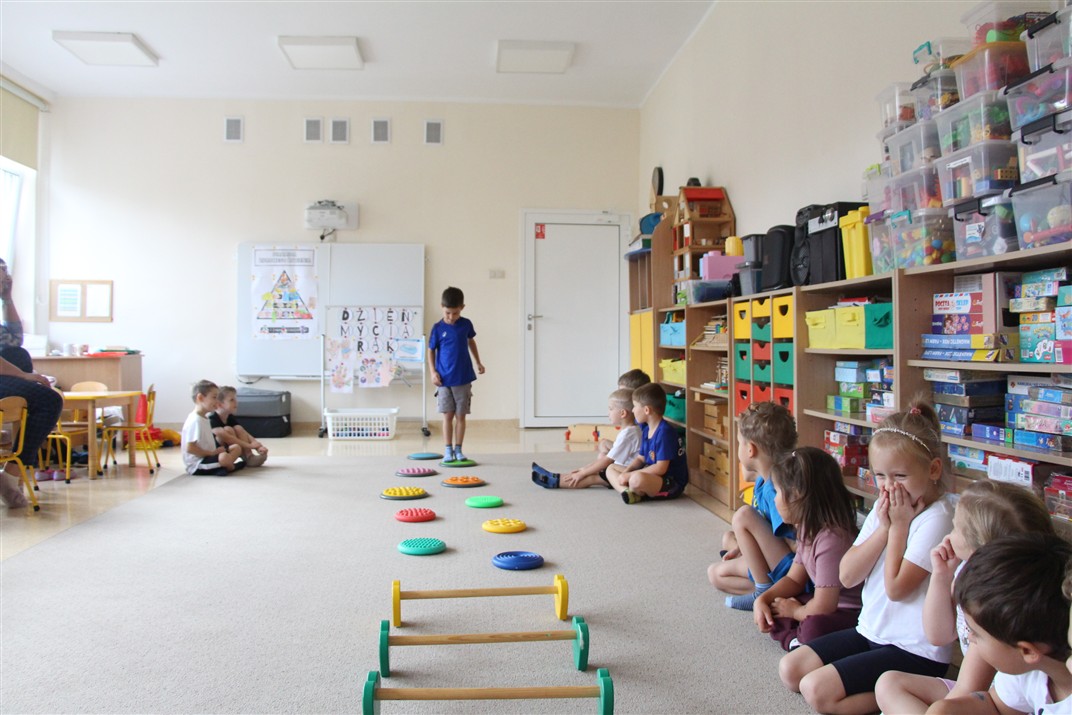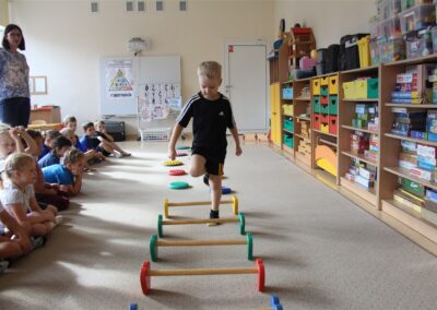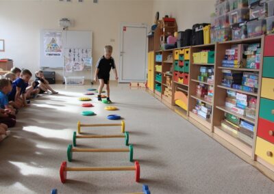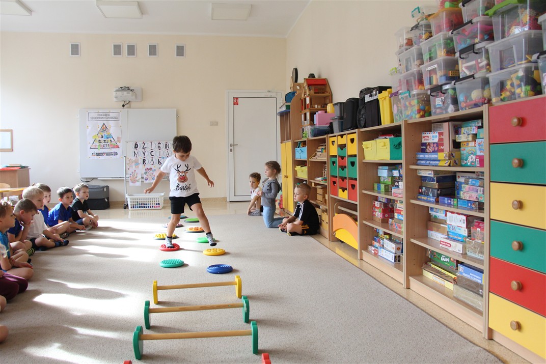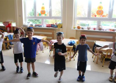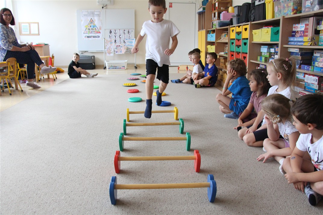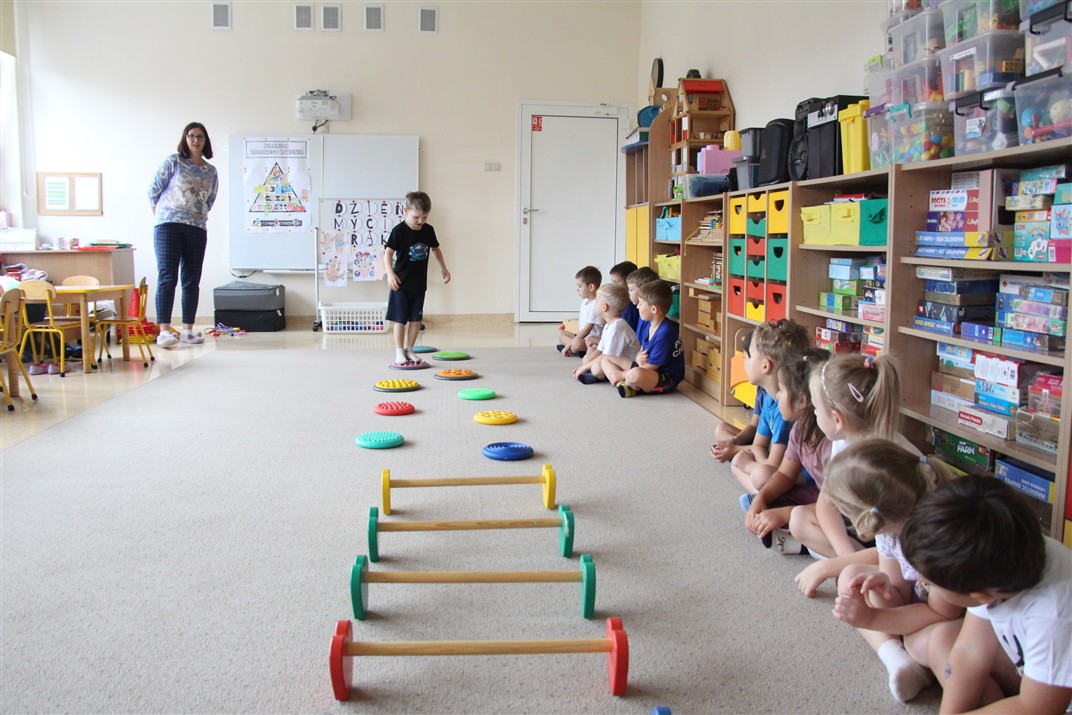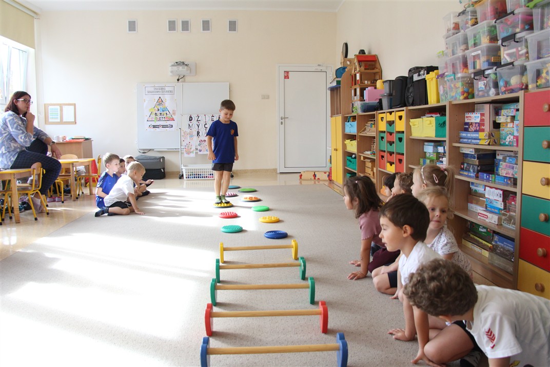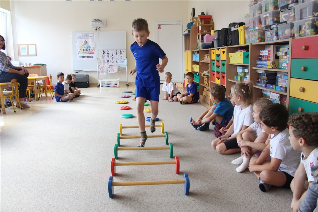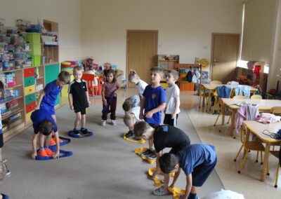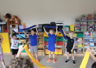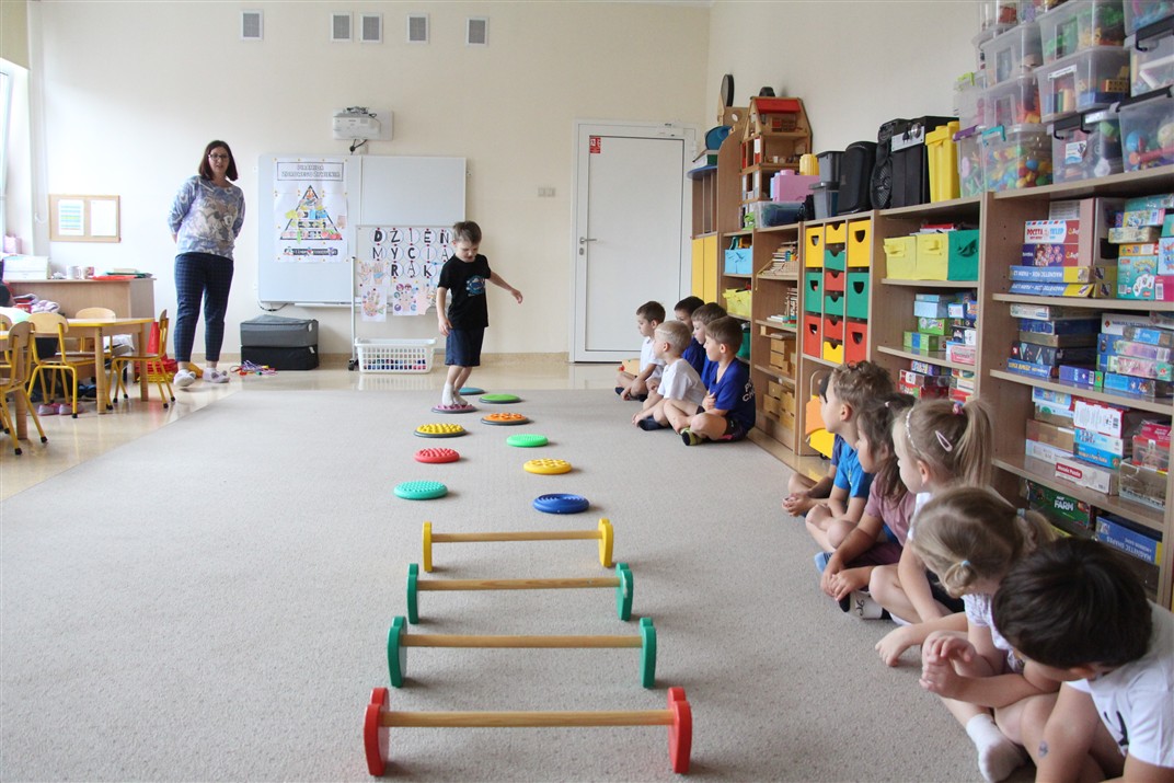 W piątek 17 października odbyło się sportowo-muzyczne kółko zainteresowań w grupie Motyli. Podczas tych zajęć rozwijaliśmy sprawność fizyczną podczas wykonywania ćwiczeń gimnastycznych z wykorzystaniem rekwizytów oraz pokonując gimnastyczny i sensoryczny tor przeszkód.