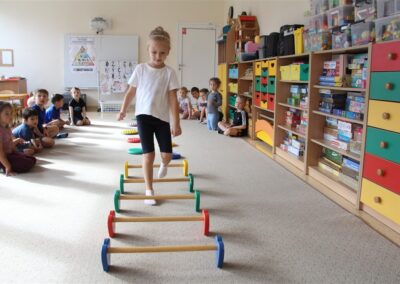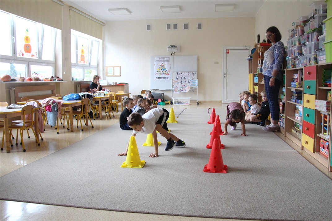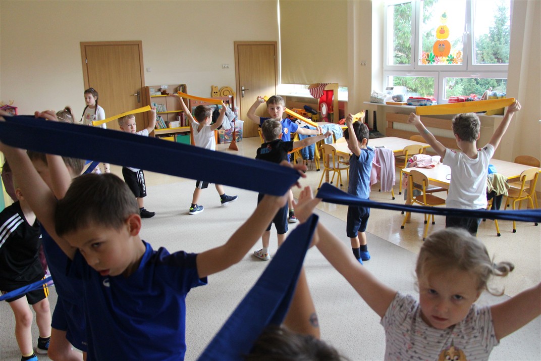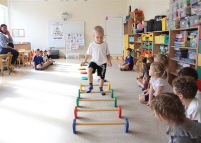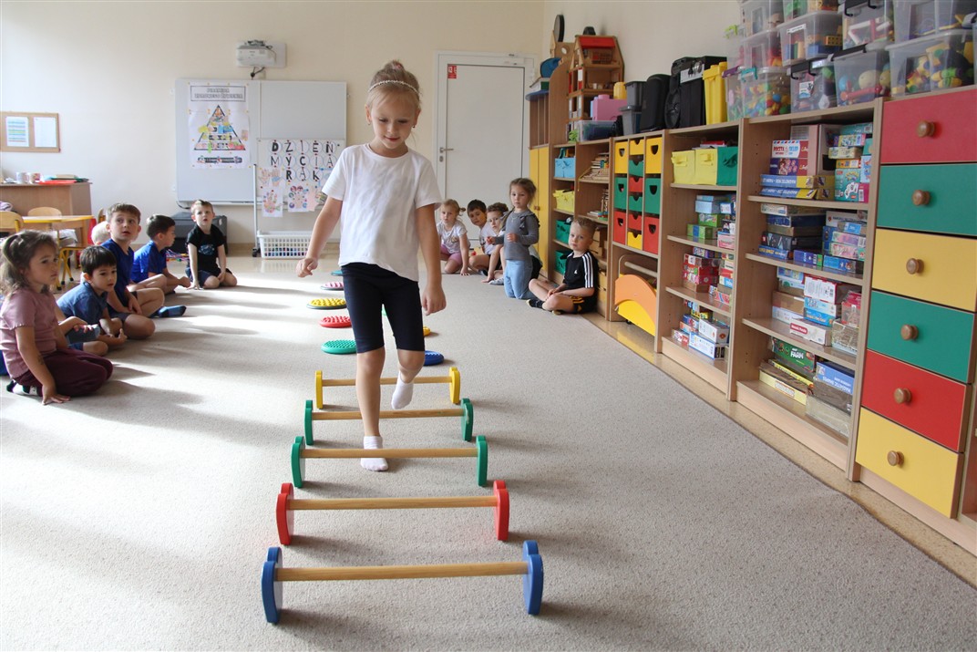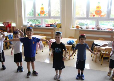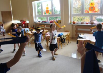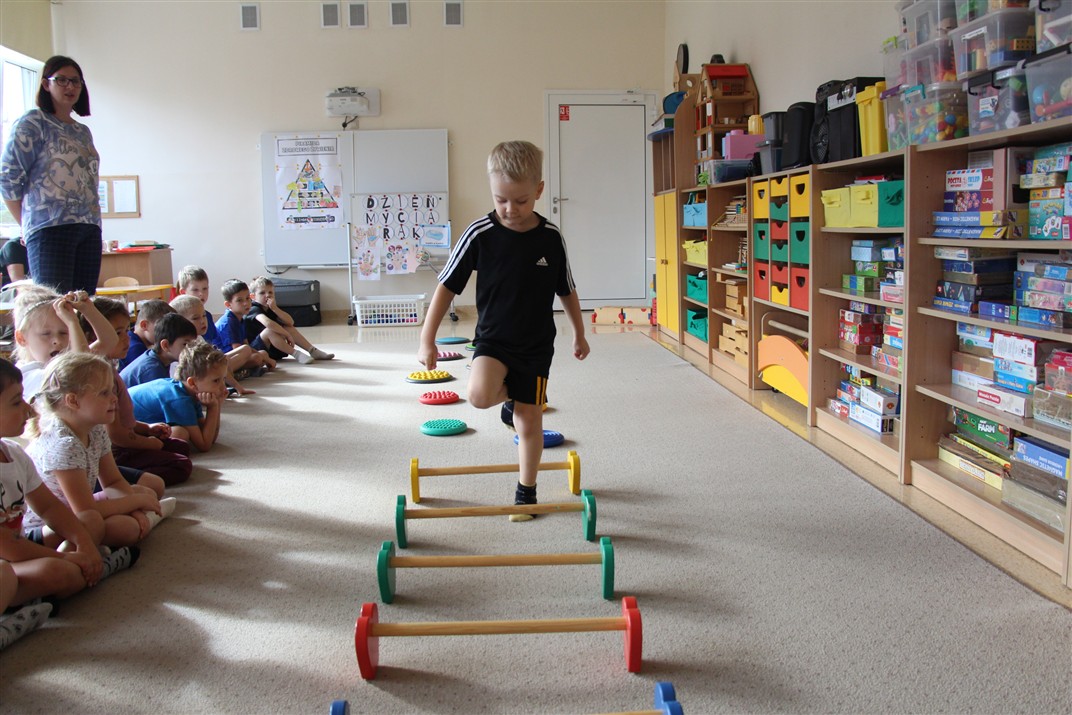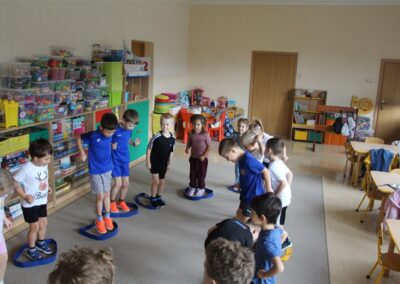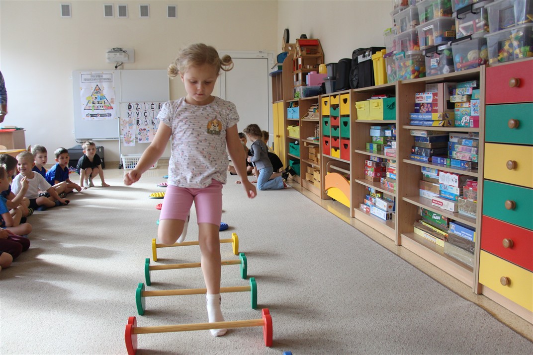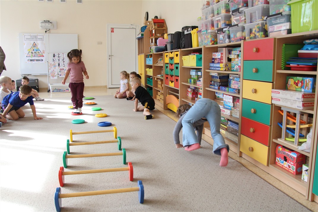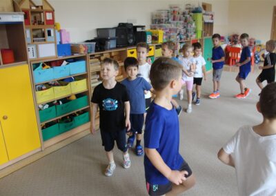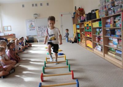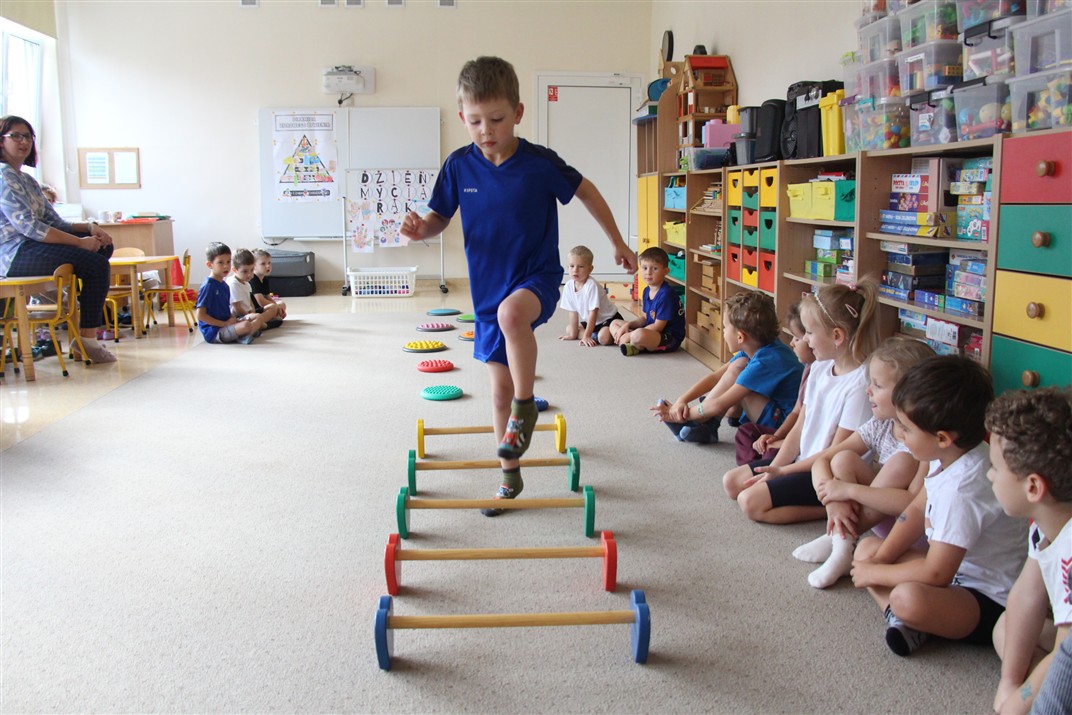 W piątek 17 października odbyło się sportowo-muzyczne kółko zainteresowań w grupie Motyli. Podczas tych zajęć rozwijaliśmy sprawność fizyczną podczas wykonywania ćwiczeń gimnastycznych z wykorzystaniem rekwizytów oraz pokonując gimnastyczny i sensoryczny tor przeszkód.