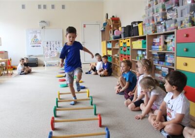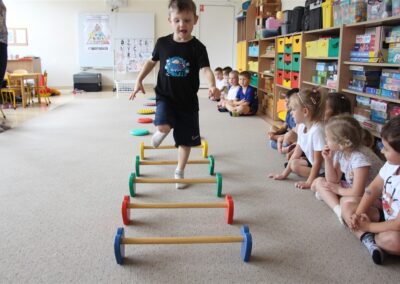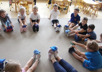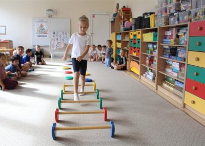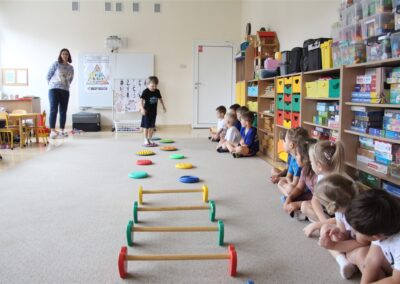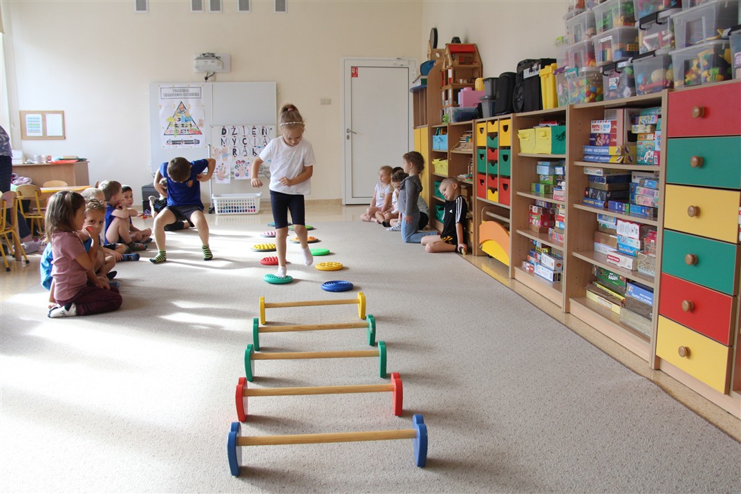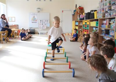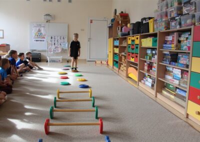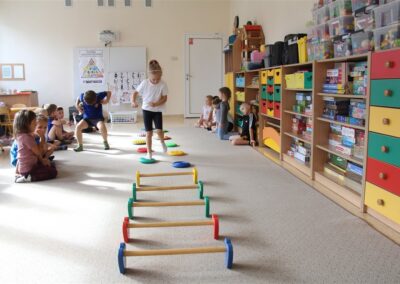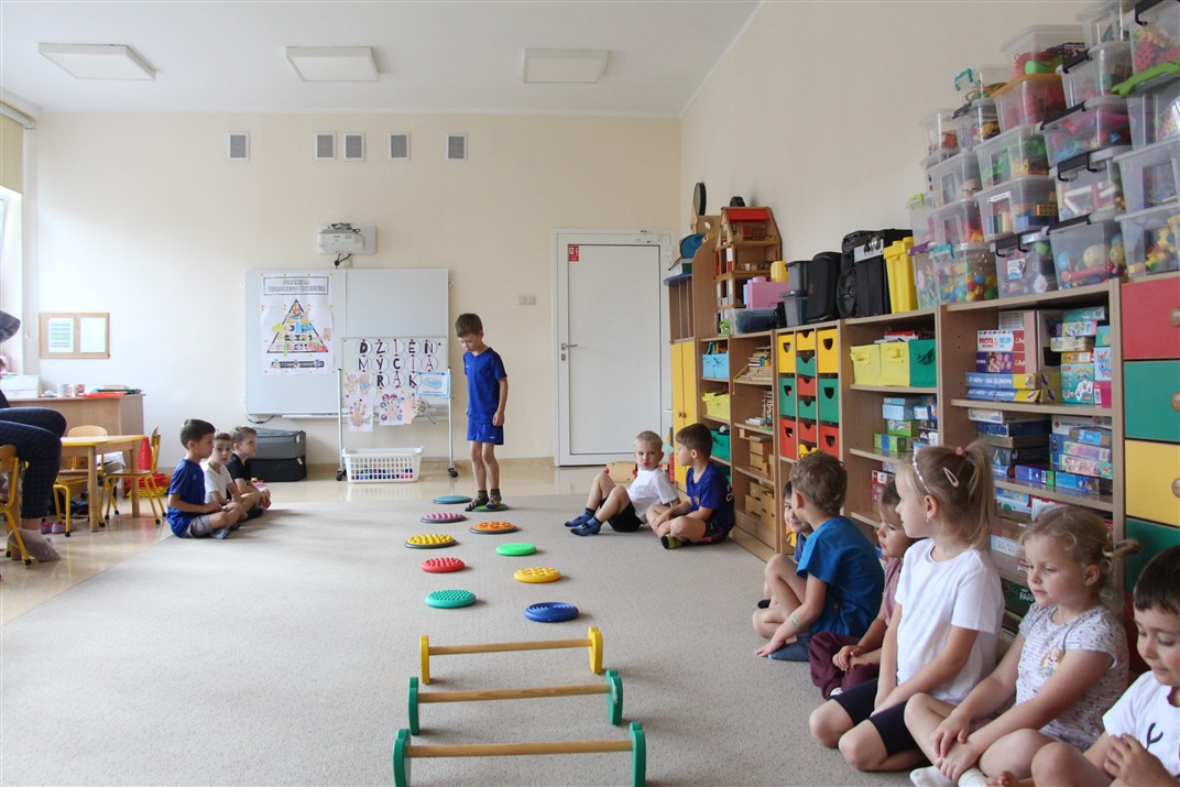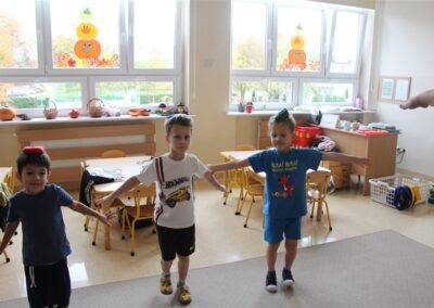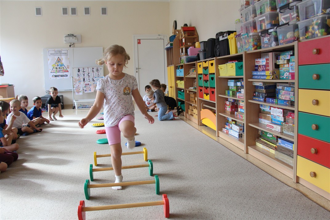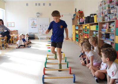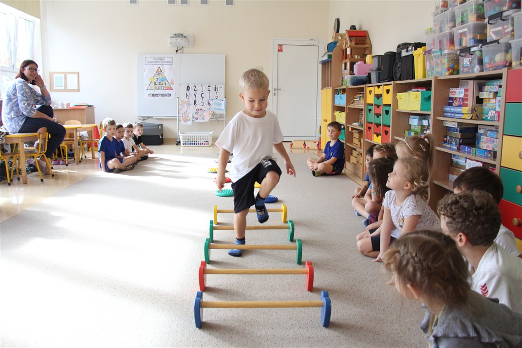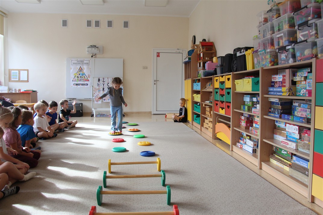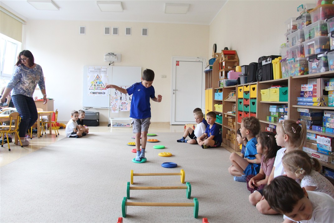 W piątek 17 października odbyło się sportowo-muzyczne kółko zainteresowań w grupie Motyli. Podczas tych zajęć rozwijaliśmy sprawność fizyczną podczas wykonywania ćwiczeń gimnastycznych z wykorzystaniem rekwizytów oraz pokonując gimnastyczny i sensoryczny tor przeszkód.