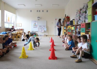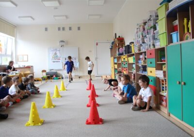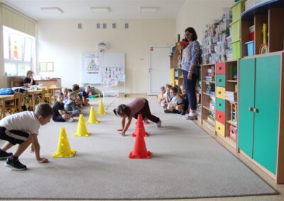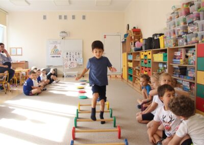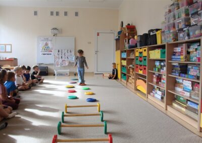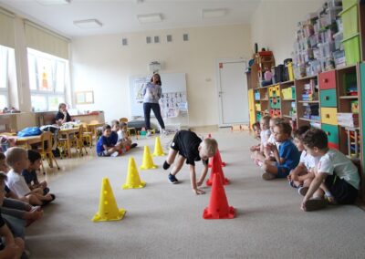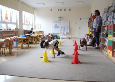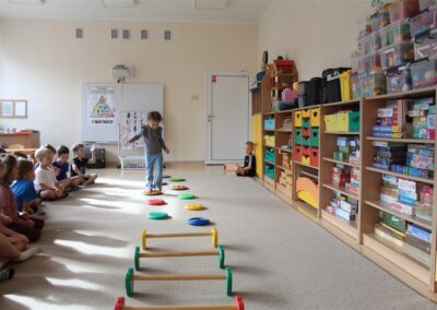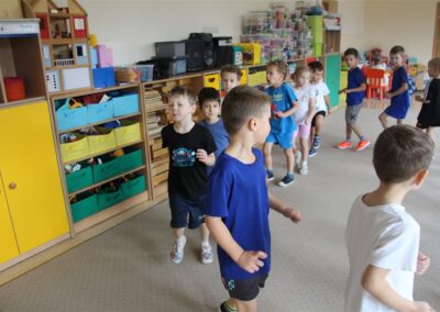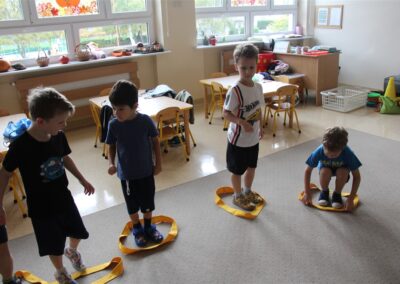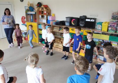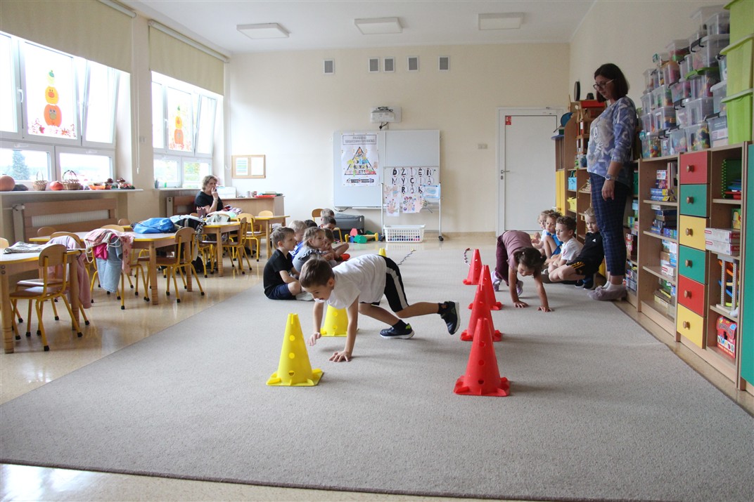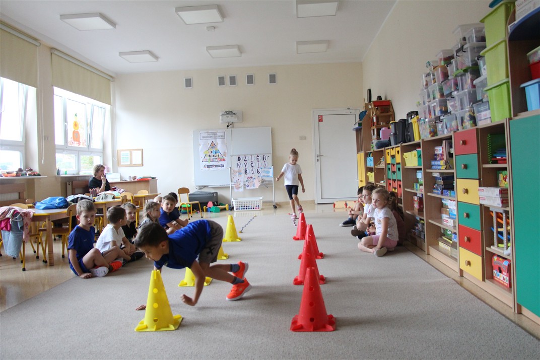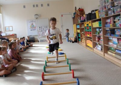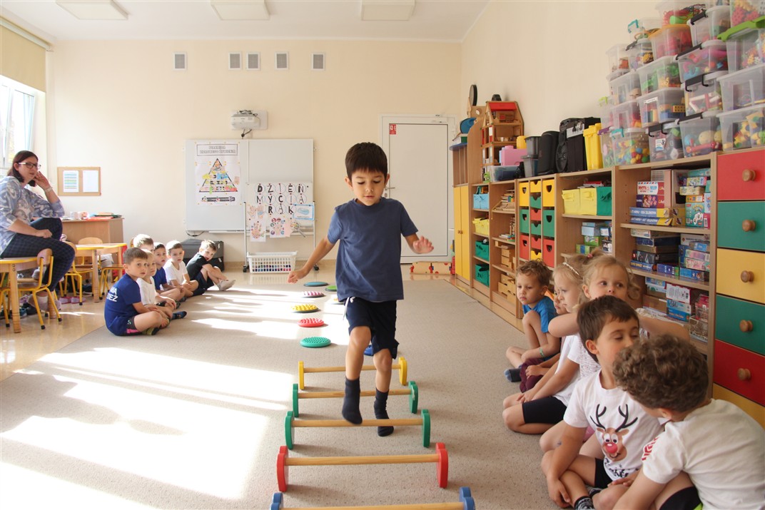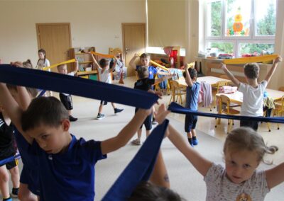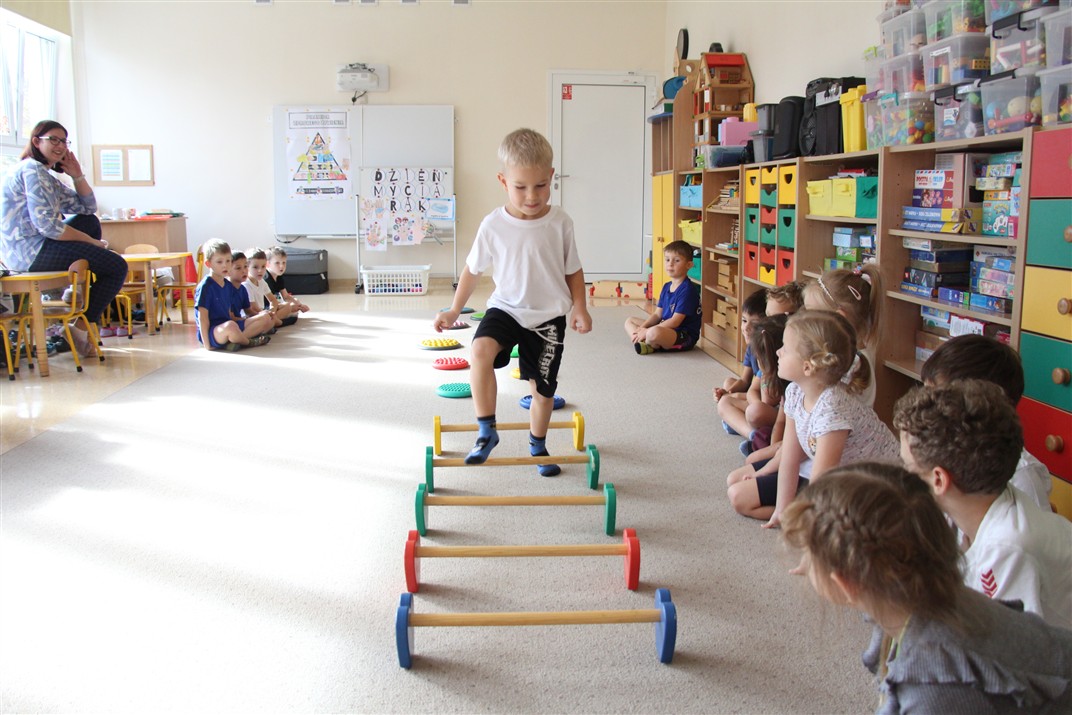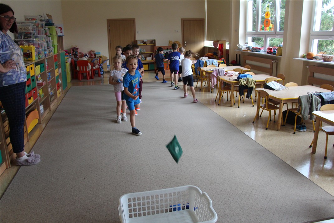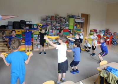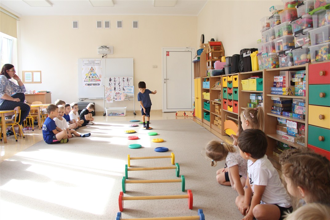 W piątek 17 października odbyło się sportowo-muzyczne kółko zainteresowań w grupie Motyli. Podczas tych zajęć rozwijaliśmy sprawność fizyczną podczas wykonywania ćwiczeń gimnastycznych z wykorzystaniem rekwizytów oraz pokonując gimnastyczny i sensoryczny tor przeszkód.