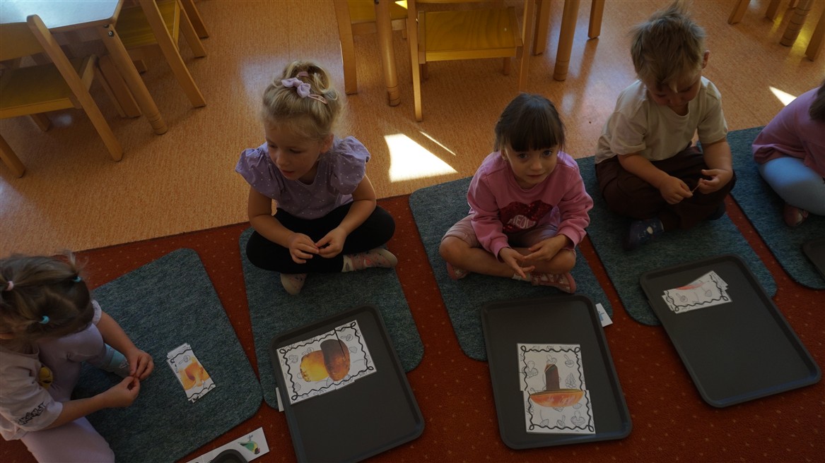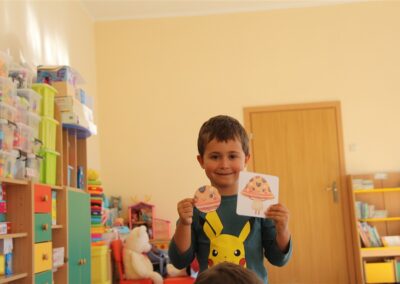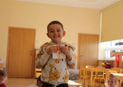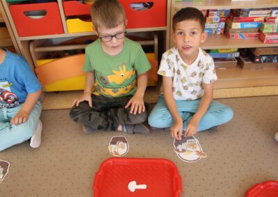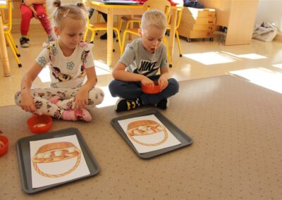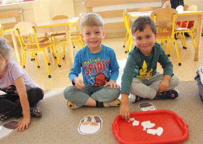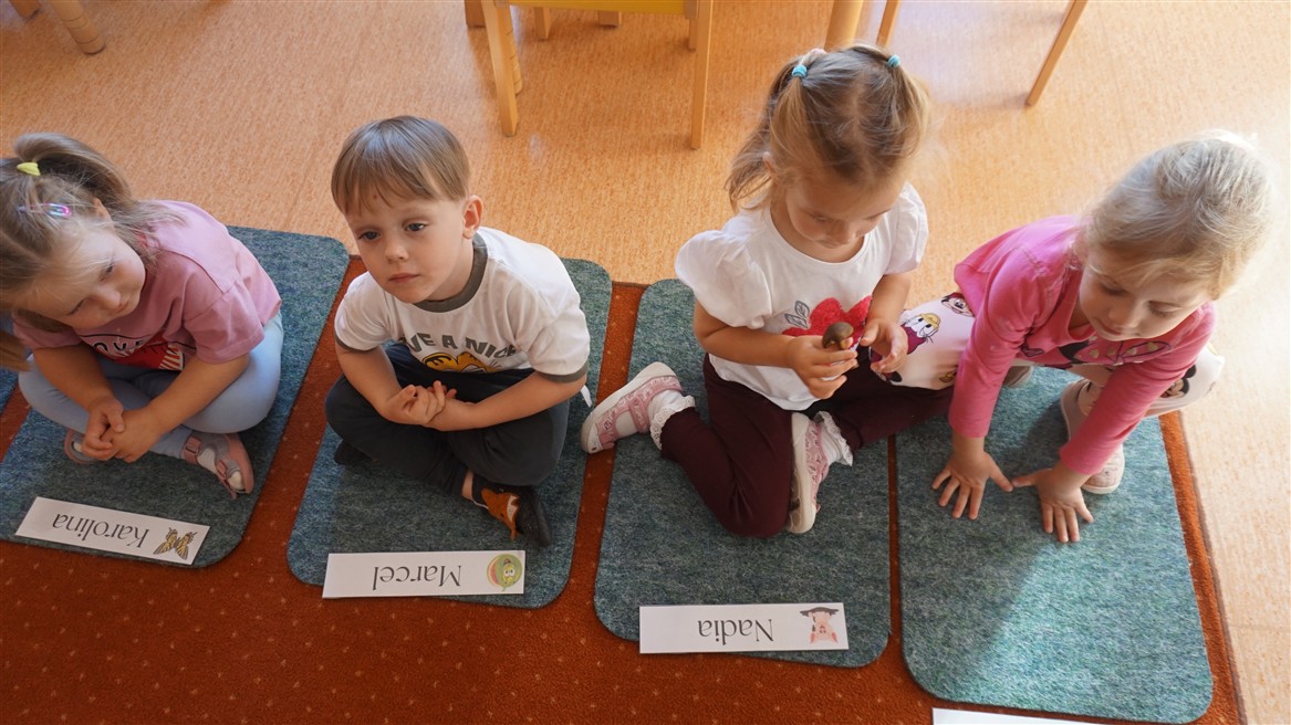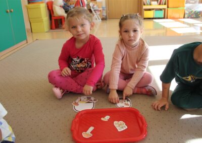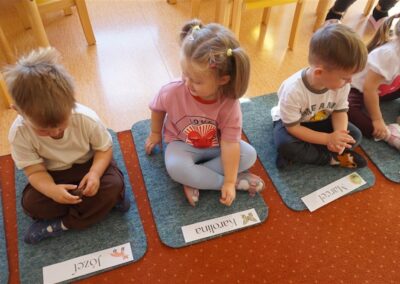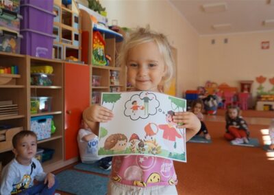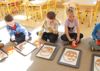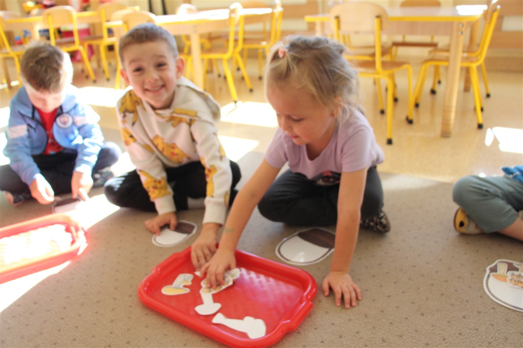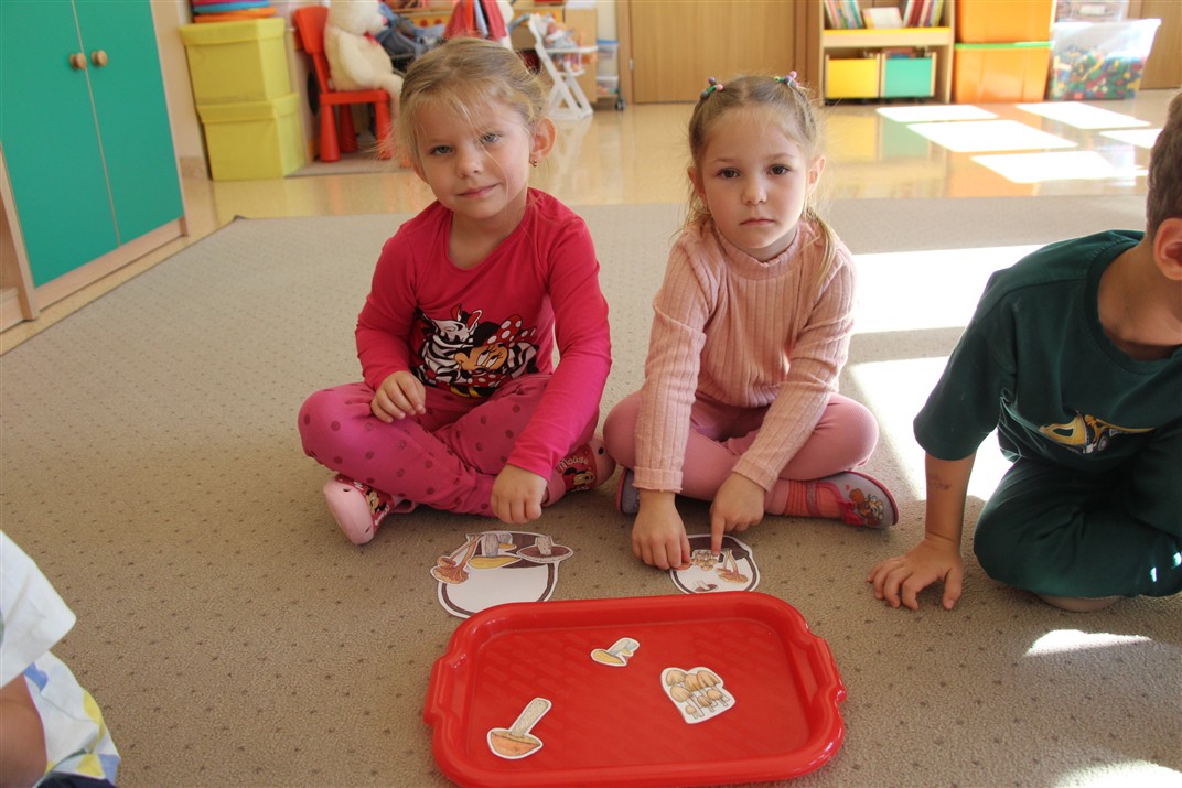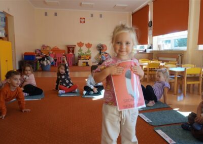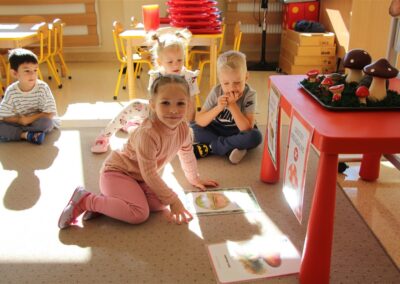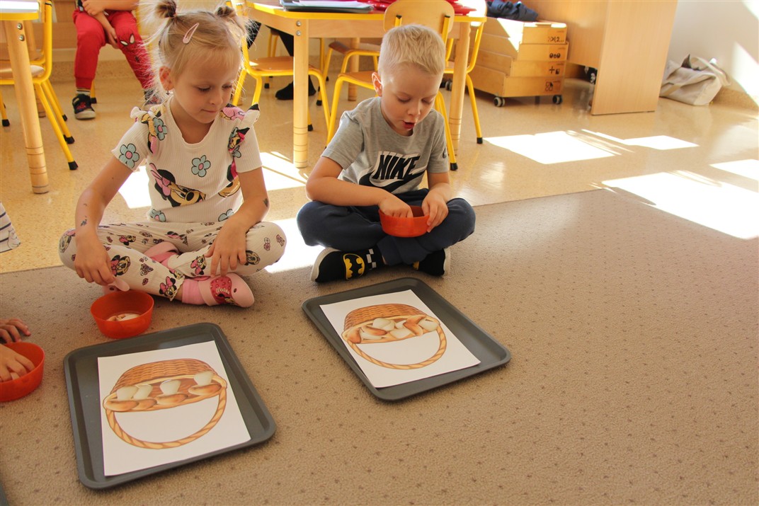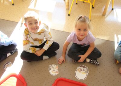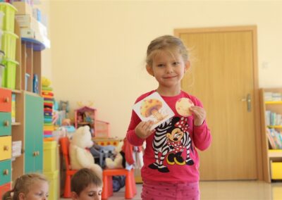 Przedszkolaki wzięły udział w ciekawych zajęciach, podczas których, rozpoznawały różne gatunki grzybów – jadalnych i niejadalnych, dowiedziały się, dlaczego nie wszystkie grzyby można zbierać, układały tematyczne zagadki i wierszyki, bawiły się w rytmie piosenek o jesieni i lesie.