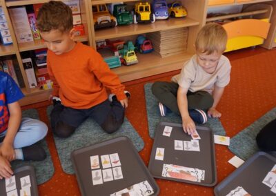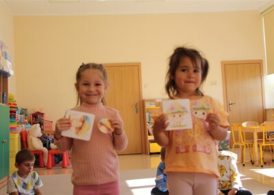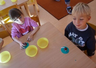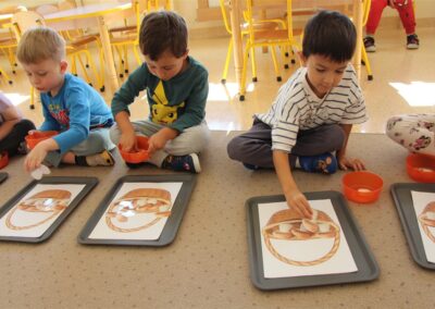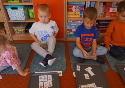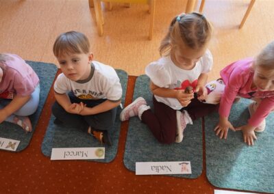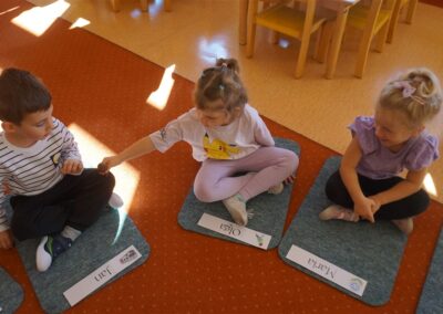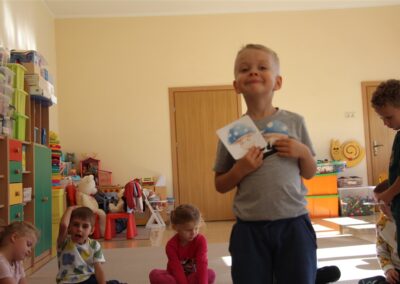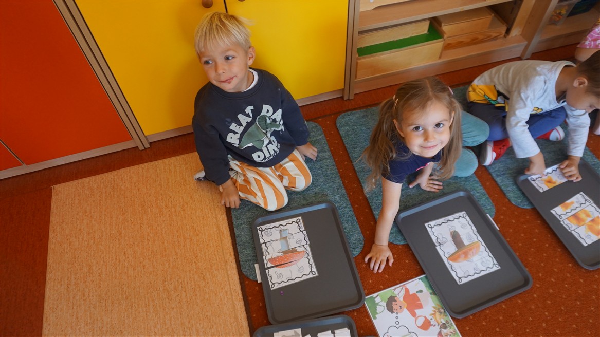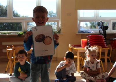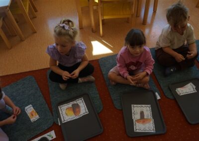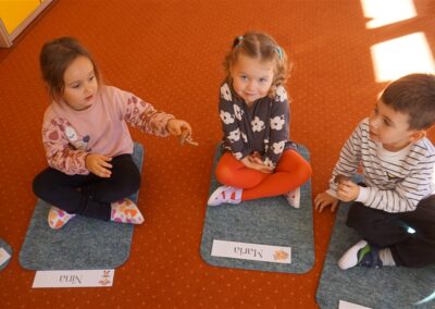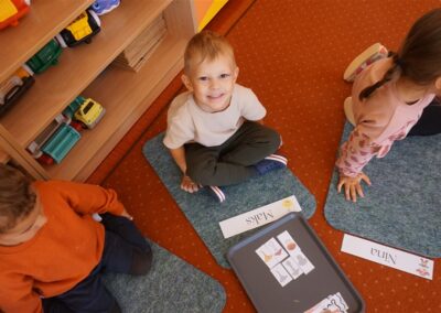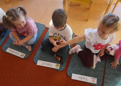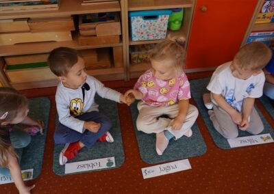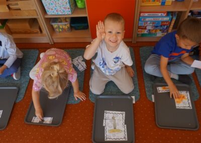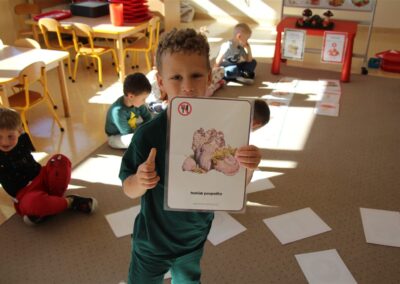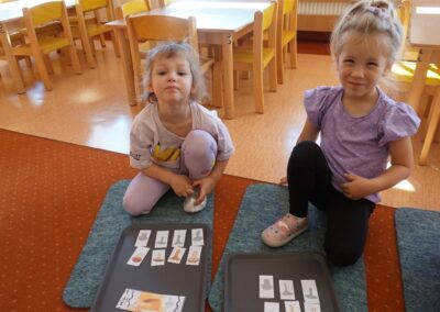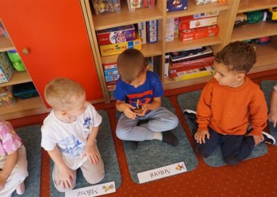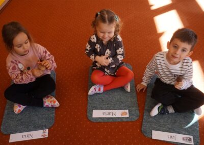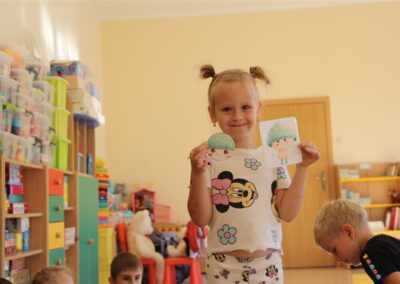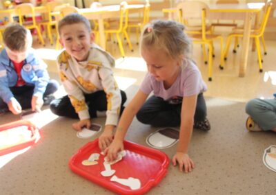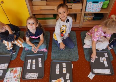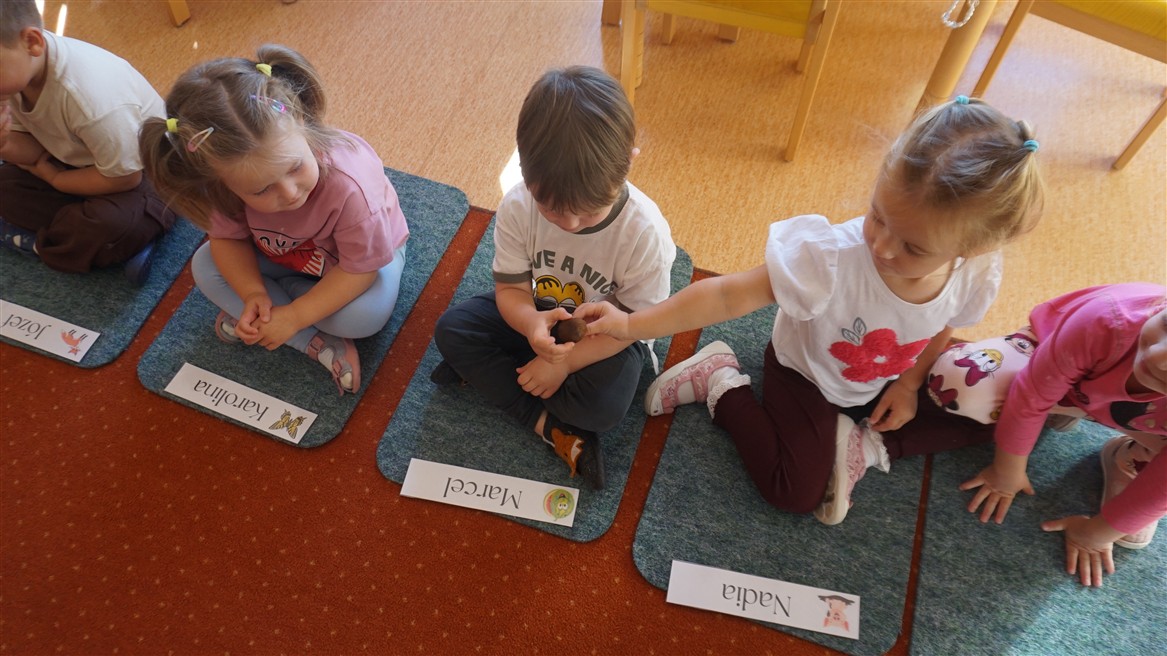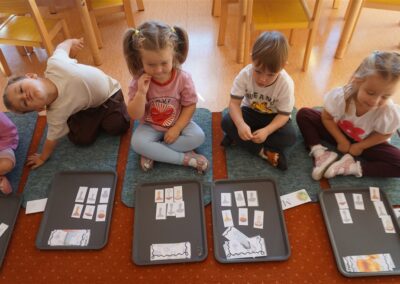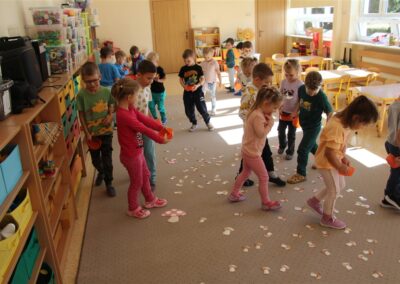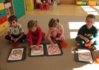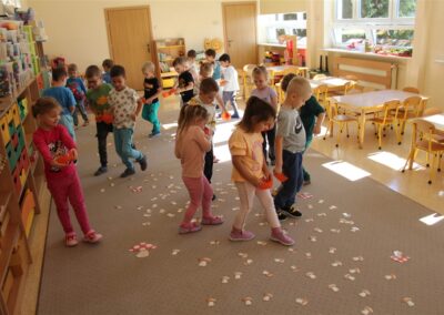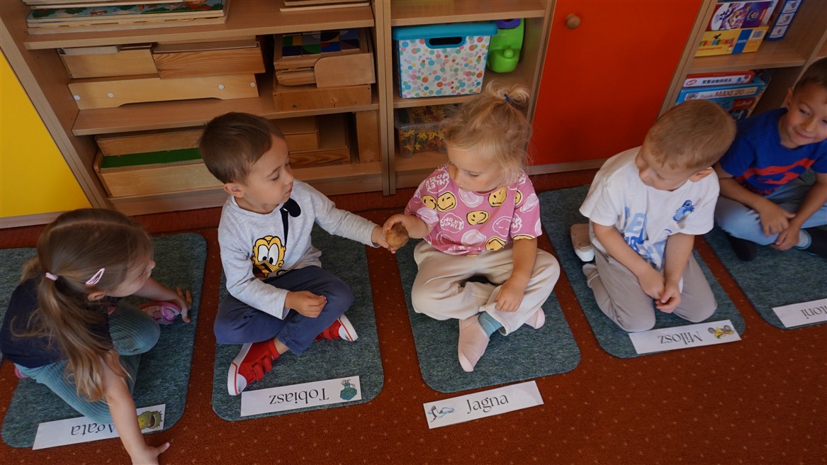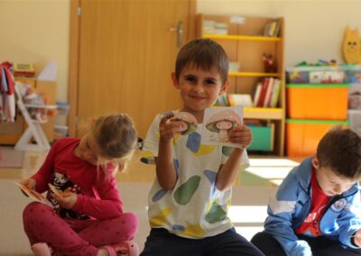 Przedszkolaki wzięły udział w ciekawych zajęciach, podczas których, rozpoznawały różne gatunki grzybów – jadalnych i niejadalnych, dowiedziały się, dlaczego nie wszystkie grzyby można zbierać, układały tematyczne zagadki i wierszyki, bawiły się w rytmie piosenek o jesieni i lesie.