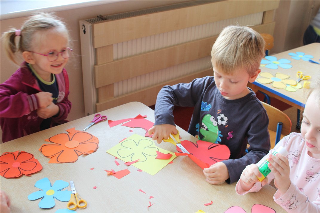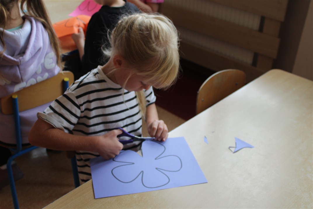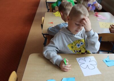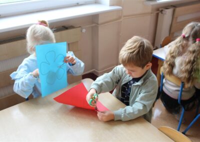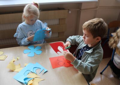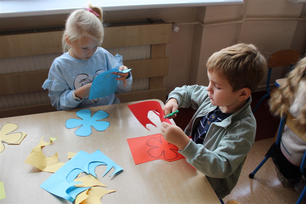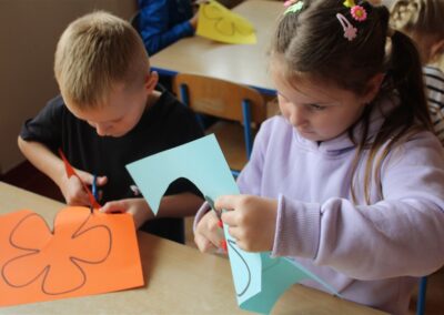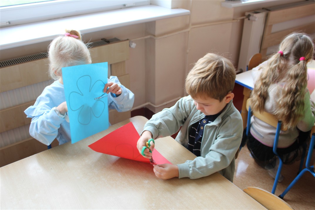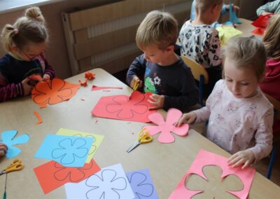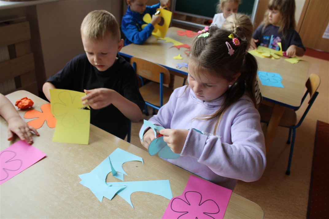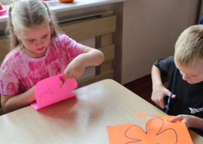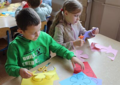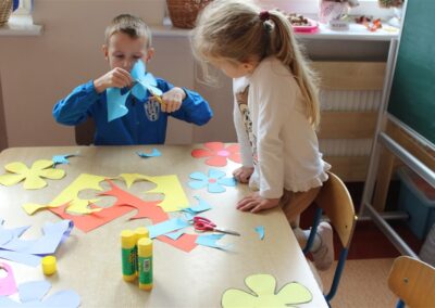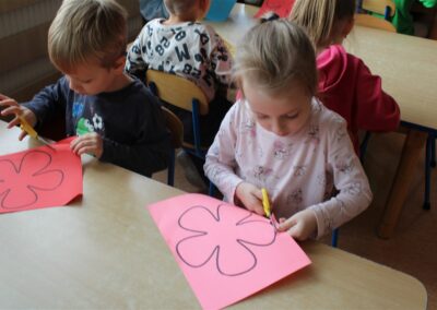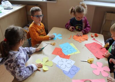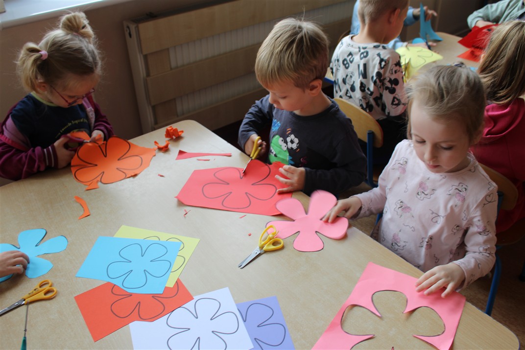 - usprawniały dłonie podczas wycinania kwiatów, lepienia z plasteliny, ćwiczeń grafomotorycznych…