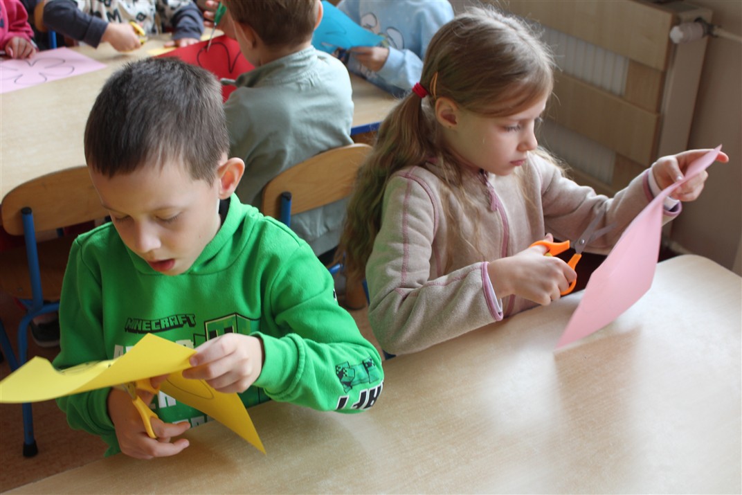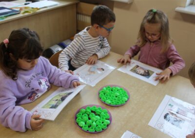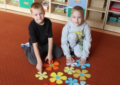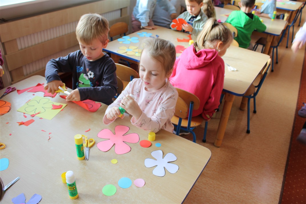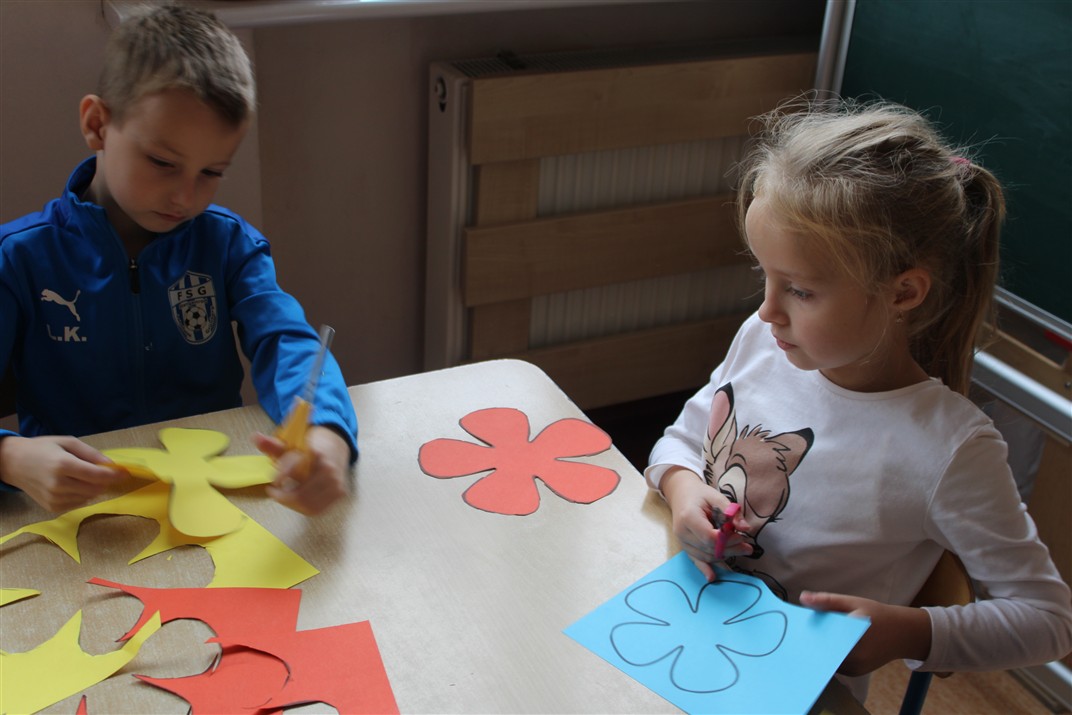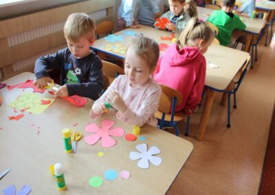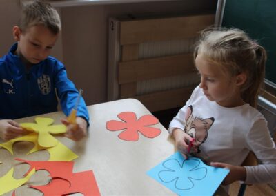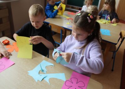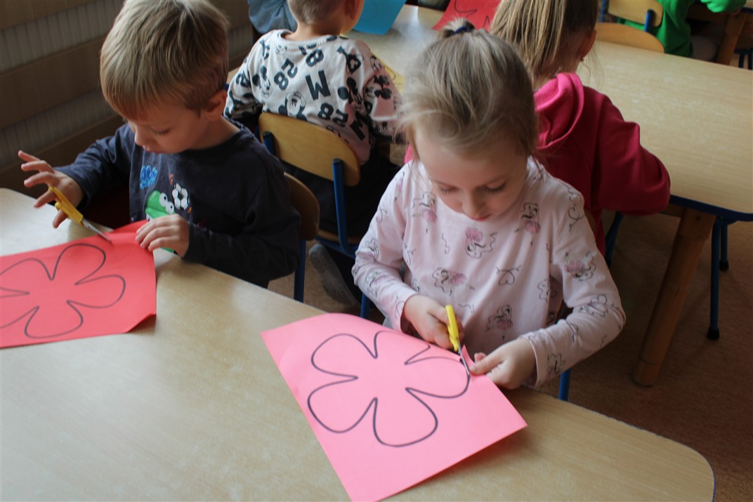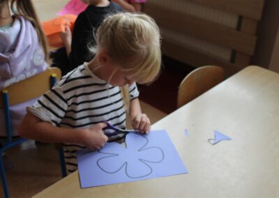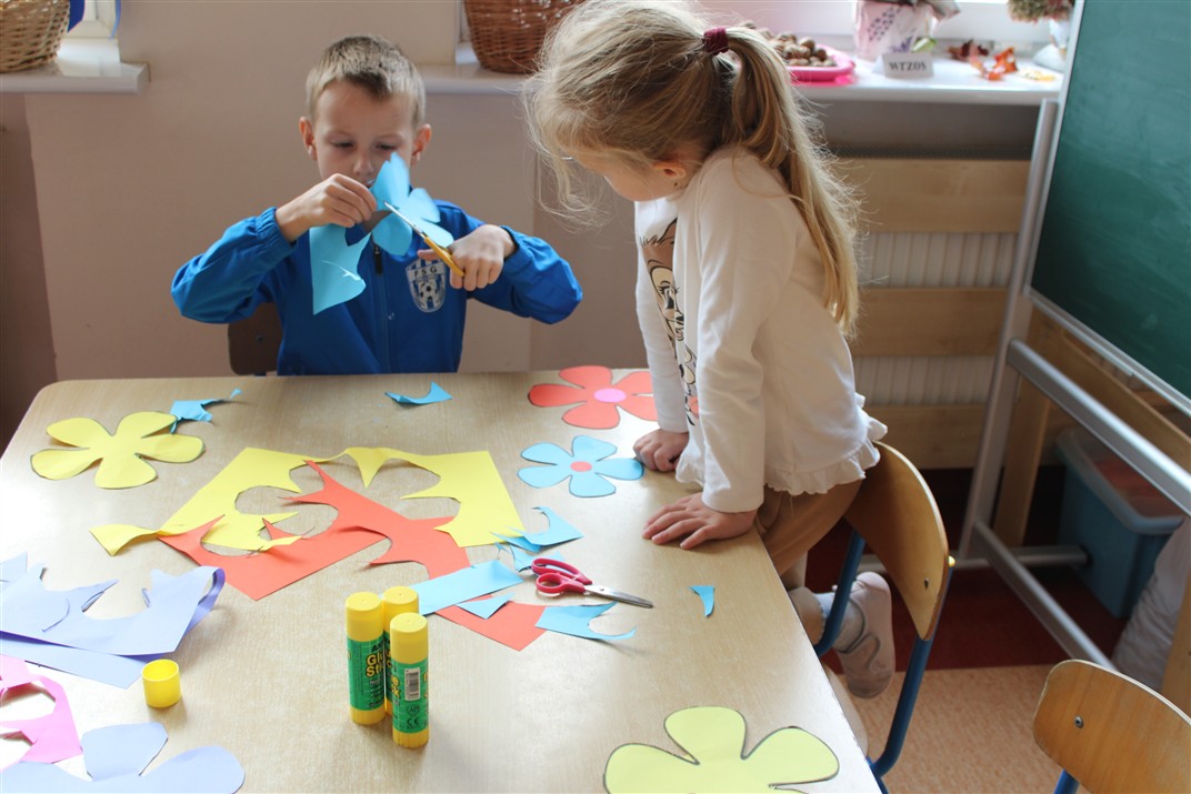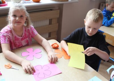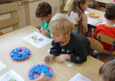 - usprawniały dłonie podczas wycinania kwiatów, lepienia z plasteliny, ćwiczeń grafomotorycznych…