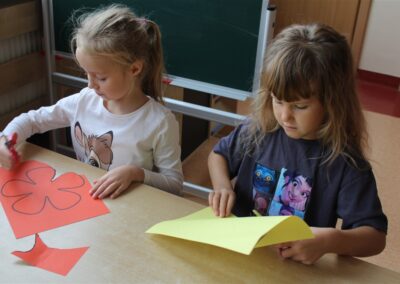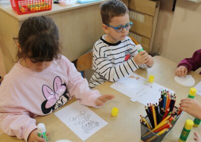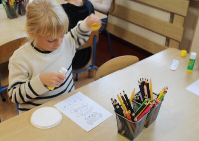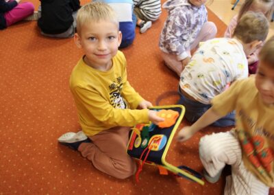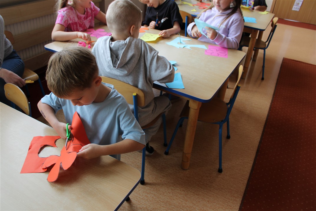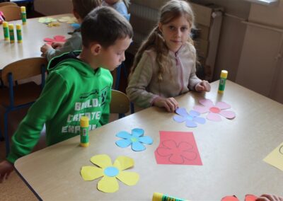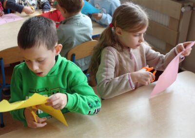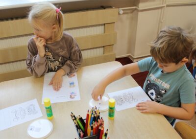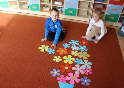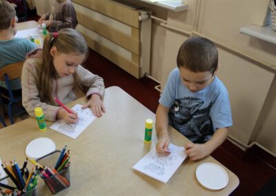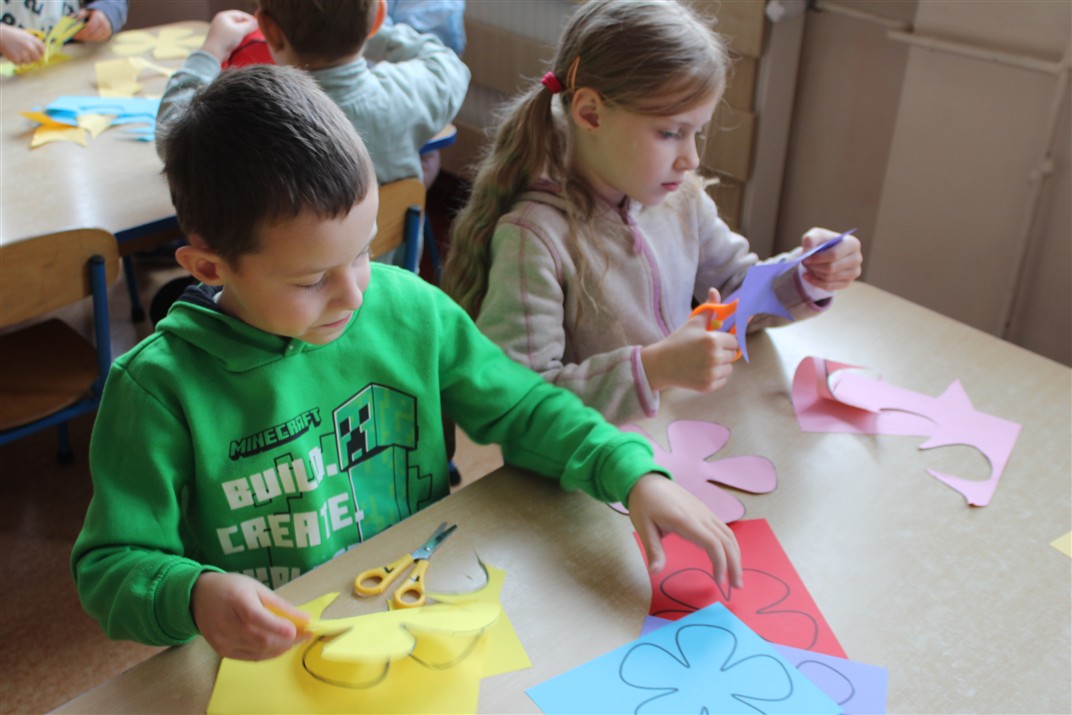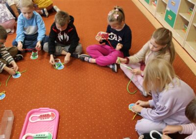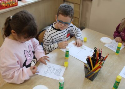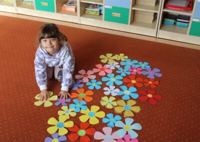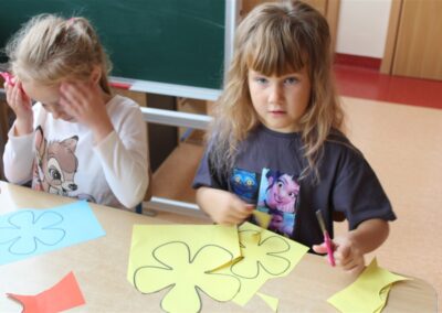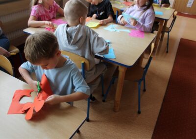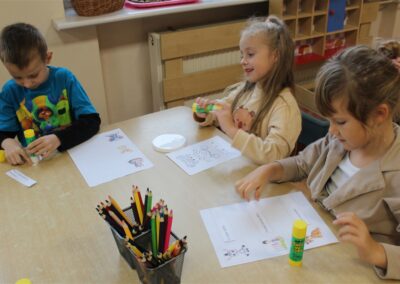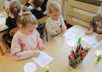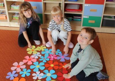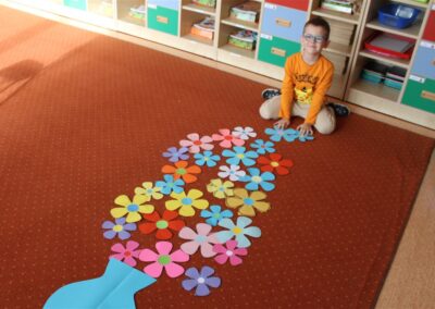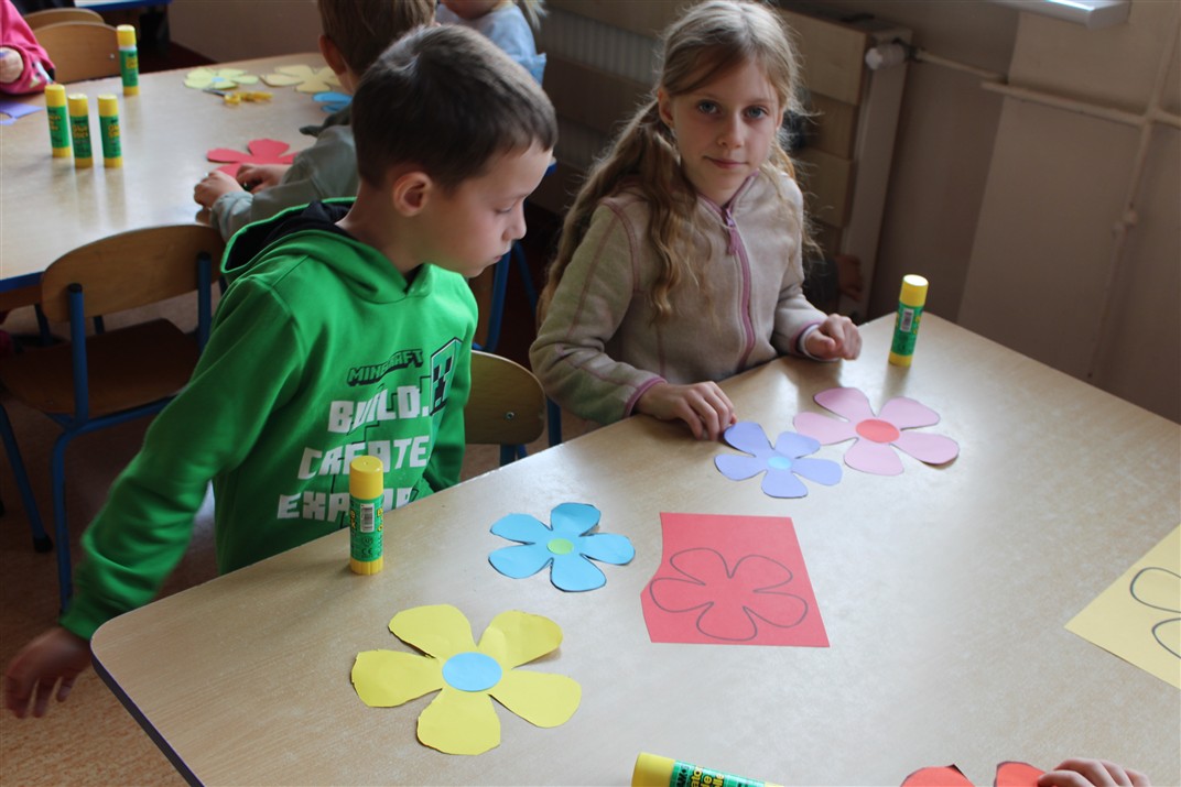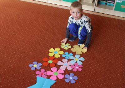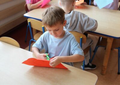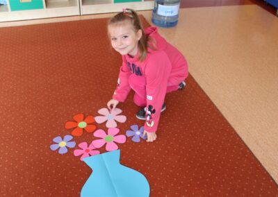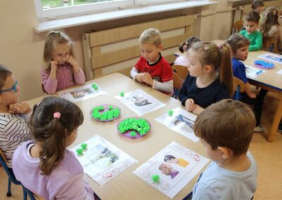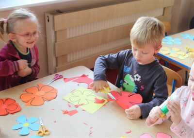 - usprawniały dłonie podczas wycinania kwiatów, lepienia z plasteliny, ćwiczeń grafomotorycznych…