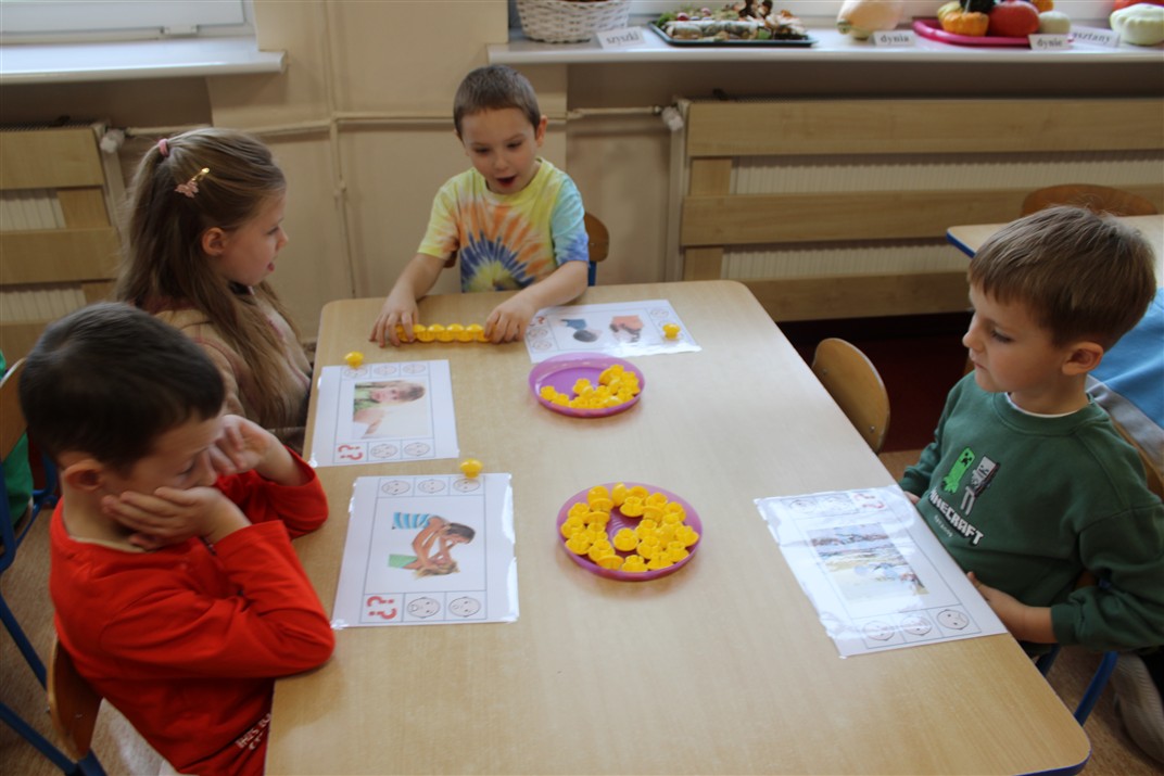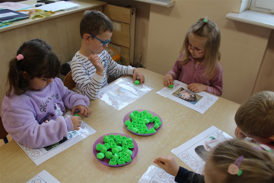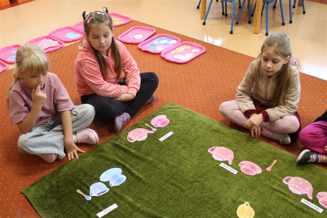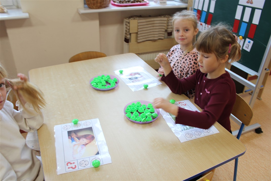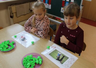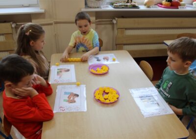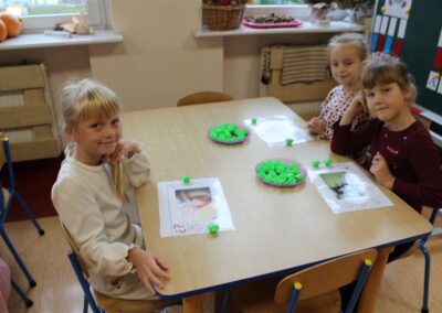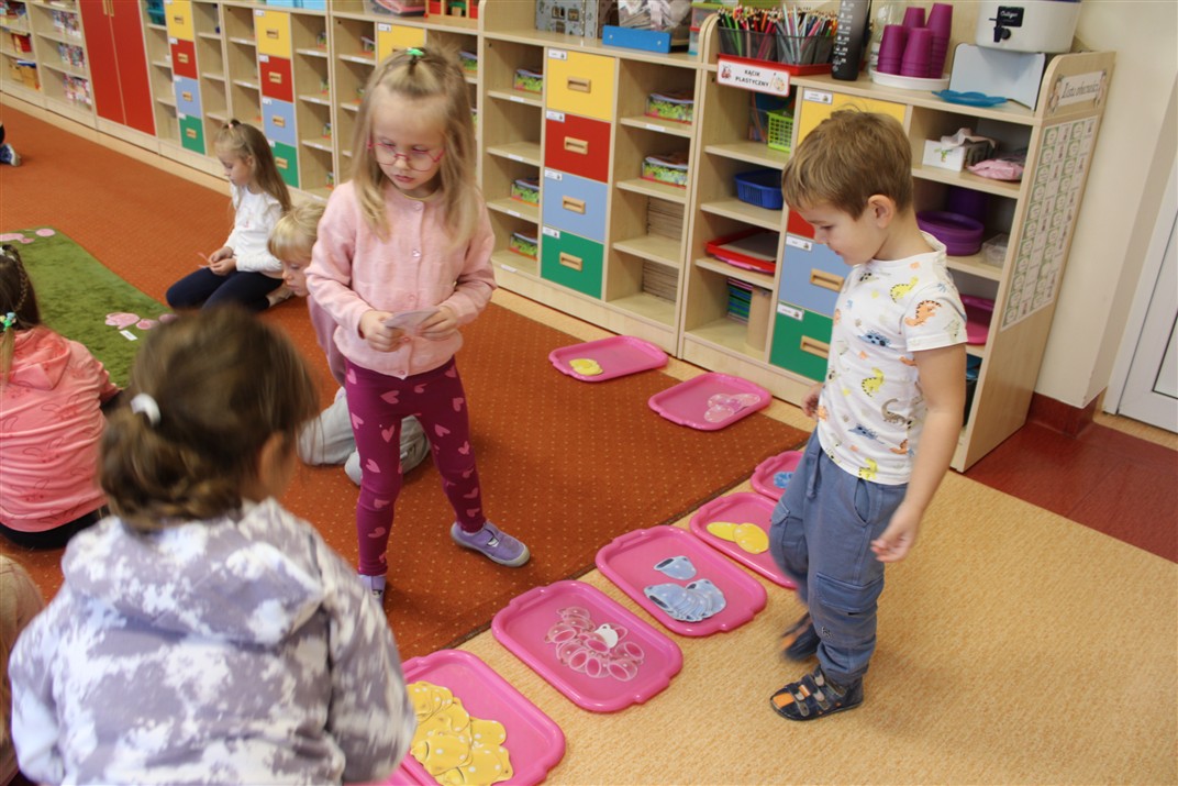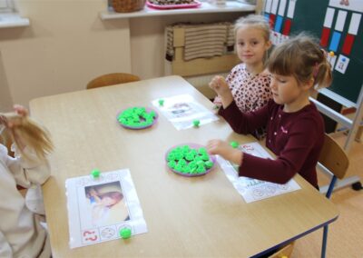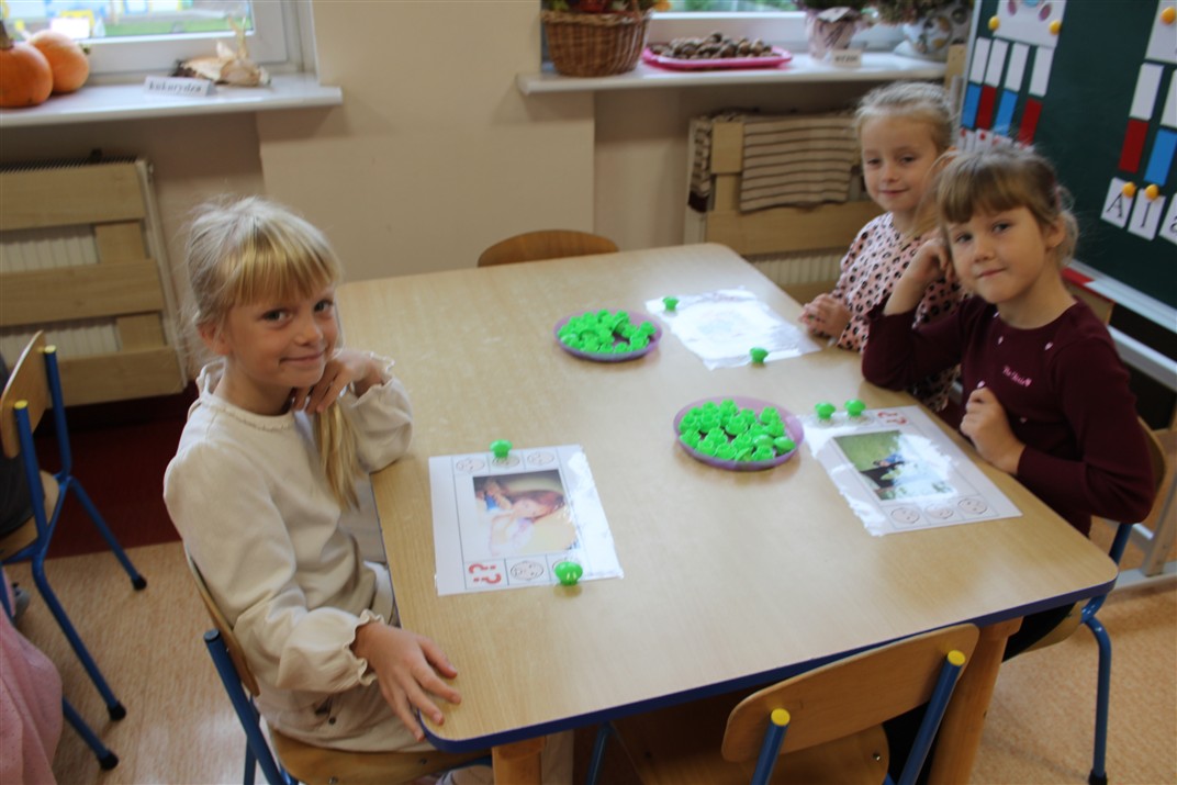 - uczyły się posługiwać określeniami: po prawej stronie, po lewej stronie – dz. starsze, doskonaliły umiejętność liczenia /według indywidualnych możliwości/