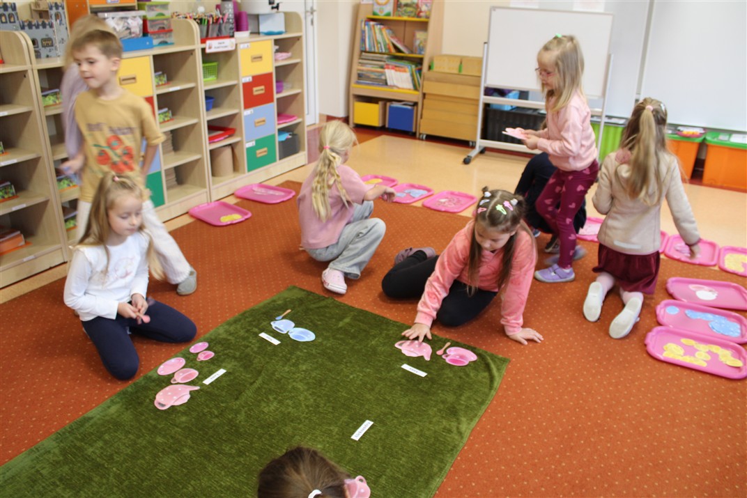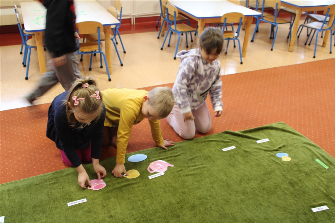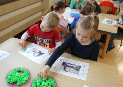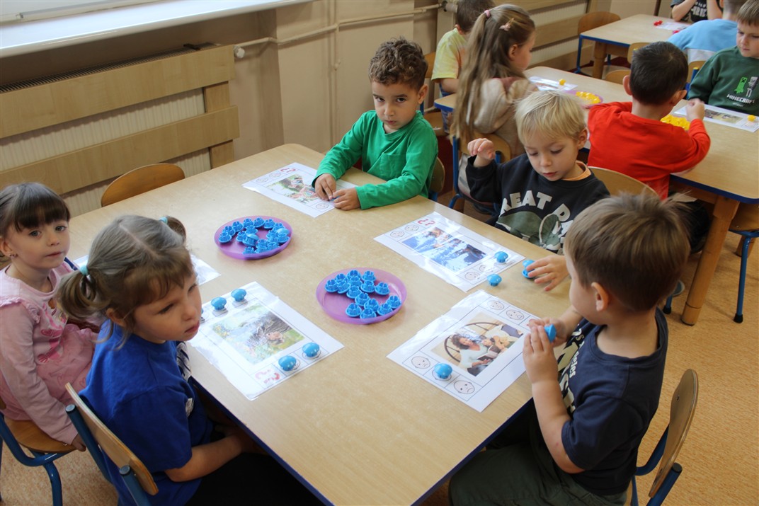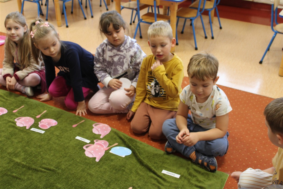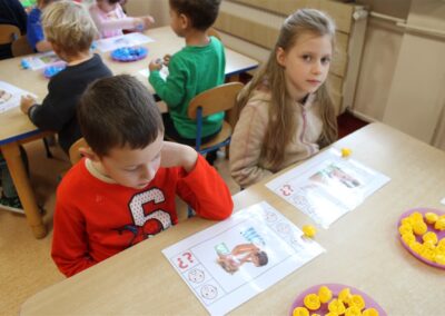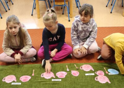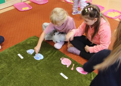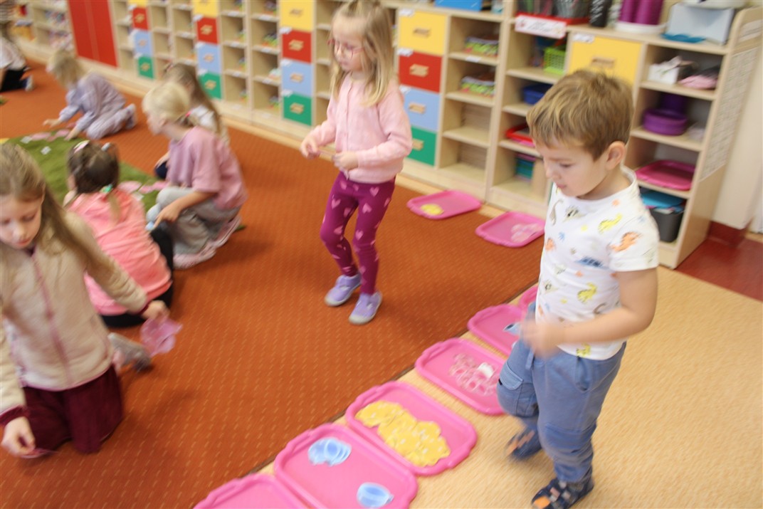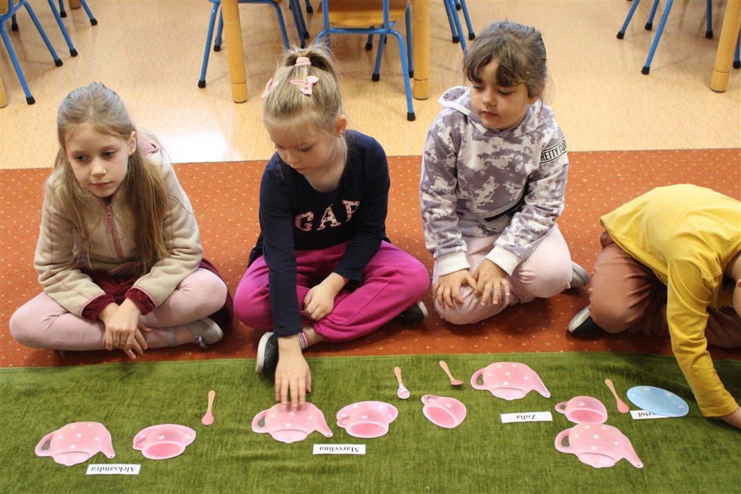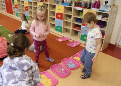 - uczyły się posługiwać określeniami: po prawej stronie, po lewej stronie – dz. starsze, doskonaliły umiejętność liczenia /według indywidualnych możliwości/