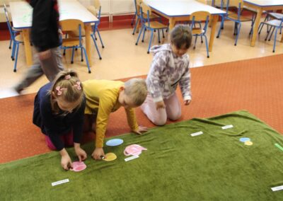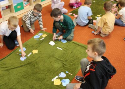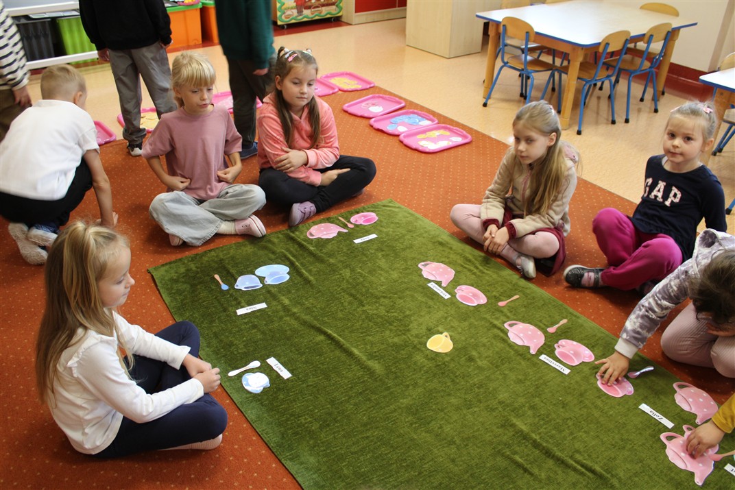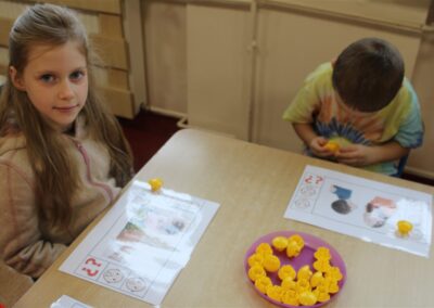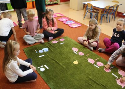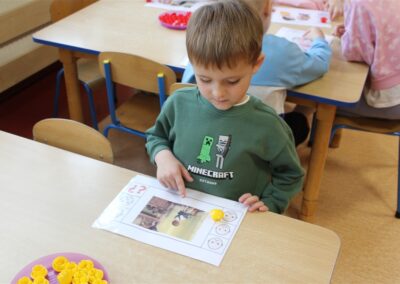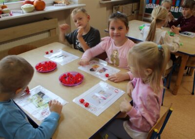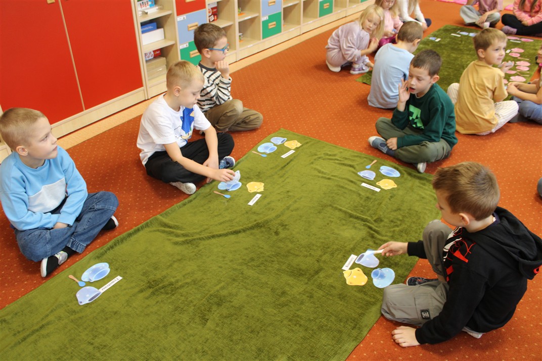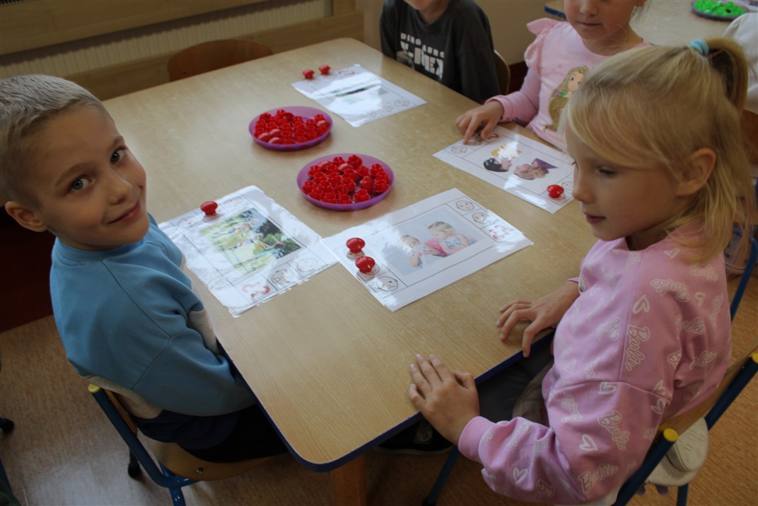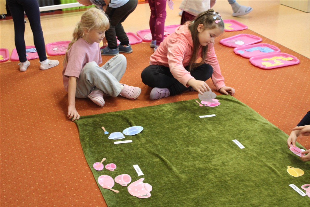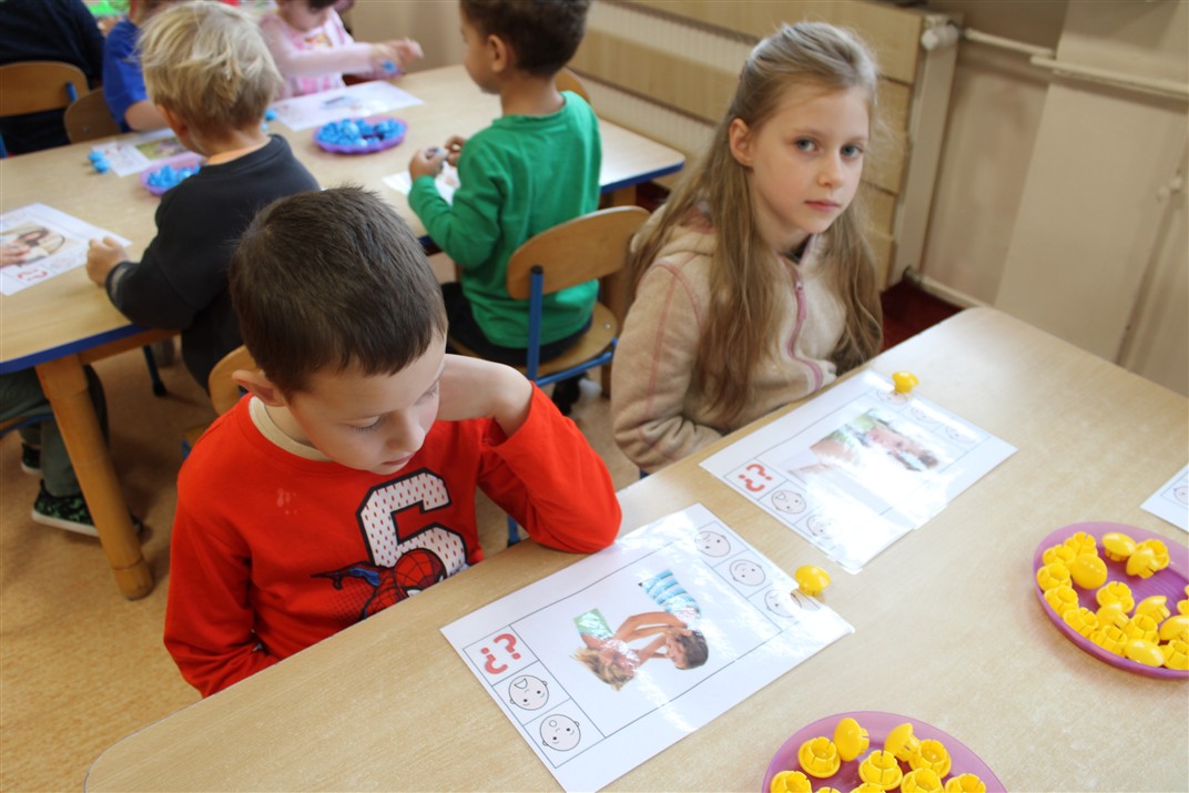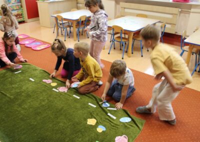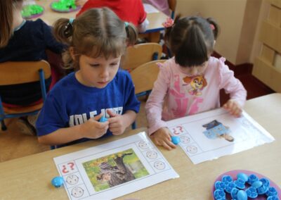 - uczyły się posługiwać określeniami: po prawej stronie, po lewej stronie – dz. starsze, doskonaliły umiejętność liczenia /według indywidualnych możliwości/