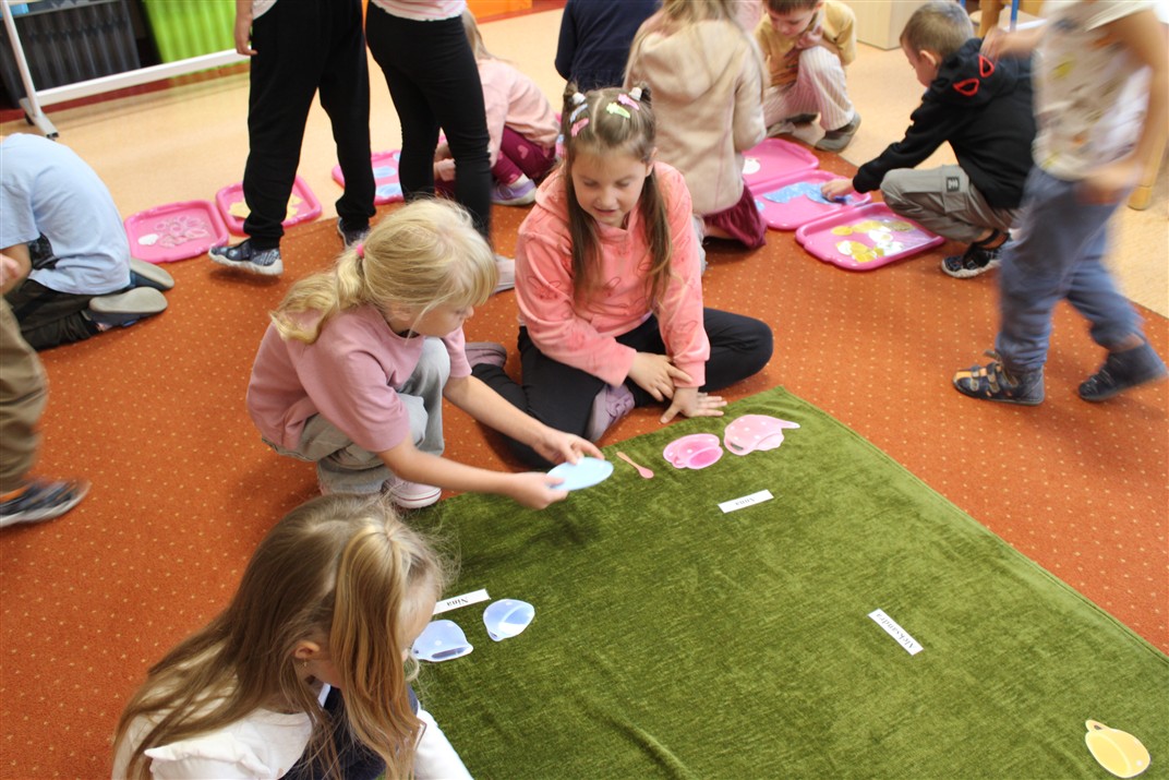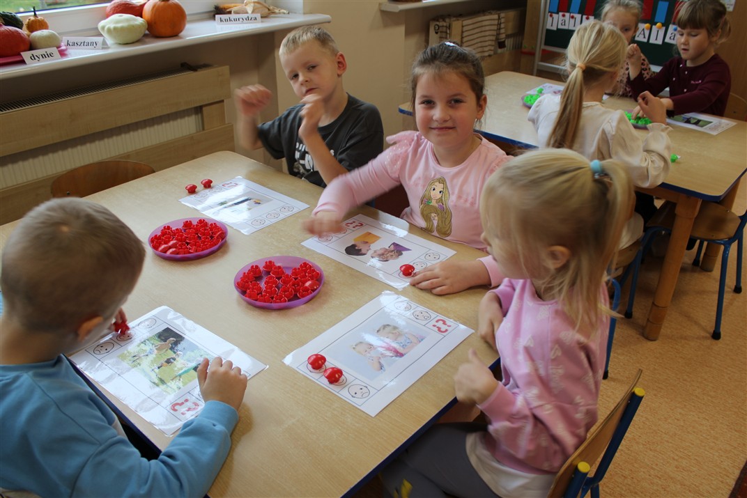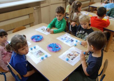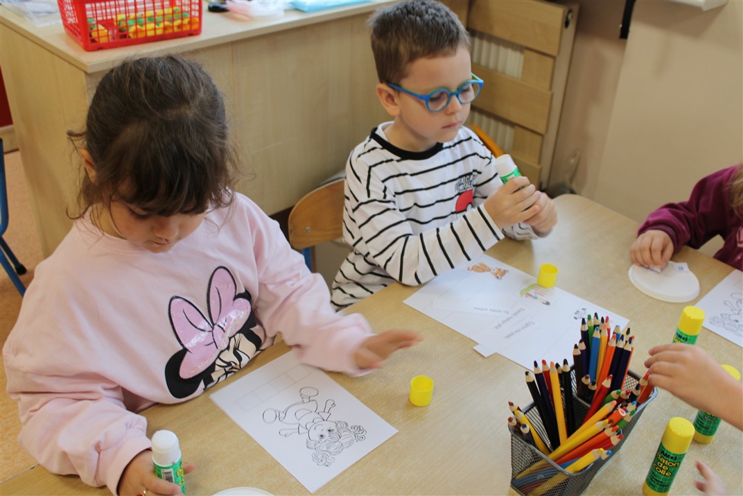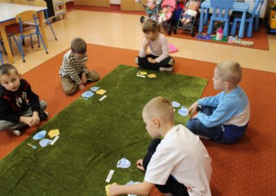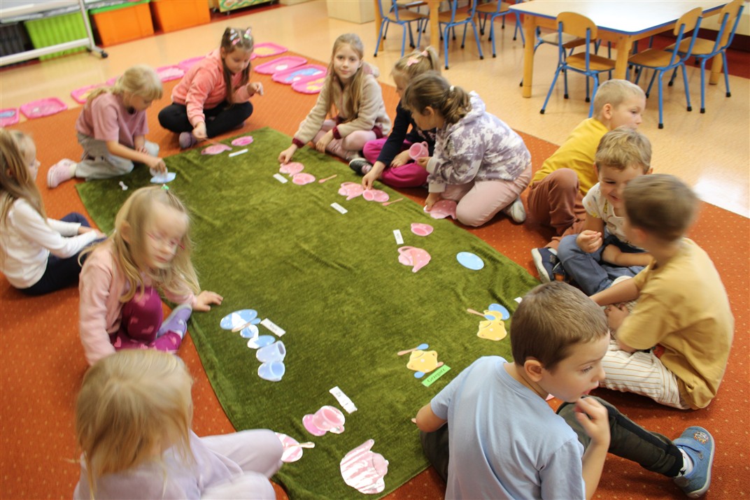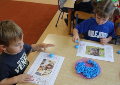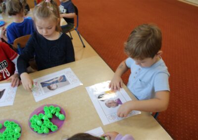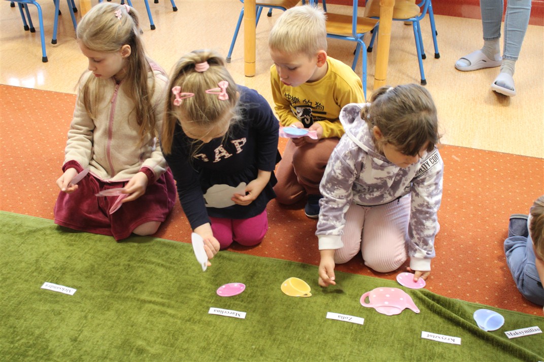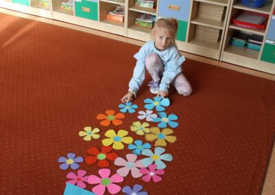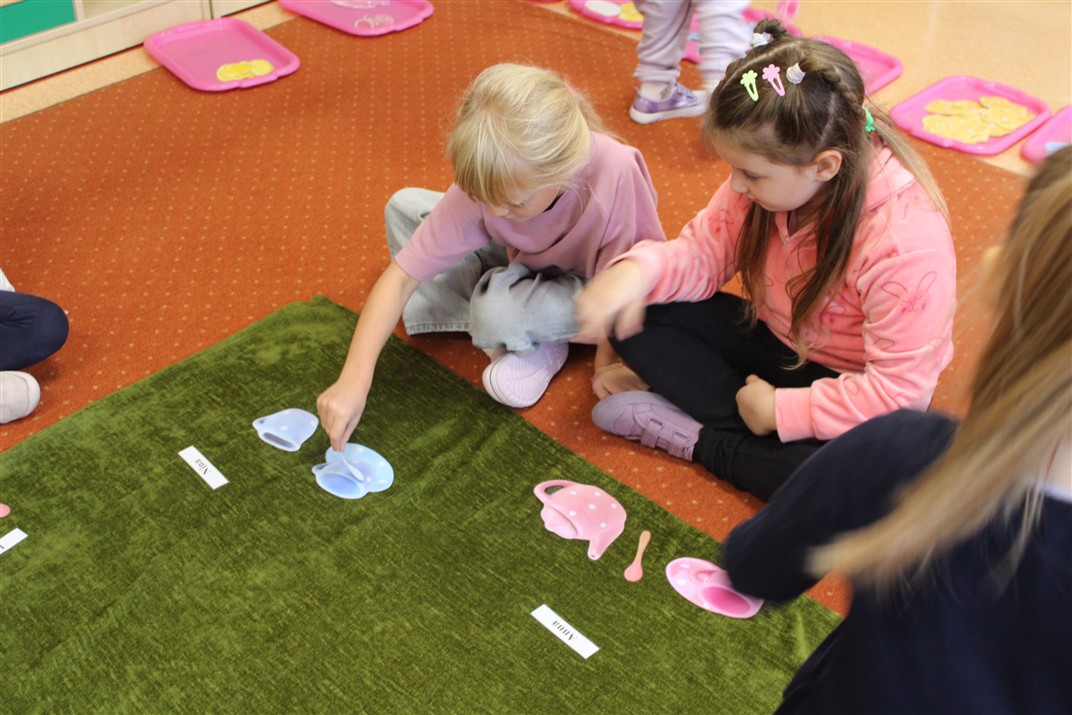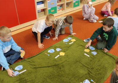 - uczyły się posługiwać określeniami: po prawej stronie, po lewej stronie – dz. starsze, doskonaliły umiejętność liczenia /według indywidualnych możliwości/