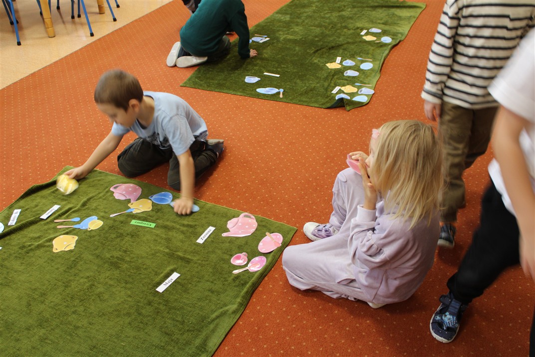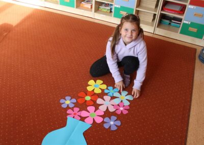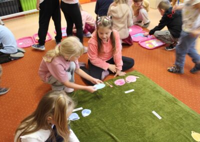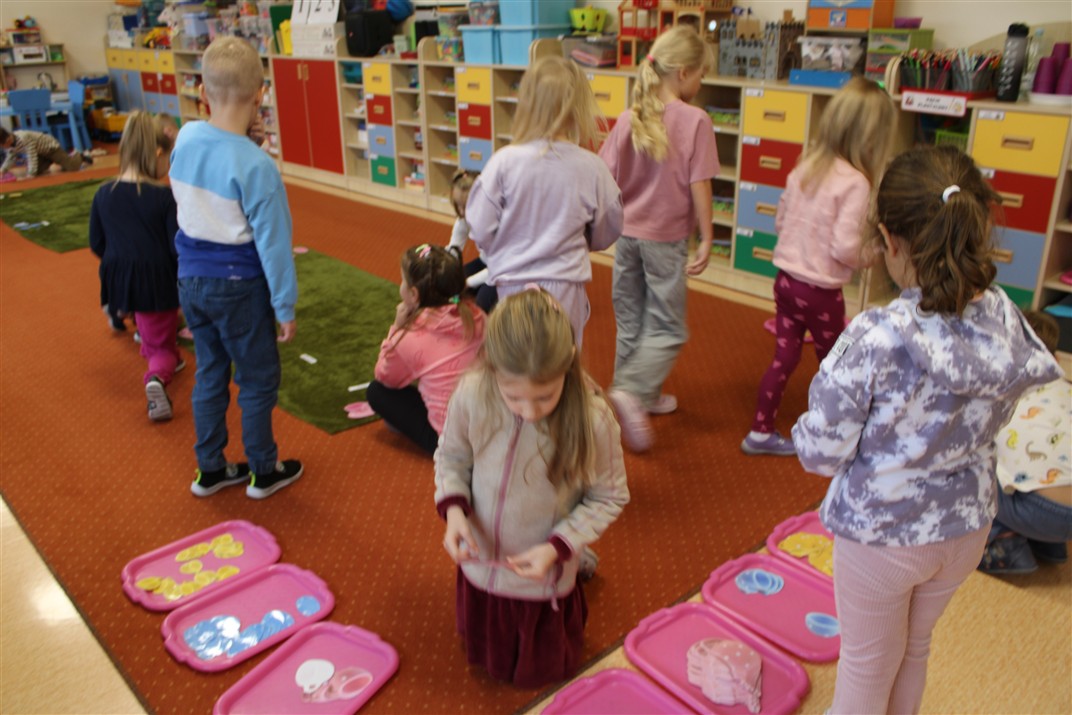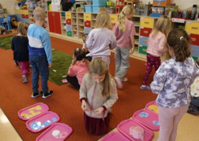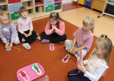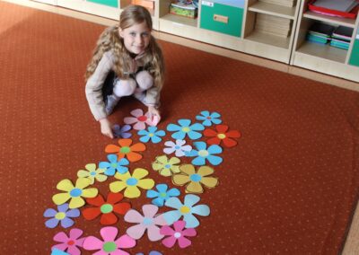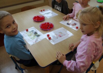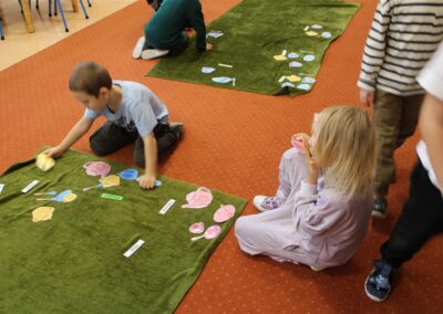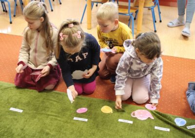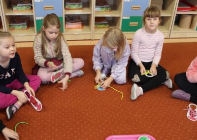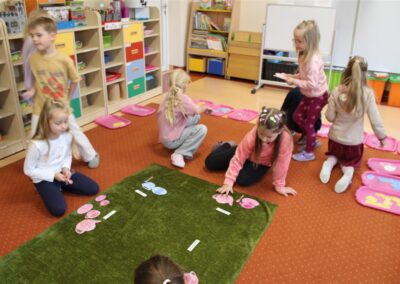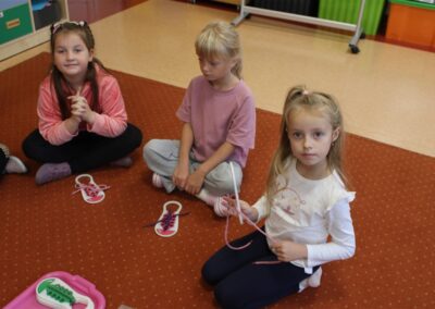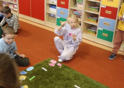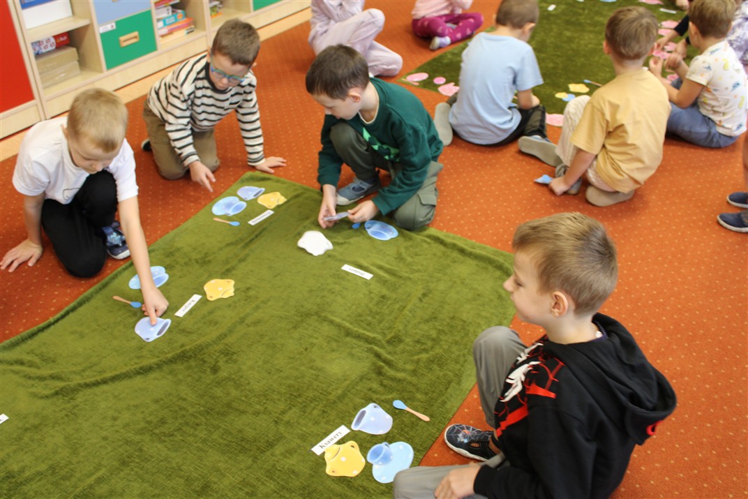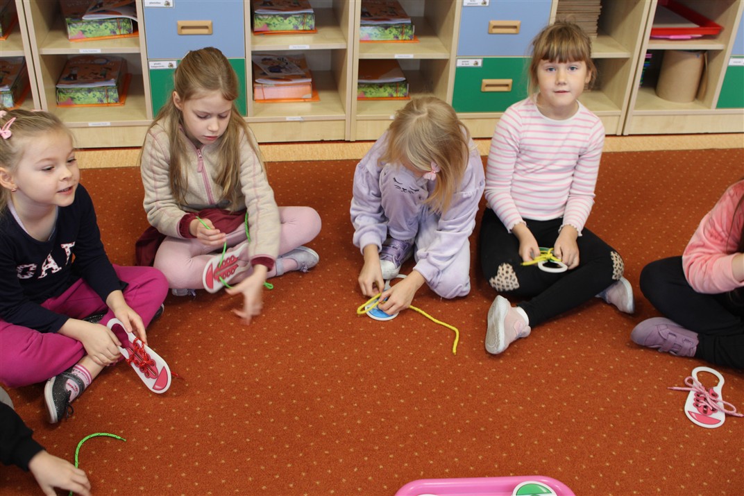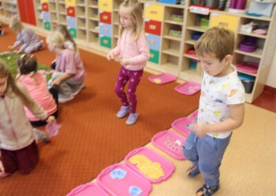 - uczyły się posługiwać określeniami: po prawej stronie, po lewej stronie – dz. starsze, doskonaliły umiejętność liczenia /według indywidualnych możliwości/