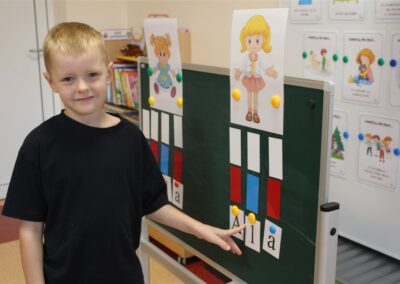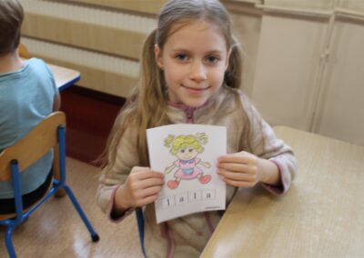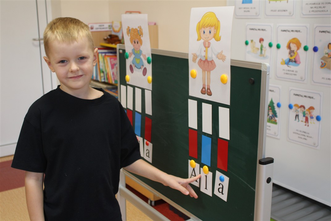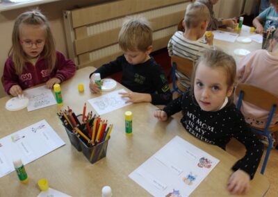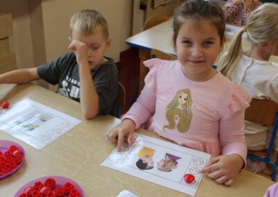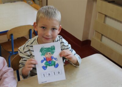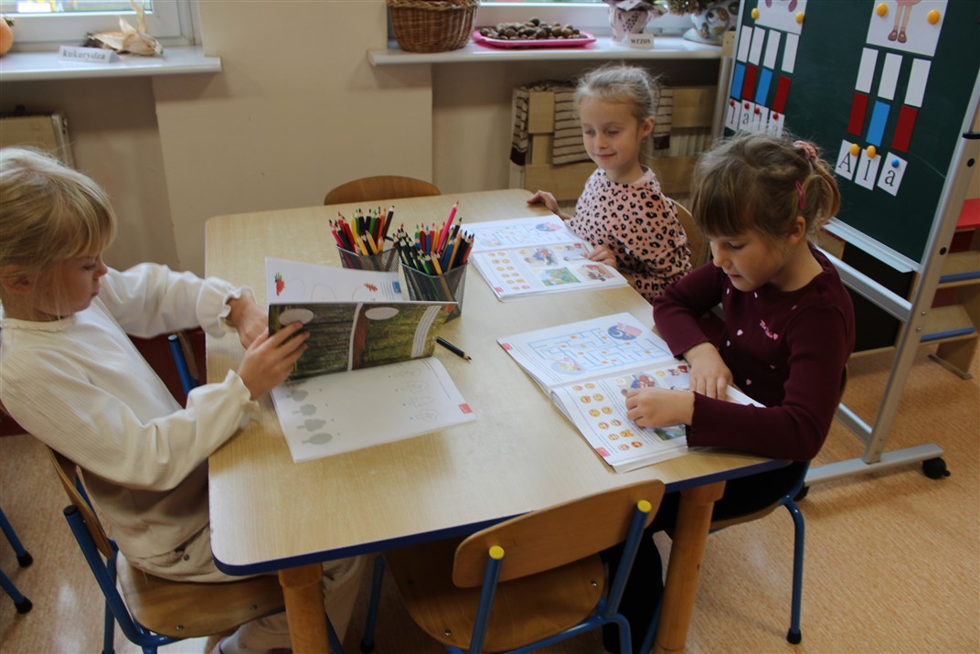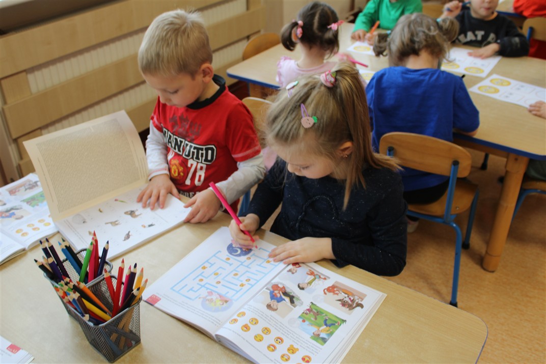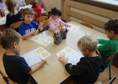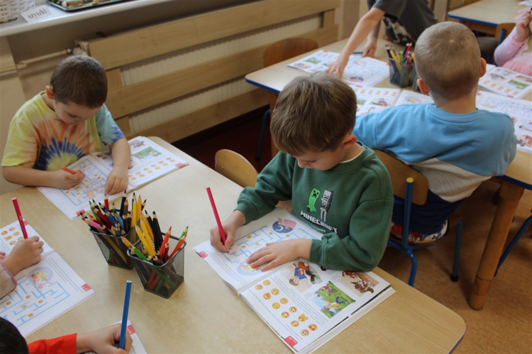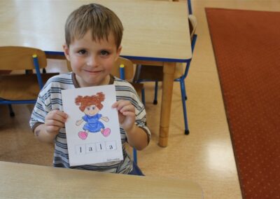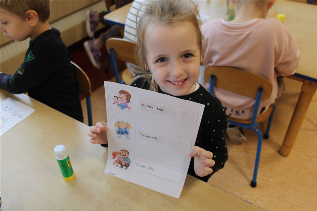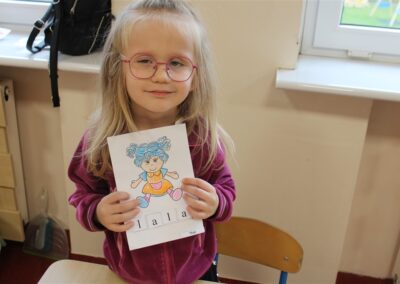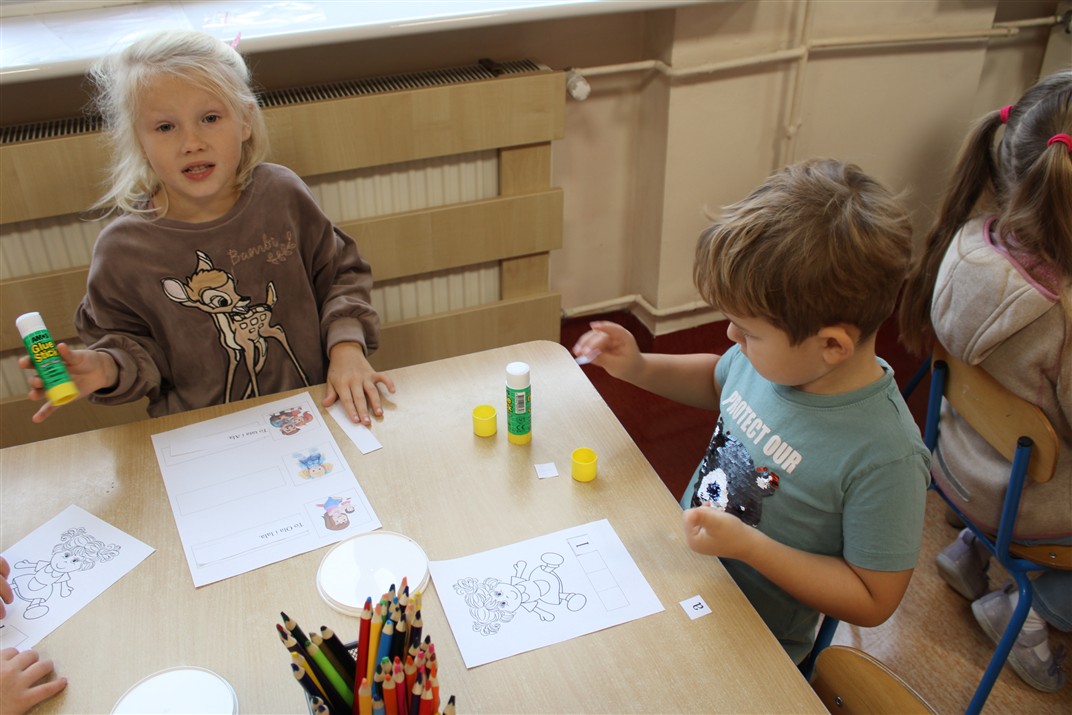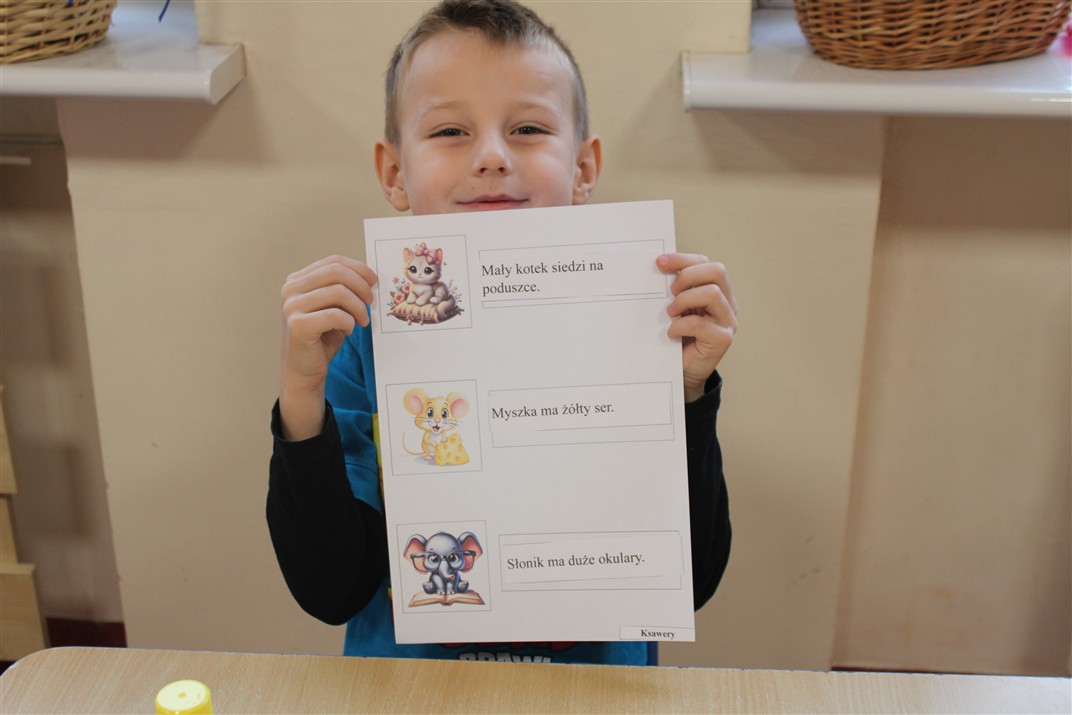 - rozwijały zainteresowanie literami i wykonywały pierwsze napisy z użyciem poznanych liter lub dobierały zdania do odpowiednich ilustracji – według indywidualnych możliwości