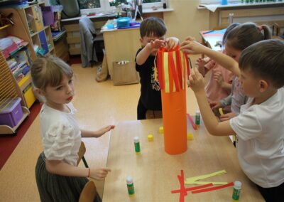 - współpracowały w grupie podczas planowania i wykonywania pracy plastycznej