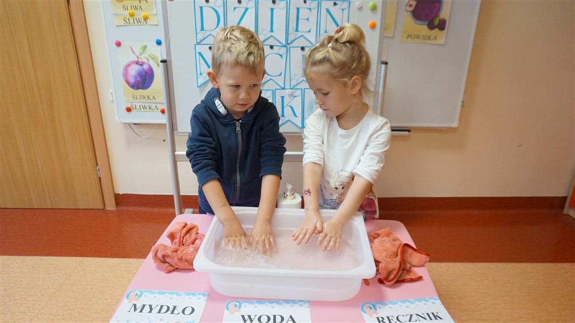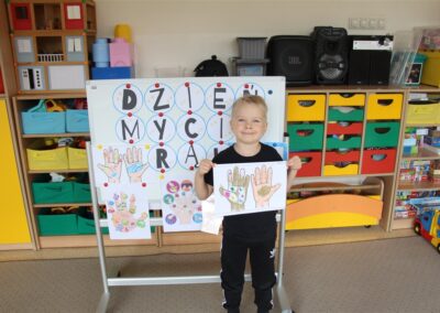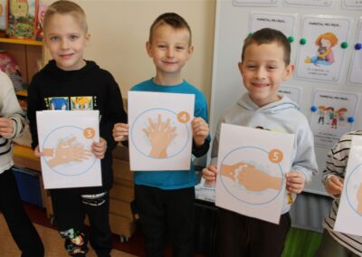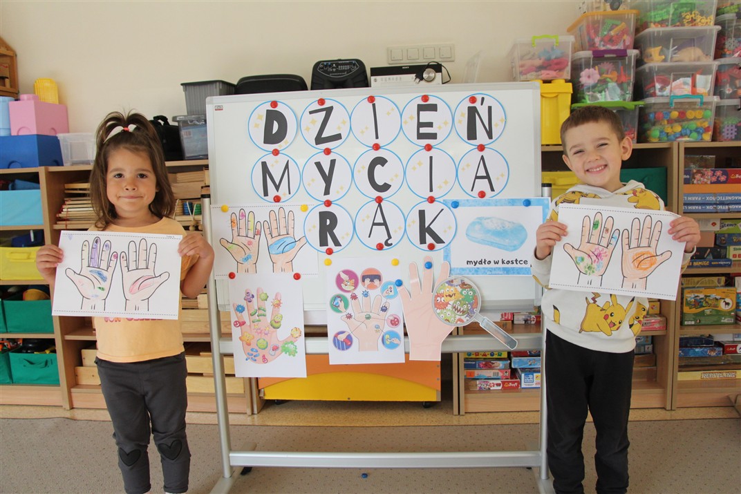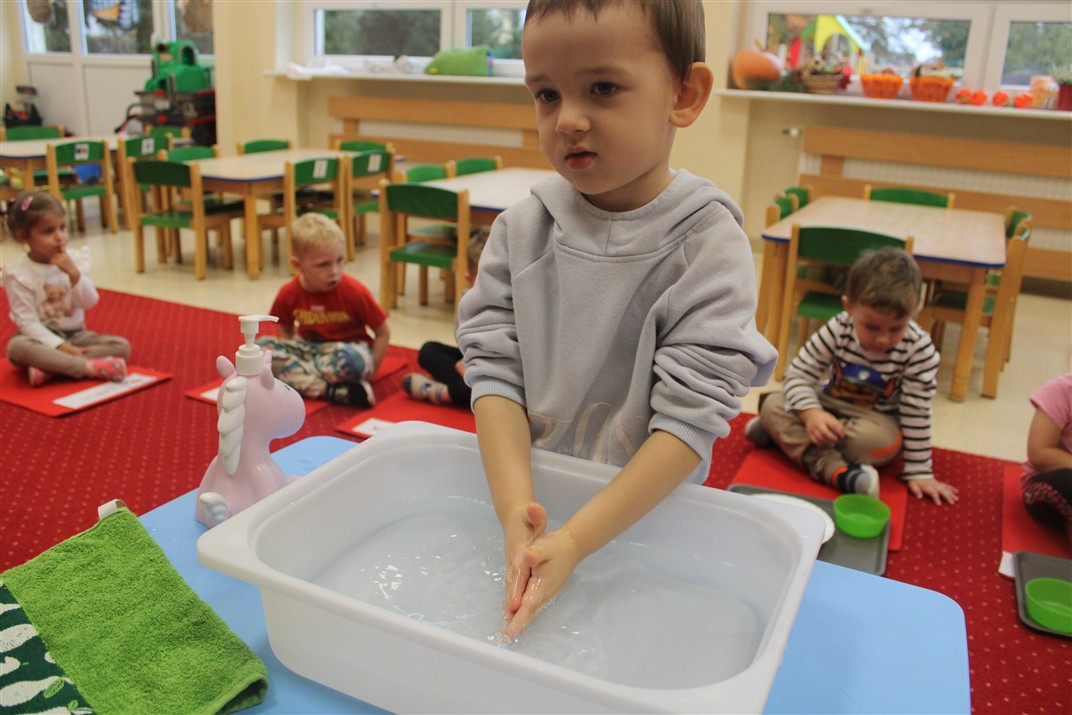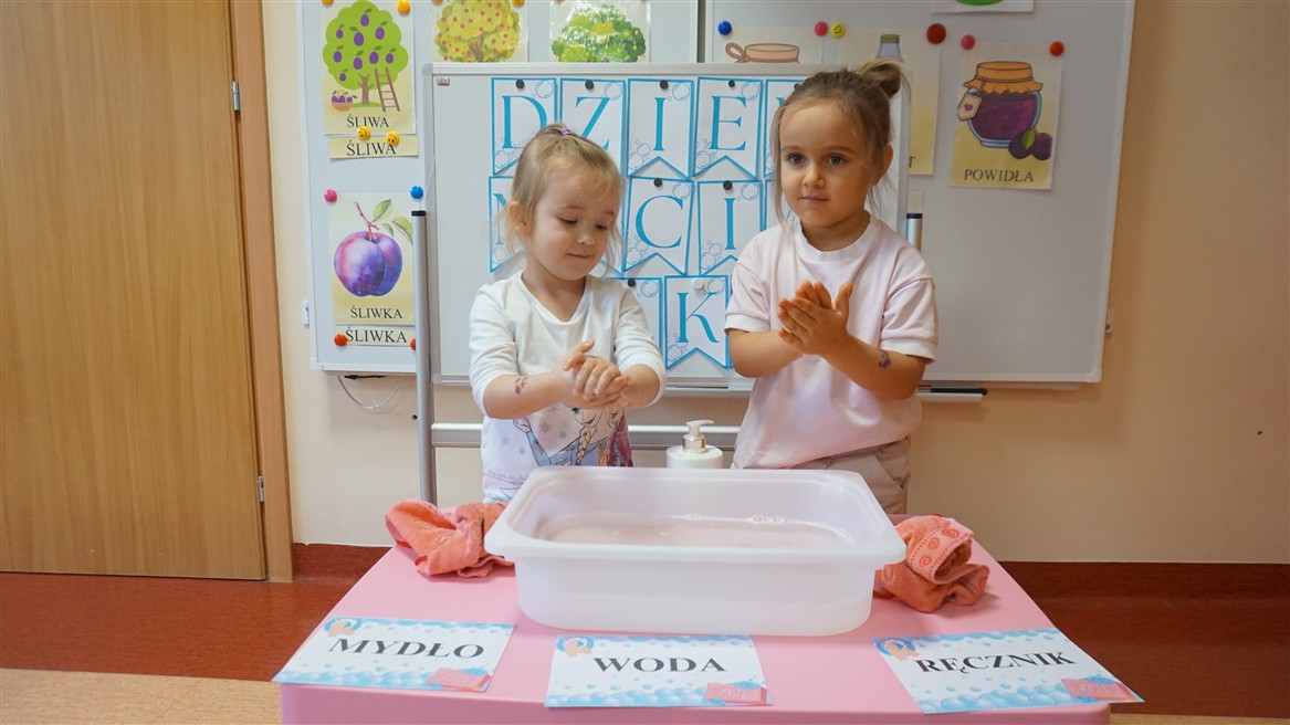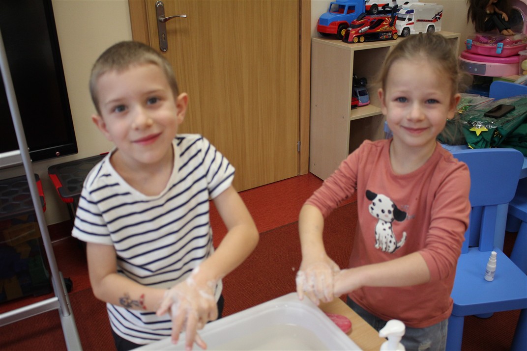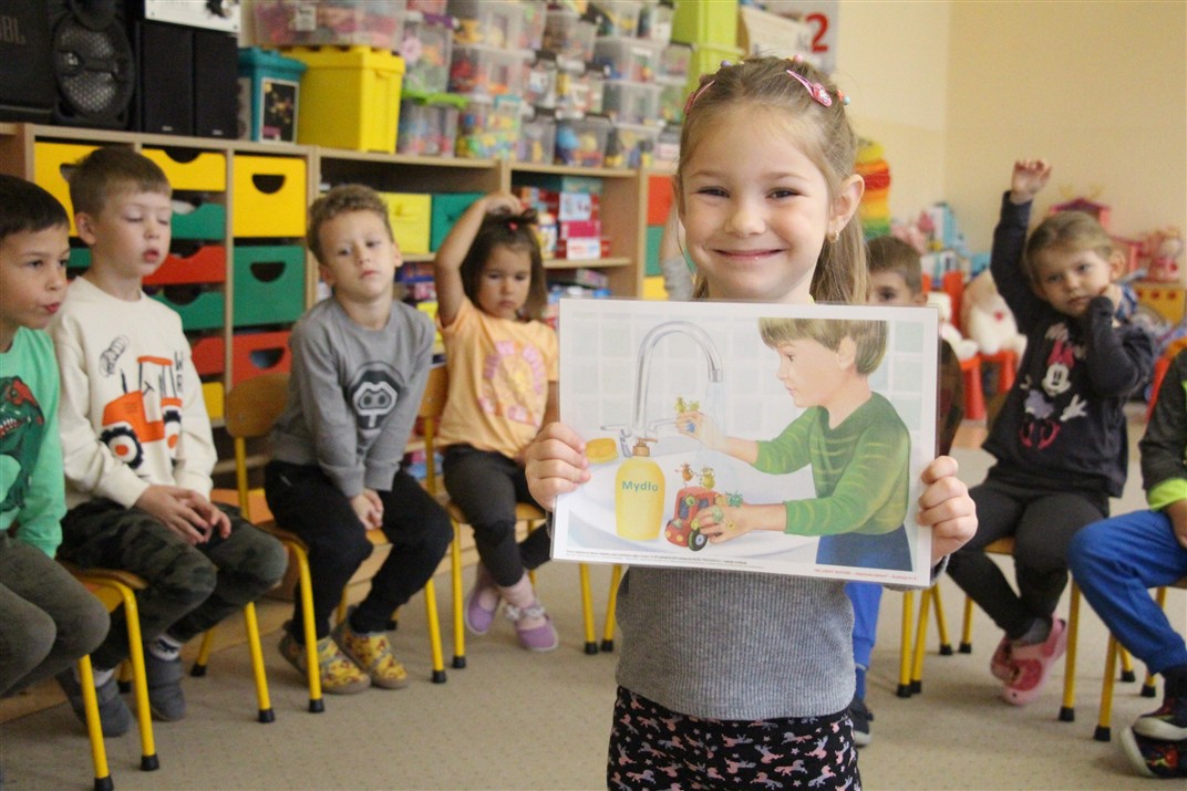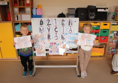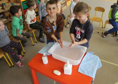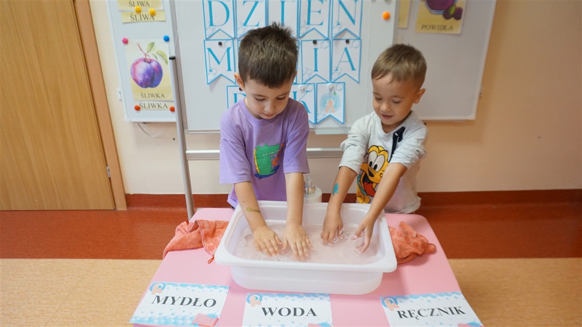 15 października przypada Światowy Dzień Mycia Rąk – święto ustanowione, by promować prawidłowe nawyki higieniczne, szczególnie wśród dzieci. W naszym przedszkolu również uczciliśmy ten dzień w wyjątkowy sposób, łącząc naukę z zabawą, aby uświadomić najmłodszym, jak ważne jest dbanie o czystość rąk. Dzieci podczas zajęć uczyły się prawidłowej techniki mycia rąk przy użyciu mydła i wody. Dowiedziały się również kiedy należy myć ręce. Eksperymentowały z „magicznym pieprzem” – prostym doświadczeniem, które pokazało, jak mydło „odstrasza” brud. Poznały różne rodzaje produktów przeznaczonych do mycia rąk oraz choroby wywołane nie myciem rąk. Dzieci nie tylko świetnie się bawiły, ale przede wszystkim wyniosły z tego dnia ważną lekcję – że mycie rąk to nie obowiązek, lecz codzienny nawyk, który może ochronić przed wieloma chorobami.