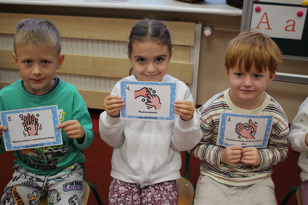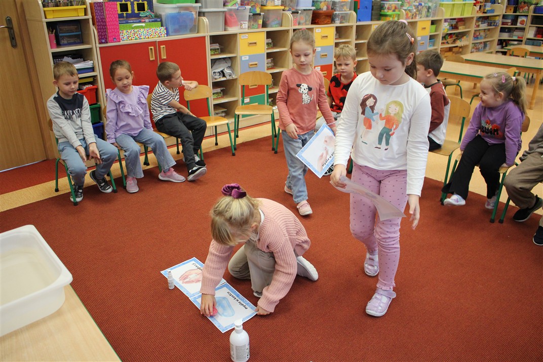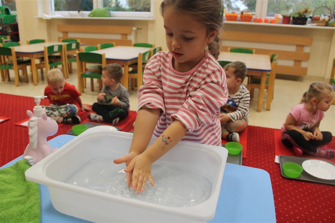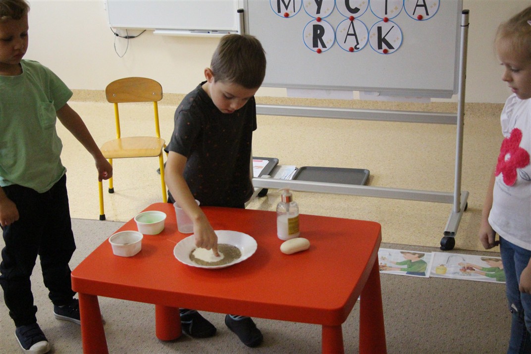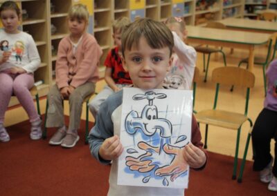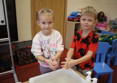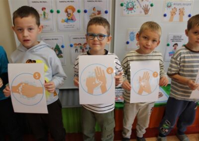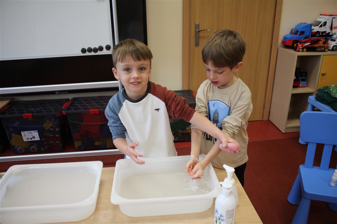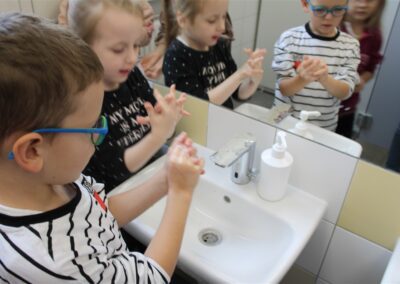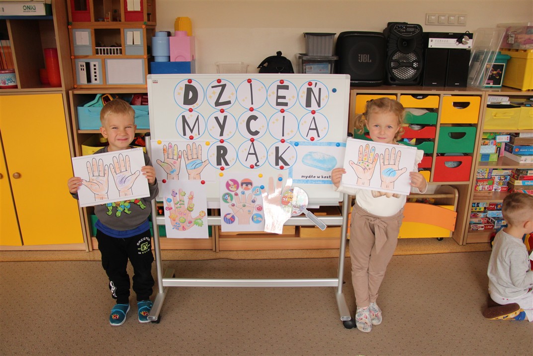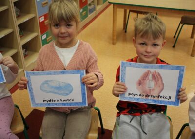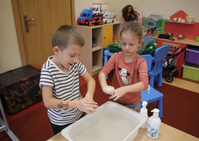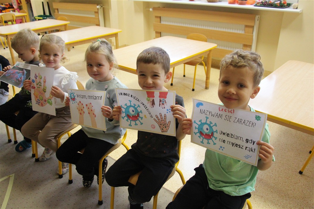15 października przypada Światowy Dzień Mycia Rąk – święto ustanowione, by promować prawidłowe nawyki higieniczne, szczególnie wśród dzieci. W naszym przedszkolu również uczciliśmy ten dzień w wyjątkowy sposób, łącząc naukę z zabawą, aby uświadomić najmłodszym, jak ważne jest dbanie o czystość rąk. Dzieci podczas zajęć uczyły się prawidłowej techniki mycia rąk przy użyciu mydła i wody. Dowiedziały się również kiedy należy myć ręce. Eksperymentowały z „magicznym pieprzem” – prostym doświadczeniem, które pokazało, jak mydło „odstrasza” brud. Poznały różne rodzaje produktów przeznaczonych do mycia rąk oraz choroby wywołane nie myciem rąk. Dzieci nie tylko świetnie się bawiły, ale przede wszystkim wyniosły z tego dnia ważną lekcję – że mycie rąk to nie obowiązek, lecz codzienny nawyk, który może ochronić przed wieloma chorobami.
