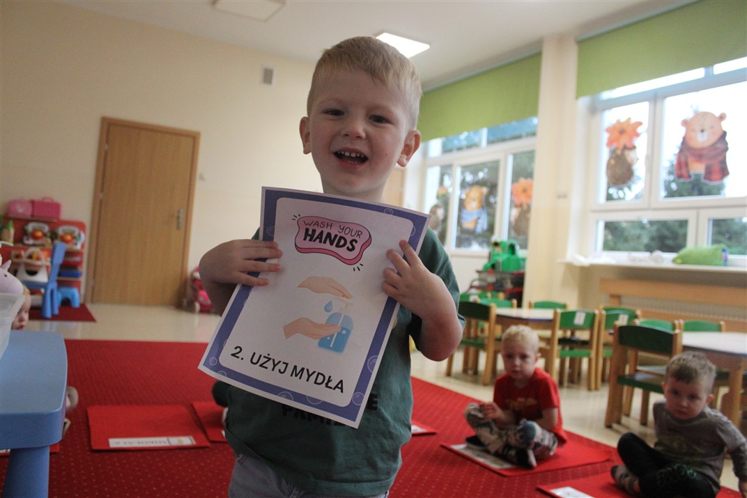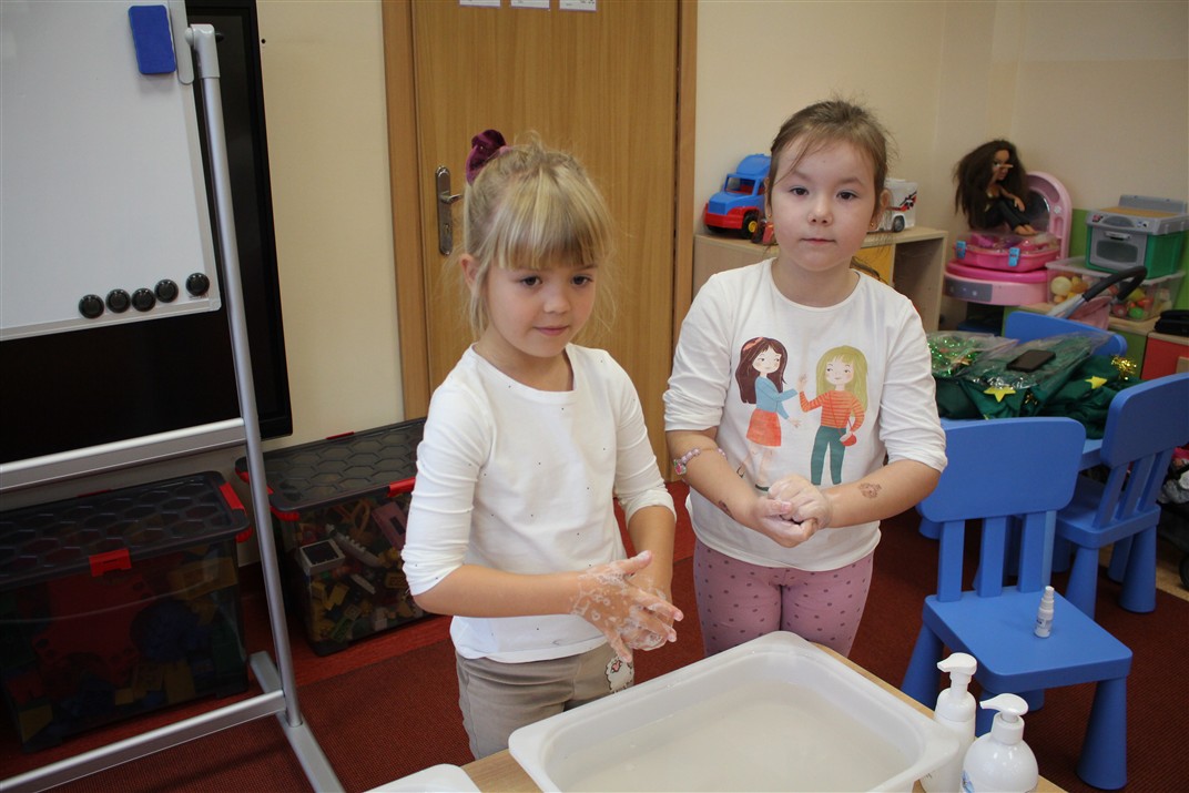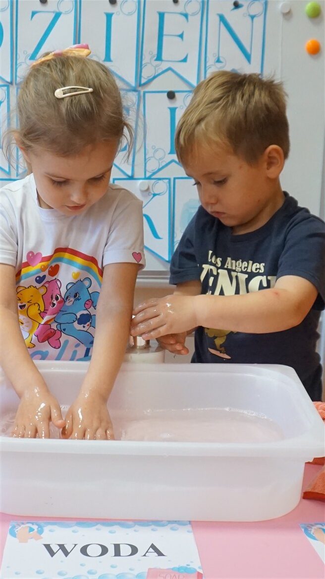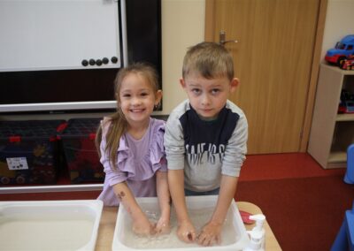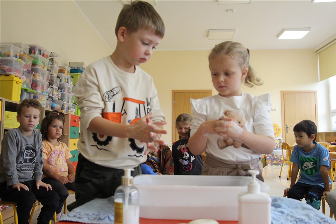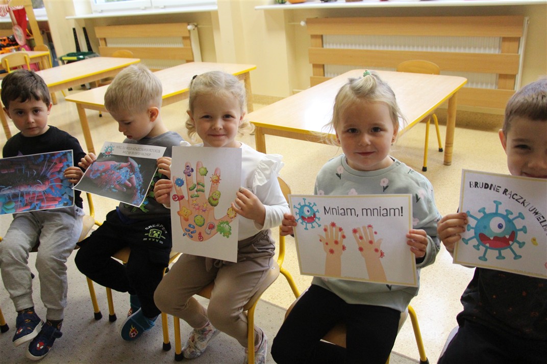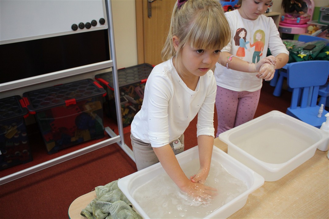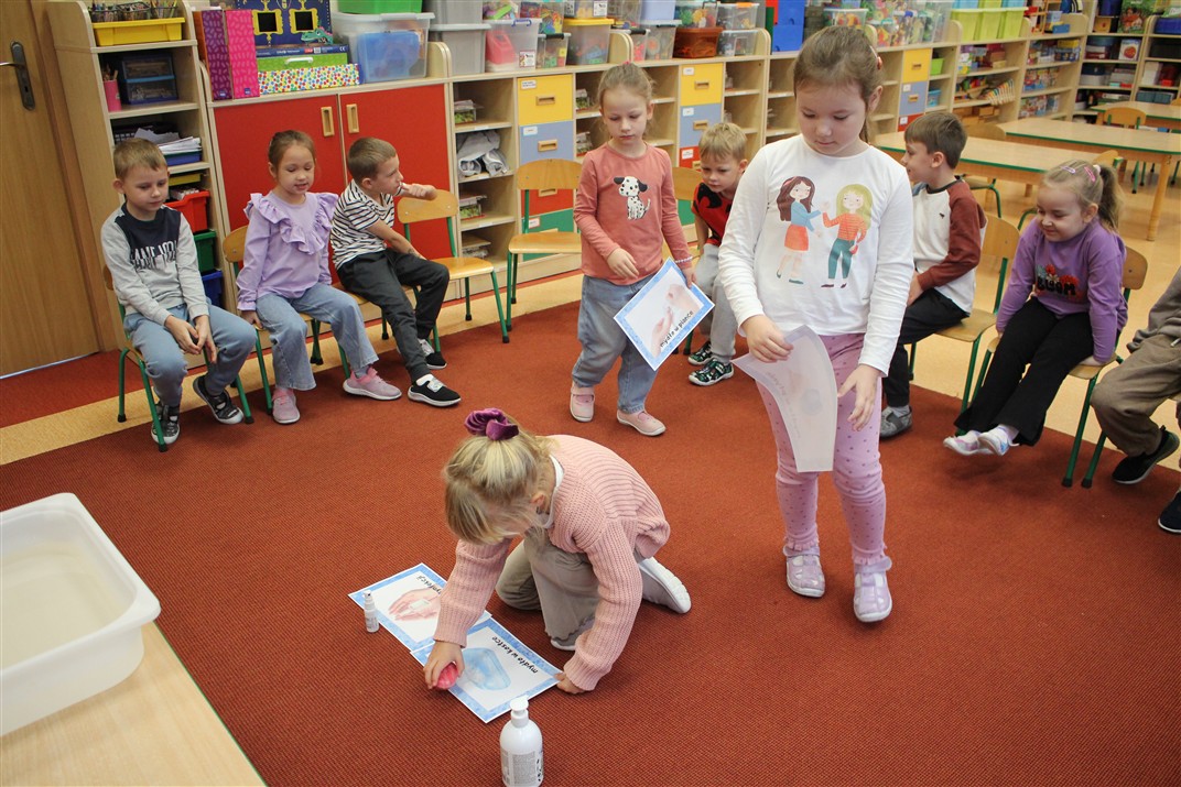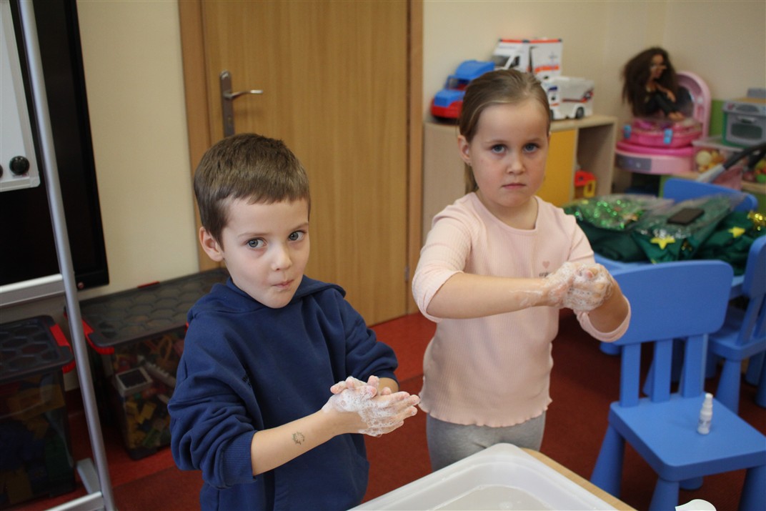 15 października przypada Światowy Dzień Mycia Rąk – święto ustanowione, by promować prawidłowe nawyki higieniczne, szczególnie wśród dzieci. W naszym przedszkolu również uczciliśmy ten dzień w wyjątkowy sposób, łącząc naukę z zabawą, aby uświadomić najmłodszym, jak ważne jest dbanie o czystość rąk. Dzieci podczas zajęć uczyły się prawidłowej techniki mycia rąk przy użyciu mydła i wody. Dowiedziały się również kiedy należy myć ręce. Eksperymentowały z „magicznym pieprzem” – prostym doświadczeniem, które pokazało, jak mydło „odstrasza” brud. Poznały różne rodzaje produktów przeznaczonych do mycia rąk oraz choroby wywołane nie myciem rąk. Dzieci nie tylko świetnie się bawiły, ale przede wszystkim wyniosły z tego dnia ważną lekcję – że mycie rąk to nie obowiązek, lecz codzienny nawyk, który może ochronić przed wieloma chorobami.