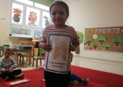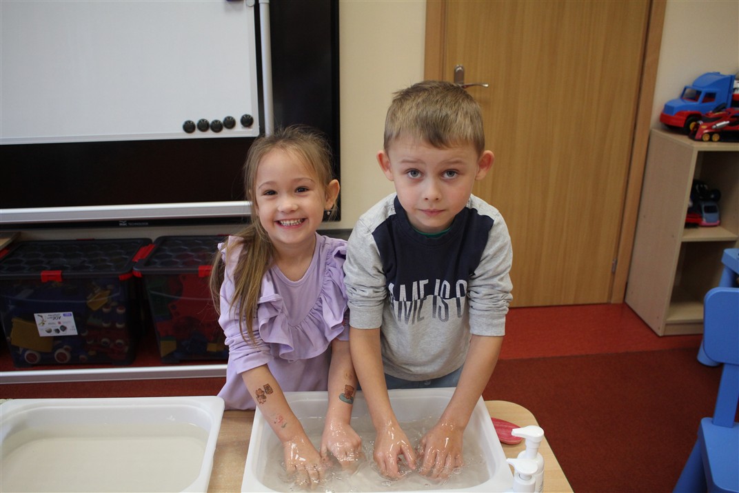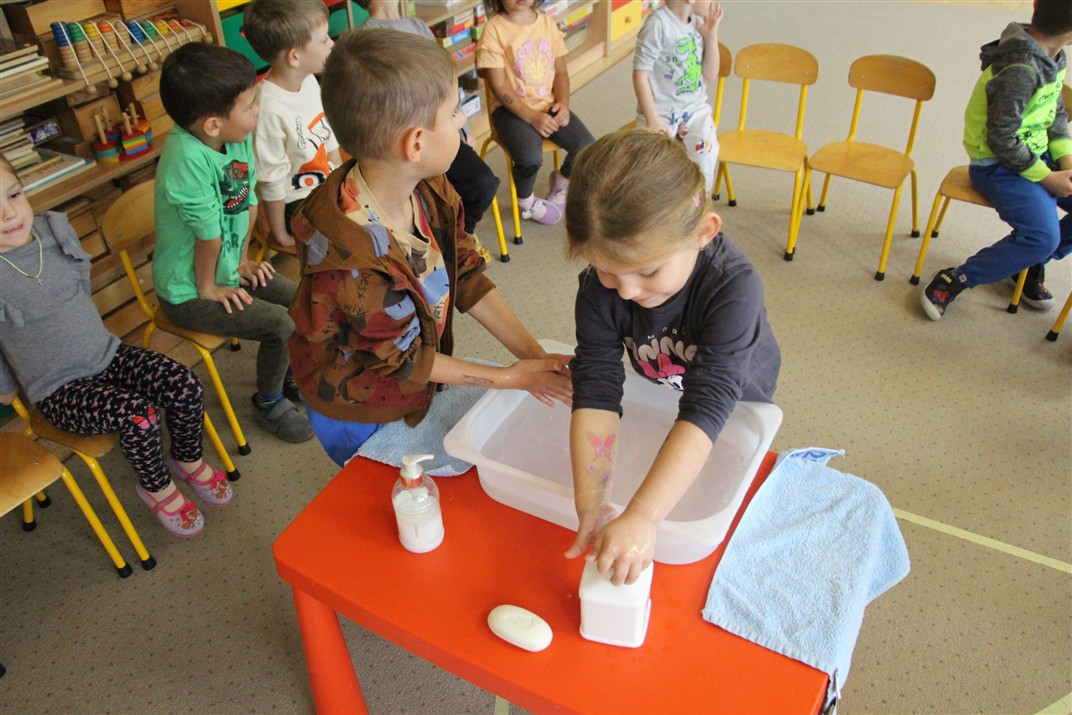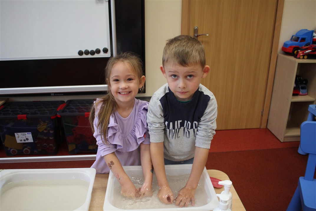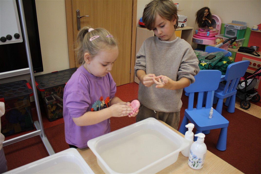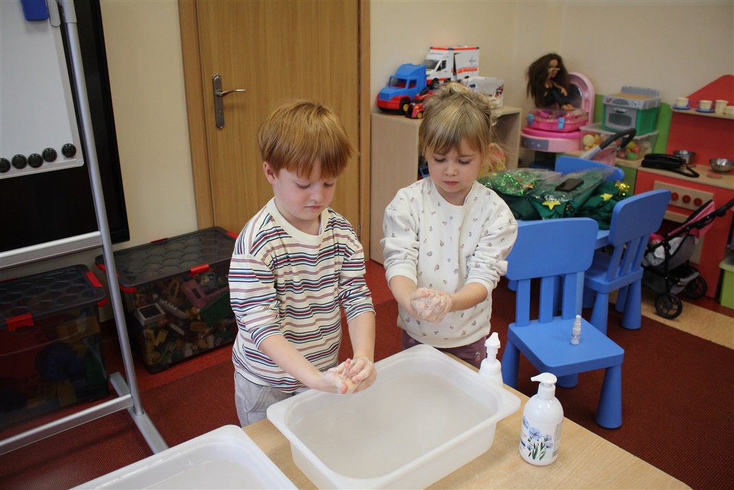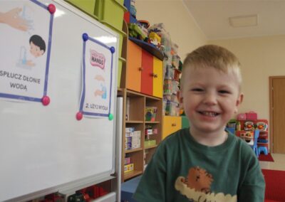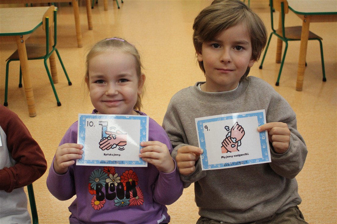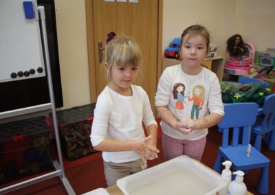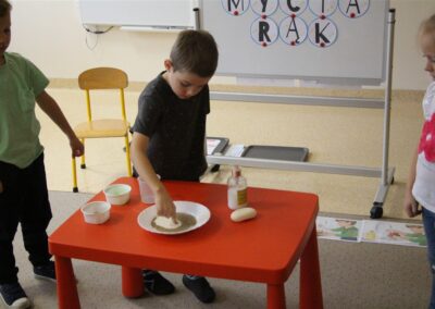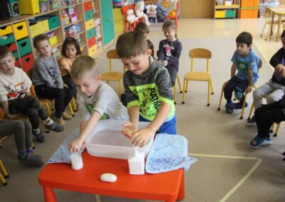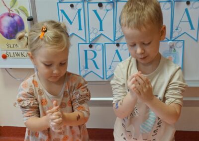 15 października przypada Światowy Dzień Mycia Rąk – święto ustanowione, by promować prawidłowe nawyki higieniczne, szczególnie wśród dzieci. W naszym przedszkolu również uczciliśmy ten dzień w wyjątkowy sposób, łącząc naukę z zabawą, aby uświadomić najmłodszym, jak ważne jest dbanie o czystość rąk. Dzieci podczas zajęć uczyły się prawidłowej techniki mycia rąk przy użyciu mydła i wody. Dowiedziały się również kiedy należy myć ręce. Eksperymentowały z „magicznym pieprzem” – prostym doświadczeniem, które pokazało, jak mydło „odstrasza” brud. Poznały różne rodzaje produktów przeznaczonych do mycia rąk oraz choroby wywołane nie myciem rąk. Dzieci nie tylko świetnie się bawiły, ale przede wszystkim wyniosły z tego dnia ważną lekcję – że mycie rąk to nie obowiązek, lecz codzienny nawyk, który może ochronić przed wieloma chorobami.