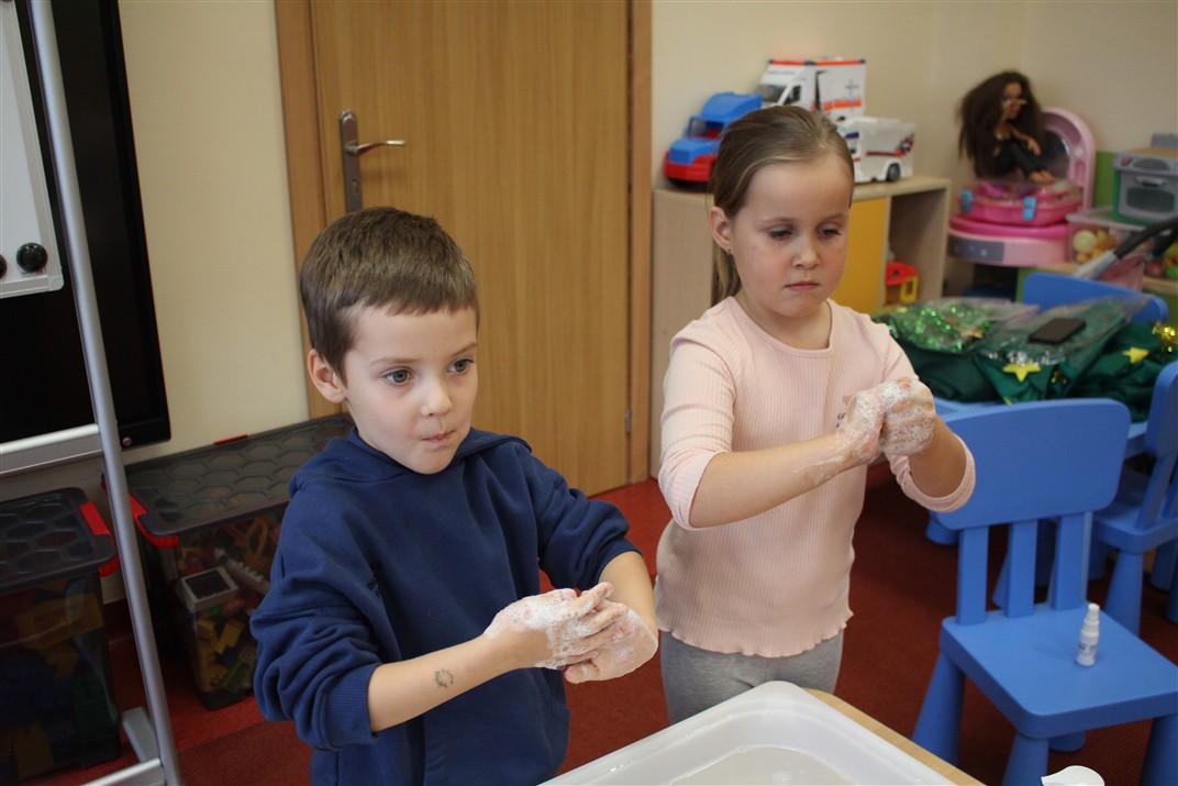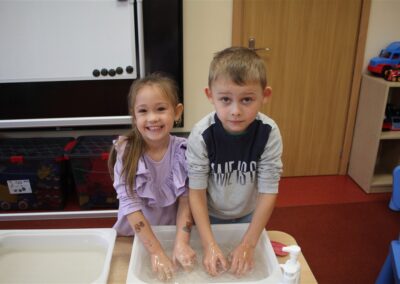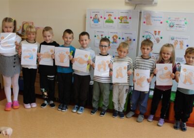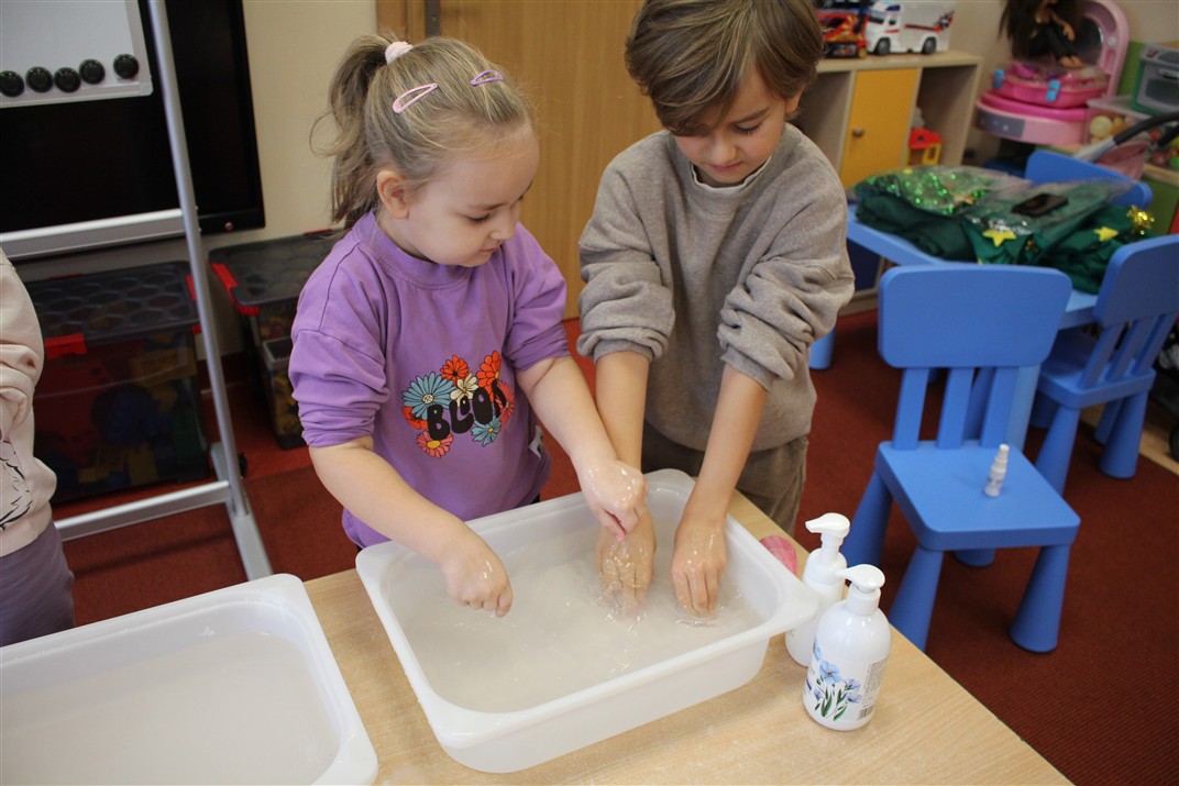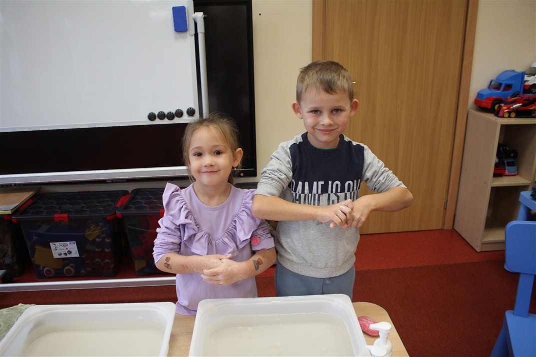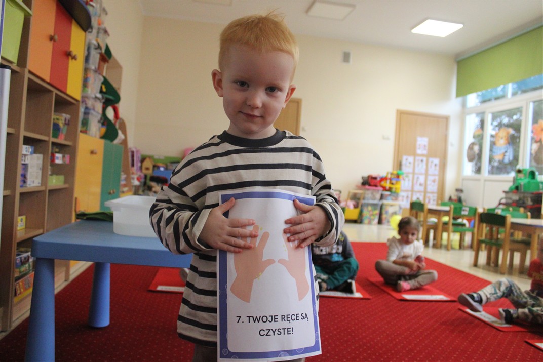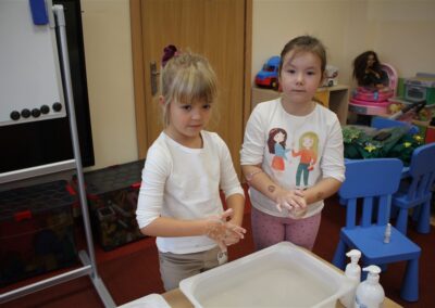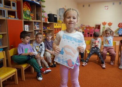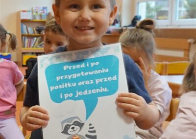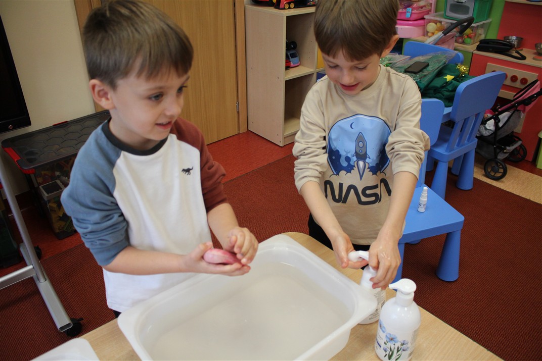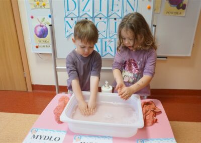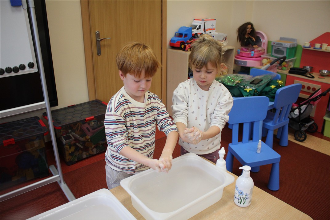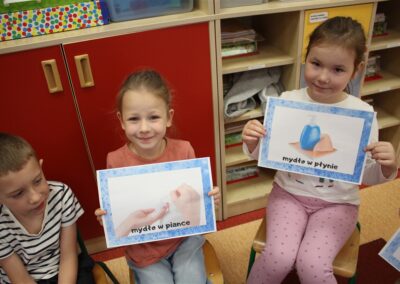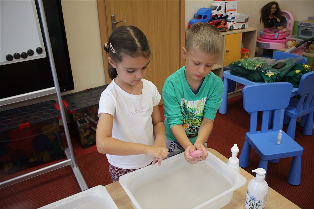 15 października przypada Światowy Dzień Mycia Rąk – święto ustanowione, by promować prawidłowe nawyki higieniczne, szczególnie wśród dzieci. W naszym przedszkolu również uczciliśmy ten dzień w wyjątkowy sposób, łącząc naukę z zabawą, aby uświadomić najmłodszym, jak ważne jest dbanie o czystość rąk. Dzieci podczas zajęć uczyły się prawidłowej techniki mycia rąk przy użyciu mydła i wody. Dowiedziały się również kiedy należy myć ręce. Eksperymentowały z „magicznym pieprzem” – prostym doświadczeniem, które pokazało, jak mydło „odstrasza” brud. Poznały różne rodzaje produktów przeznaczonych do mycia rąk oraz choroby wywołane nie myciem rąk. Dzieci nie tylko świetnie się bawiły, ale przede wszystkim wyniosły z tego dnia ważną lekcję – że mycie rąk to nie obowiązek, lecz codzienny nawyk, który może ochronić przed wieloma chorobami.