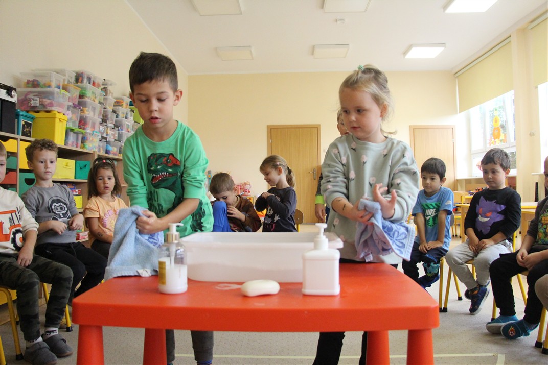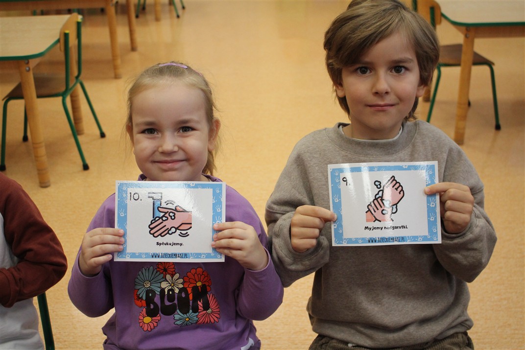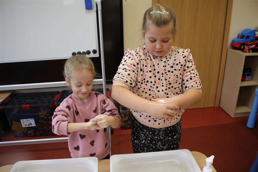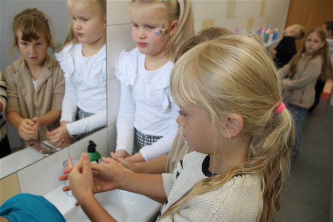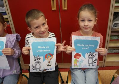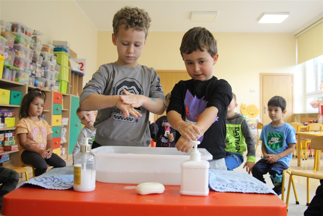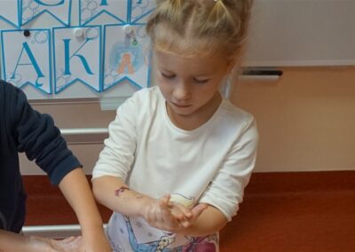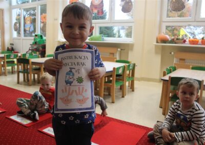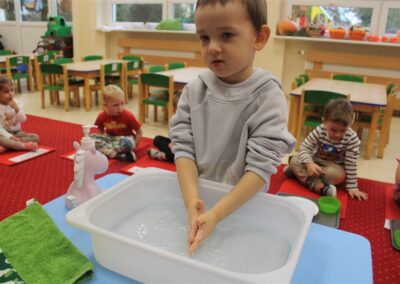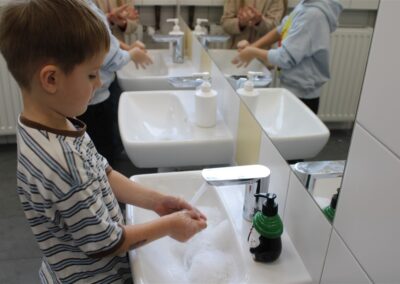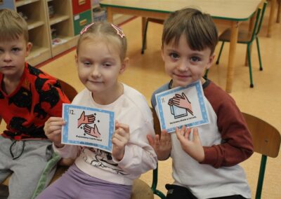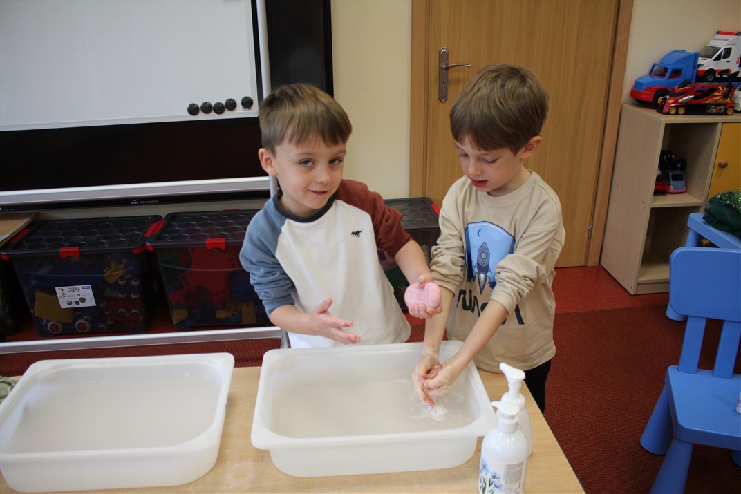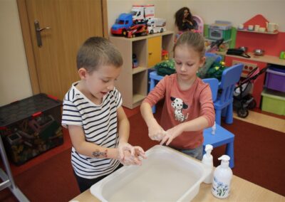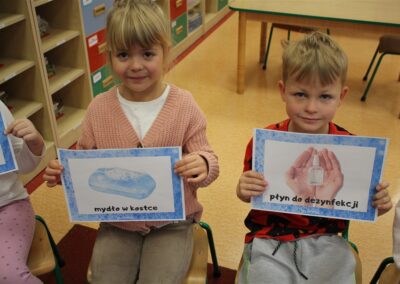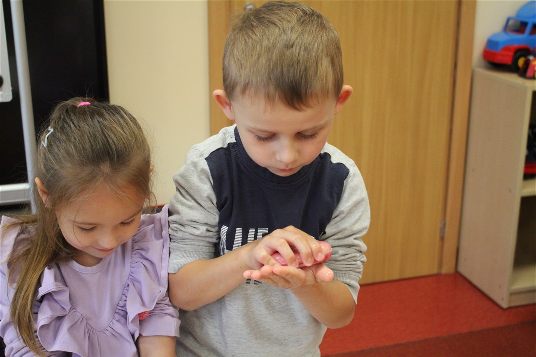 15 października przypada Światowy Dzień Mycia Rąk – święto ustanowione, by promować prawidłowe nawyki higieniczne, szczególnie wśród dzieci. W naszym przedszkolu również uczciliśmy ten dzień w wyjątkowy sposób, łącząc naukę z zabawą, aby uświadomić najmłodszym, jak ważne jest dbanie o czystość rąk. Dzieci podczas zajęć uczyły się prawidłowej techniki mycia rąk przy użyciu mydła i wody. Dowiedziały się również kiedy należy myć ręce. Eksperymentowały z „magicznym pieprzem” – prostym doświadczeniem, które pokazało, jak mydło „odstrasza” brud. Poznały różne rodzaje produktów przeznaczonych do mycia rąk oraz choroby wywołane nie myciem rąk. Dzieci nie tylko świetnie się bawiły, ale przede wszystkim wyniosły z tego dnia ważną lekcję – że mycie rąk to nie obowiązek, lecz codzienny nawyk, który może ochronić przed wieloma chorobami.