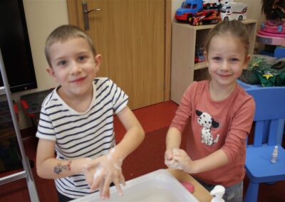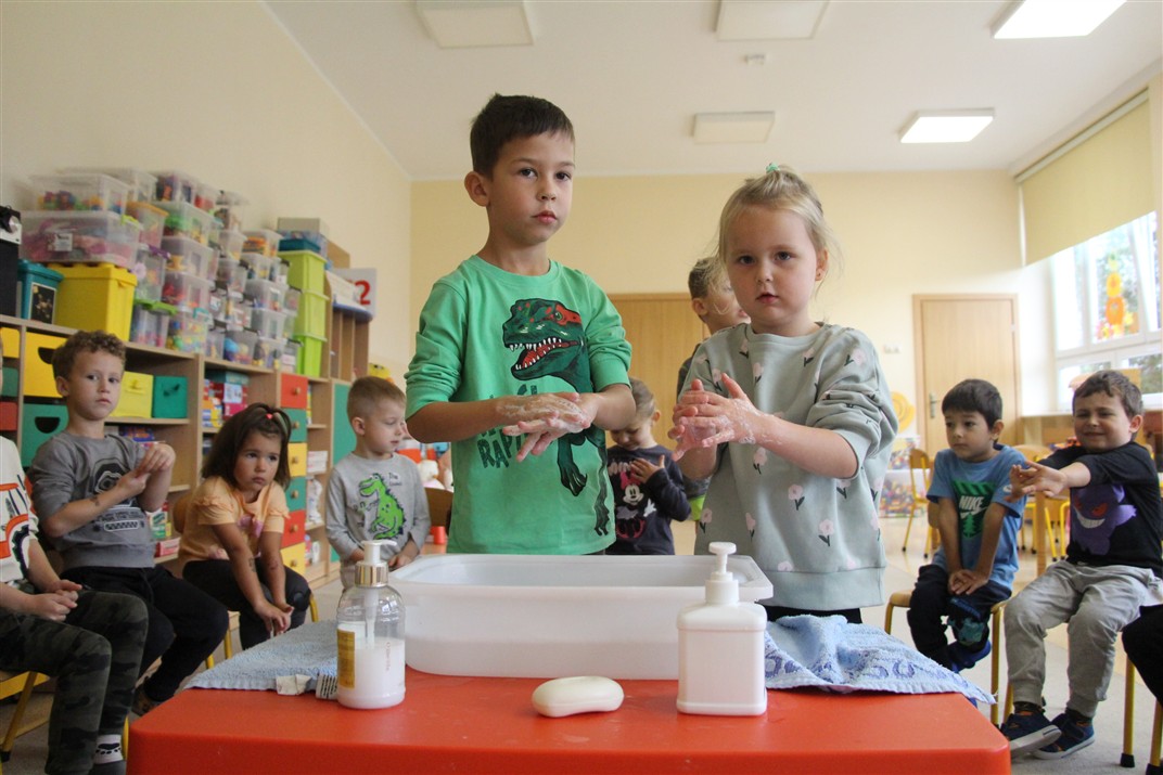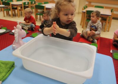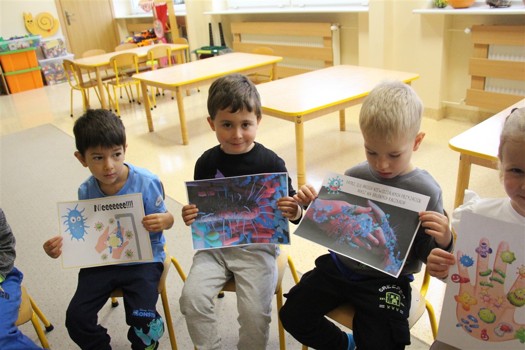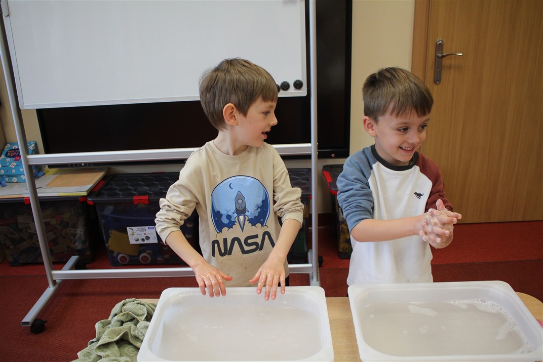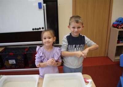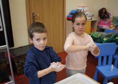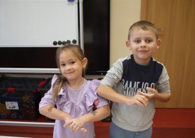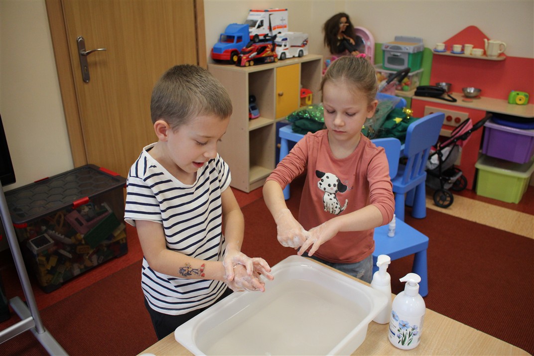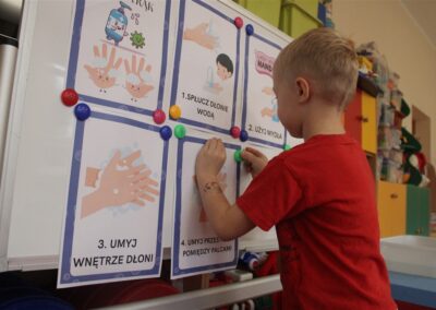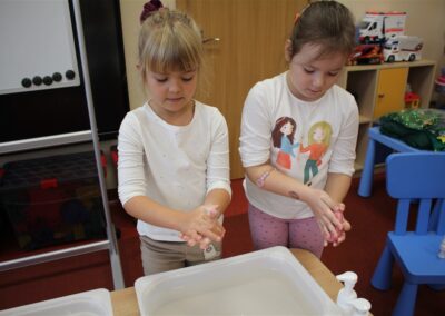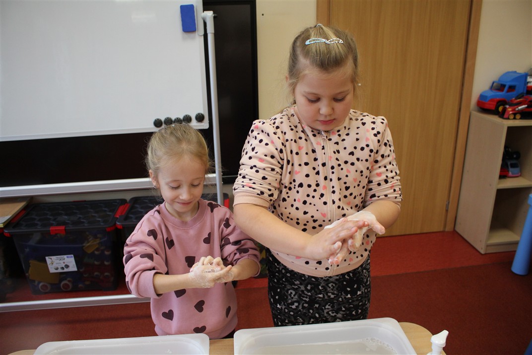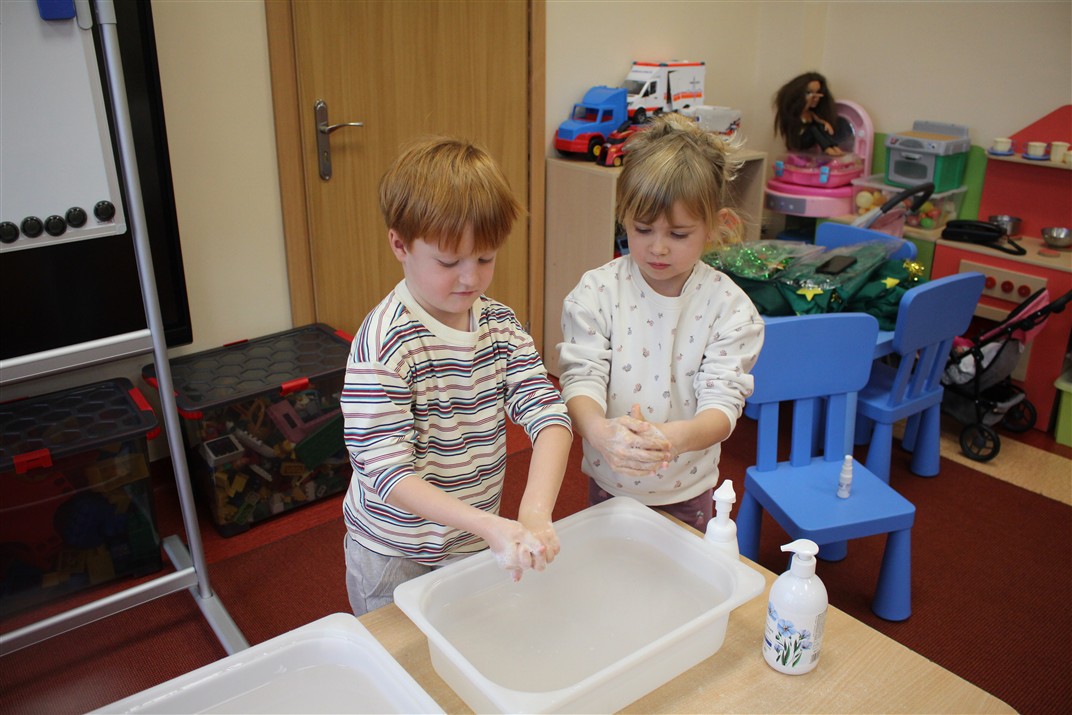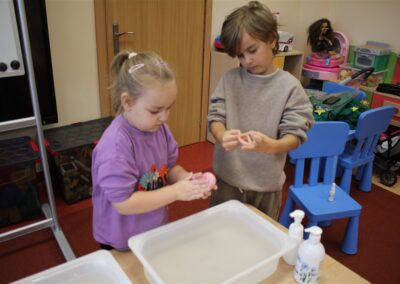 15 października przypada Światowy Dzień Mycia Rąk – święto ustanowione, by promować prawidłowe nawyki higieniczne, szczególnie wśród dzieci. W naszym przedszkolu również uczciliśmy ten dzień w wyjątkowy sposób, łącząc naukę z zabawą, aby uświadomić najmłodszym, jak ważne jest dbanie o czystość rąk. Dzieci podczas zajęć uczyły się prawidłowej techniki mycia rąk przy użyciu mydła i wody. Dowiedziały się również kiedy należy myć ręce. Eksperymentowały z „magicznym pieprzem” – prostym doświadczeniem, które pokazało, jak mydło „odstrasza” brud. Poznały różne rodzaje produktów przeznaczonych do mycia rąk oraz choroby wywołane nie myciem rąk. Dzieci nie tylko świetnie się bawiły, ale przede wszystkim wyniosły z tego dnia ważną lekcję – że mycie rąk to nie obowiązek, lecz codzienny nawyk, który może ochronić przed wieloma chorobami.