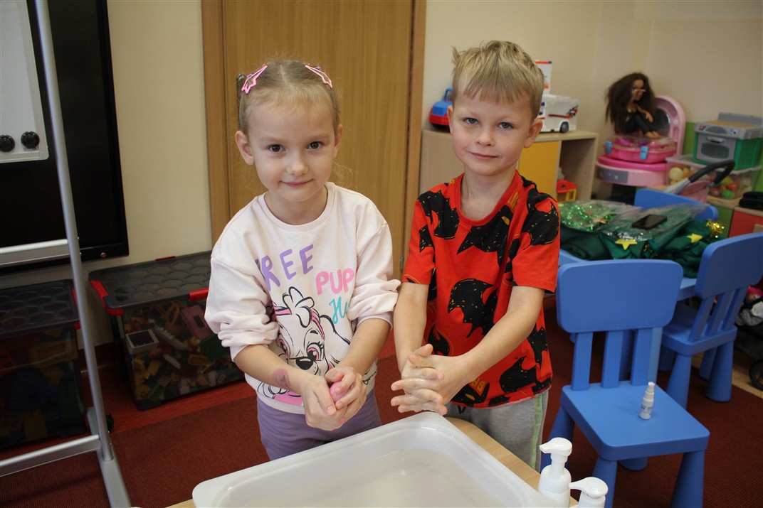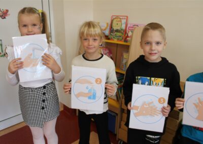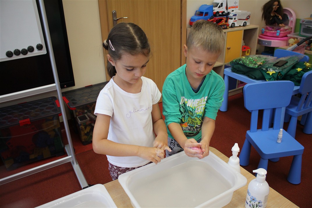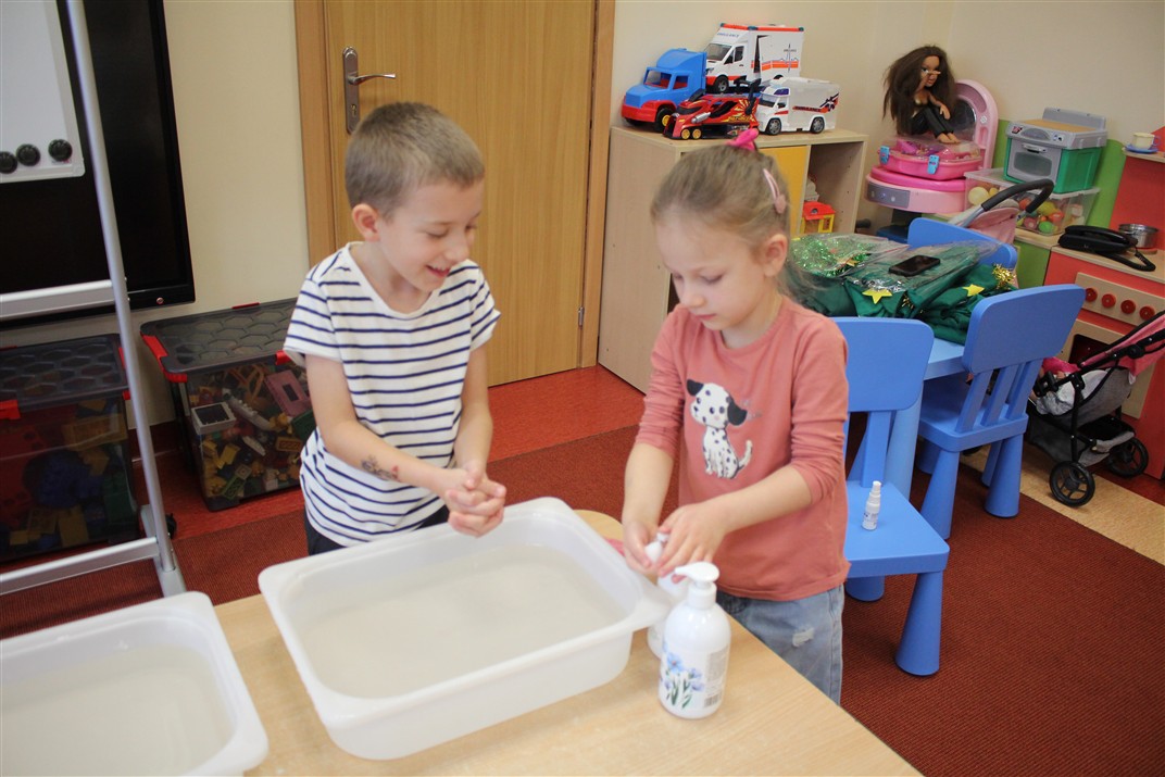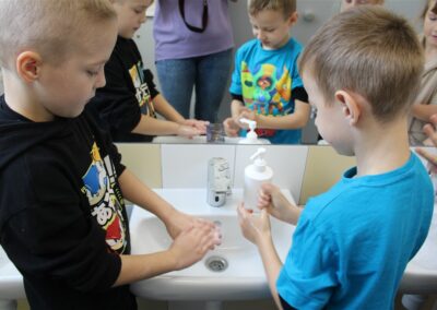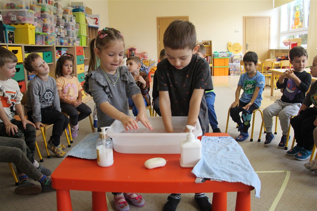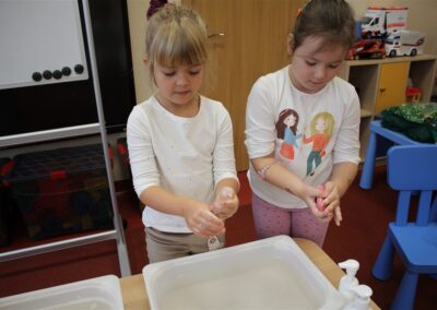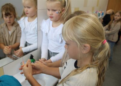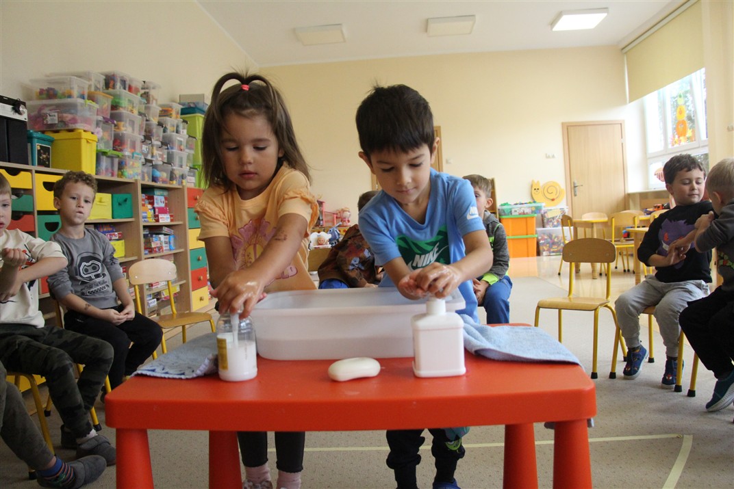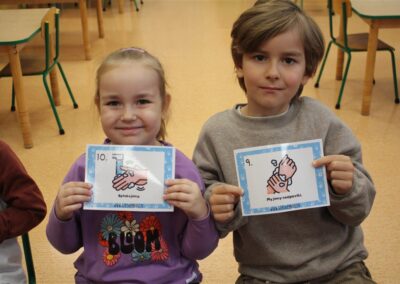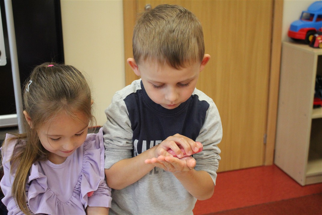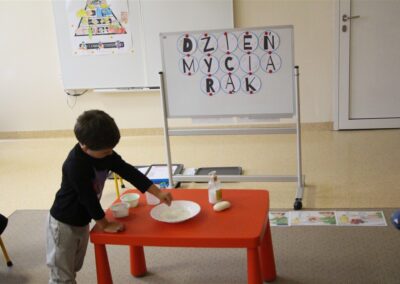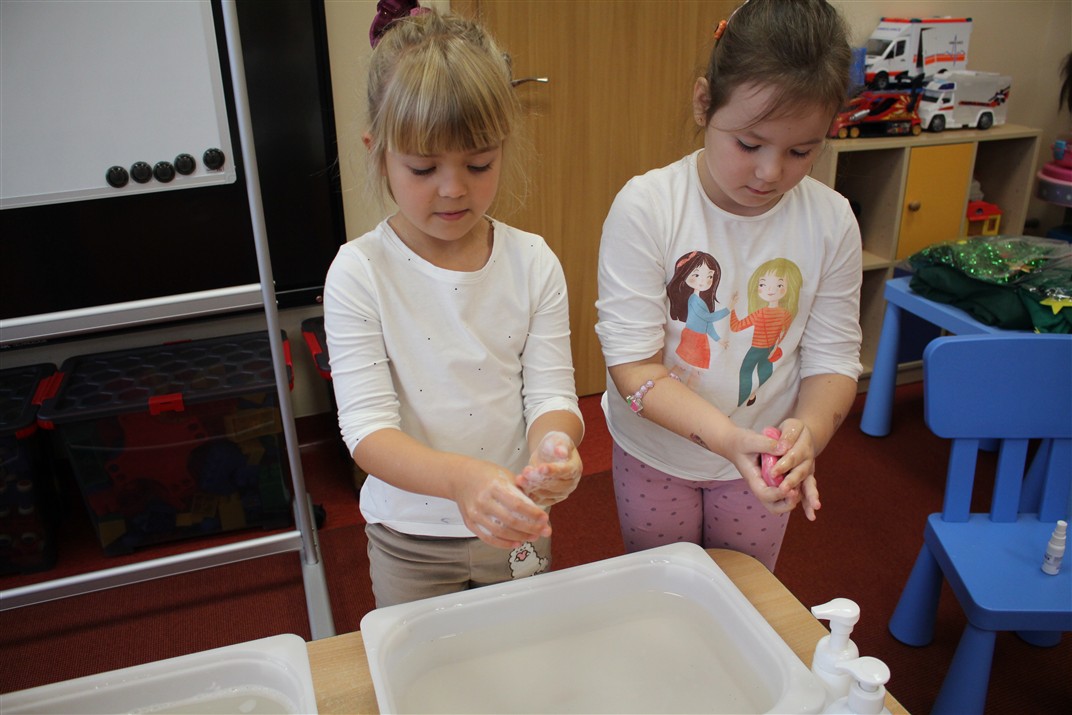 15 października przypada Światowy Dzień Mycia Rąk – święto ustanowione, by promować prawidłowe nawyki higieniczne, szczególnie wśród dzieci. W naszym przedszkolu również uczciliśmy ten dzień w wyjątkowy sposób, łącząc naukę z zabawą, aby uświadomić najmłodszym, jak ważne jest dbanie o czystość rąk. Dzieci podczas zajęć uczyły się prawidłowej techniki mycia rąk przy użyciu mydła i wody. Dowiedziały się również kiedy należy myć ręce. Eksperymentowały z „magicznym pieprzem” – prostym doświadczeniem, które pokazało, jak mydło „odstrasza” brud. Poznały różne rodzaje produktów przeznaczonych do mycia rąk oraz choroby wywołane nie myciem rąk. Dzieci nie tylko świetnie się bawiły, ale przede wszystkim wyniosły z tego dnia ważną lekcję – że mycie rąk to nie obowiązek, lecz codzienny nawyk, który może ochronić przed wieloma chorobami.