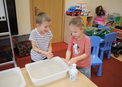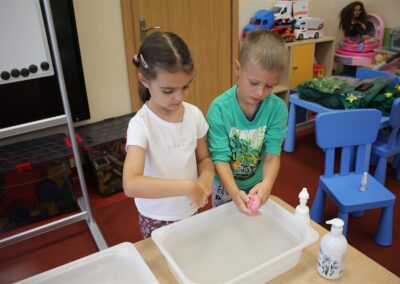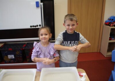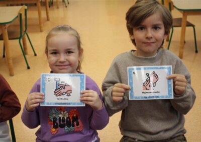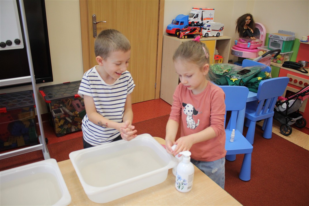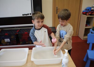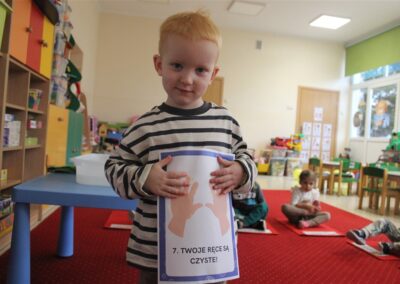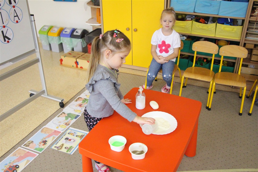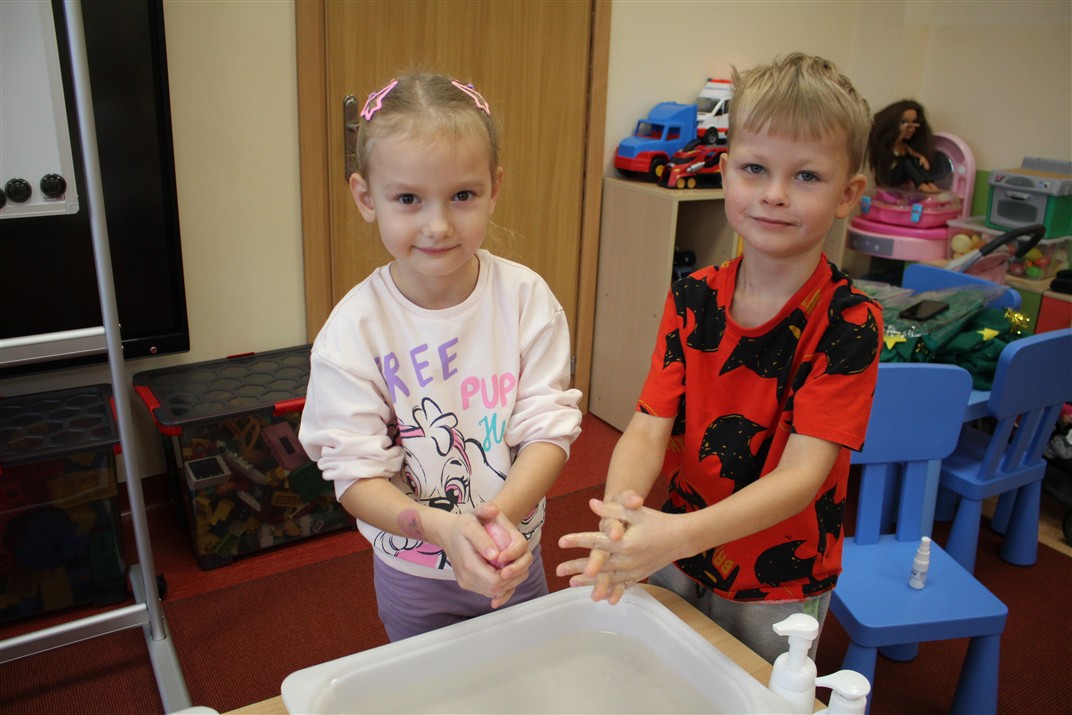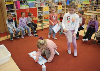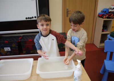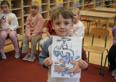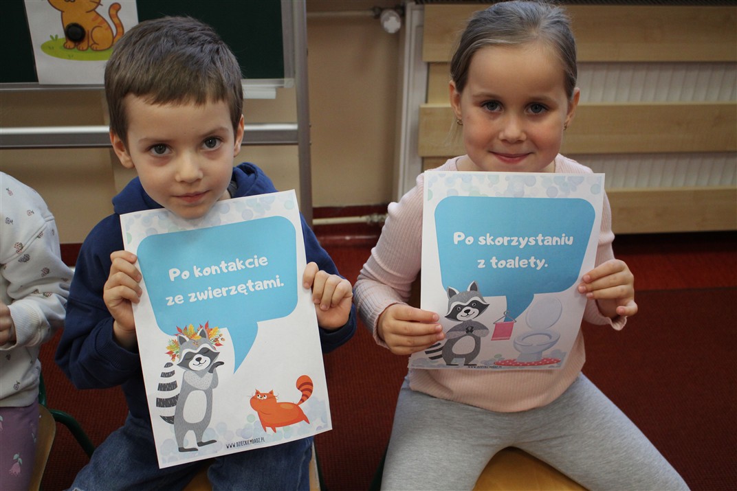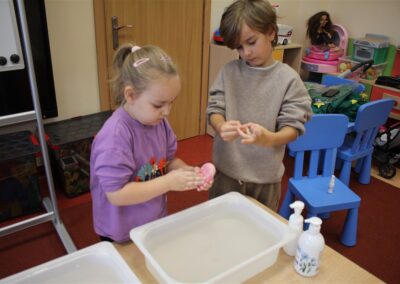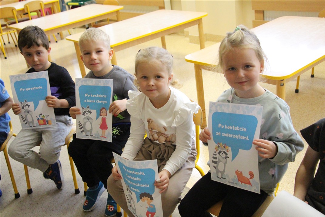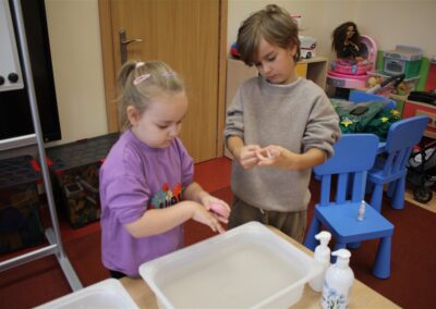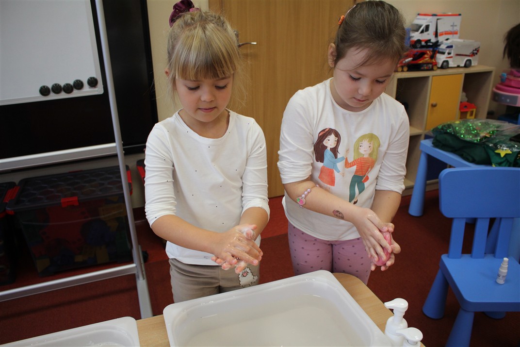 15 października przypada Światowy Dzień Mycia Rąk – święto ustanowione, by promować prawidłowe nawyki higieniczne, szczególnie wśród dzieci. W naszym przedszkolu również uczciliśmy ten dzień w wyjątkowy sposób, łącząc naukę z zabawą, aby uświadomić najmłodszym, jak ważne jest dbanie o czystość rąk. Dzieci podczas zajęć uczyły się prawidłowej techniki mycia rąk przy użyciu mydła i wody. Dowiedziały się również kiedy należy myć ręce. Eksperymentowały z „magicznym pieprzem” – prostym doświadczeniem, które pokazało, jak mydło „odstrasza” brud. Poznały różne rodzaje produktów przeznaczonych do mycia rąk oraz choroby wywołane nie myciem rąk. Dzieci nie tylko świetnie się bawiły, ale przede wszystkim wyniosły z tego dnia ważną lekcję – że mycie rąk to nie obowiązek, lecz codzienny nawyk, który może ochronić przed wieloma chorobami.