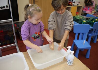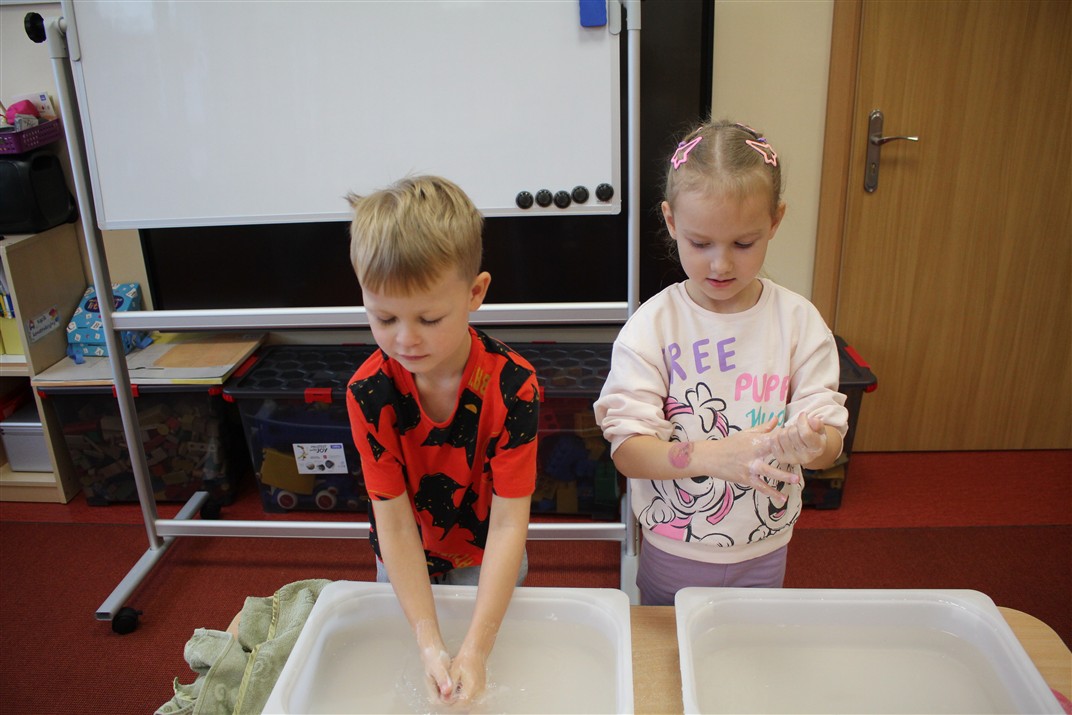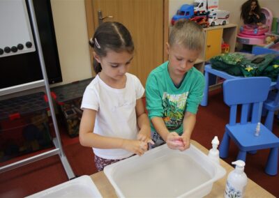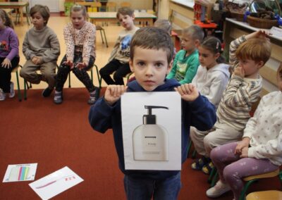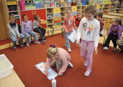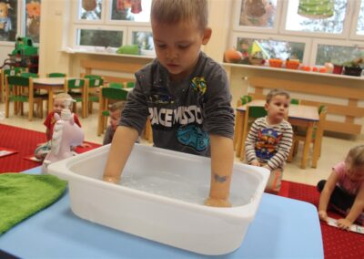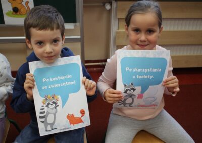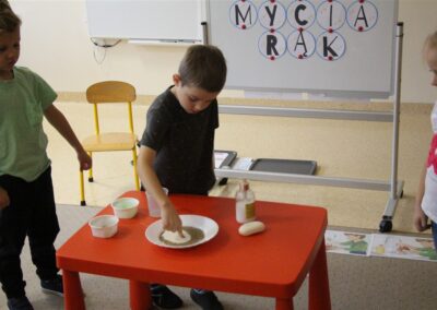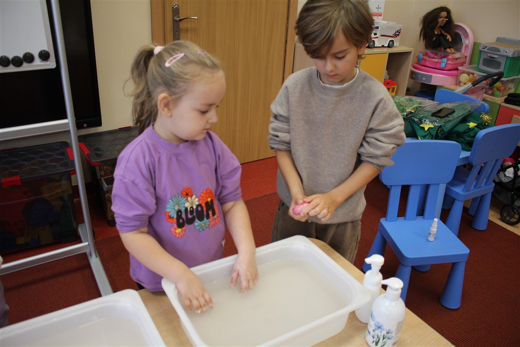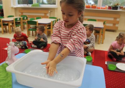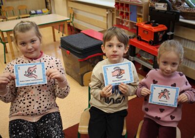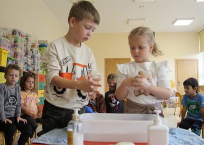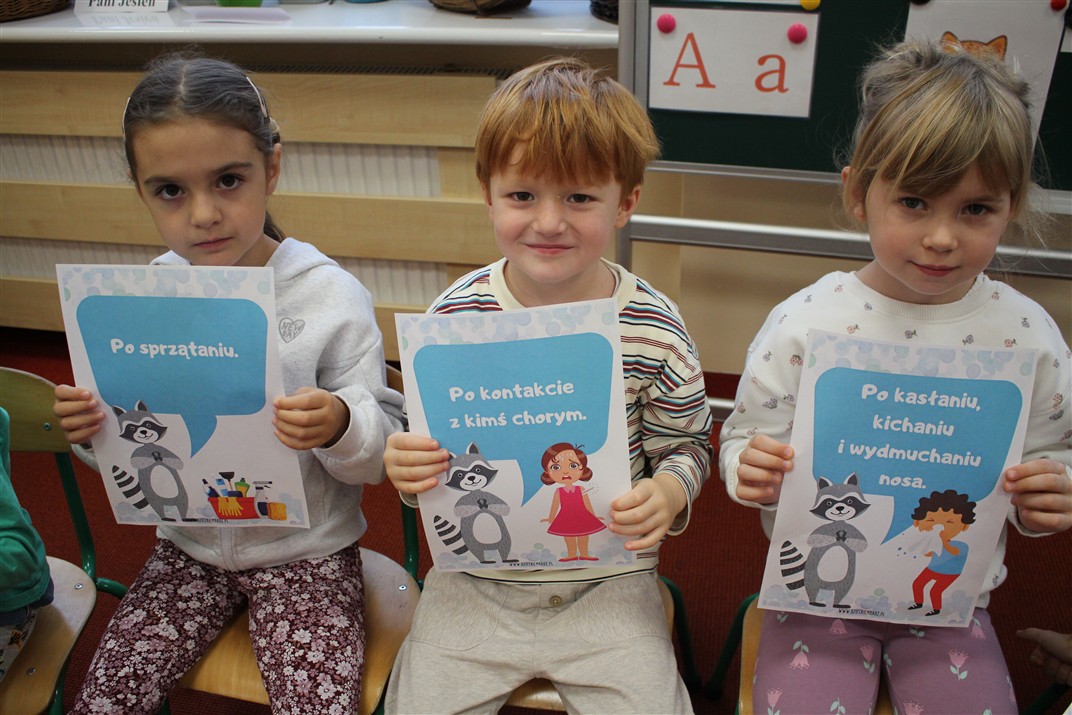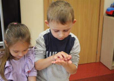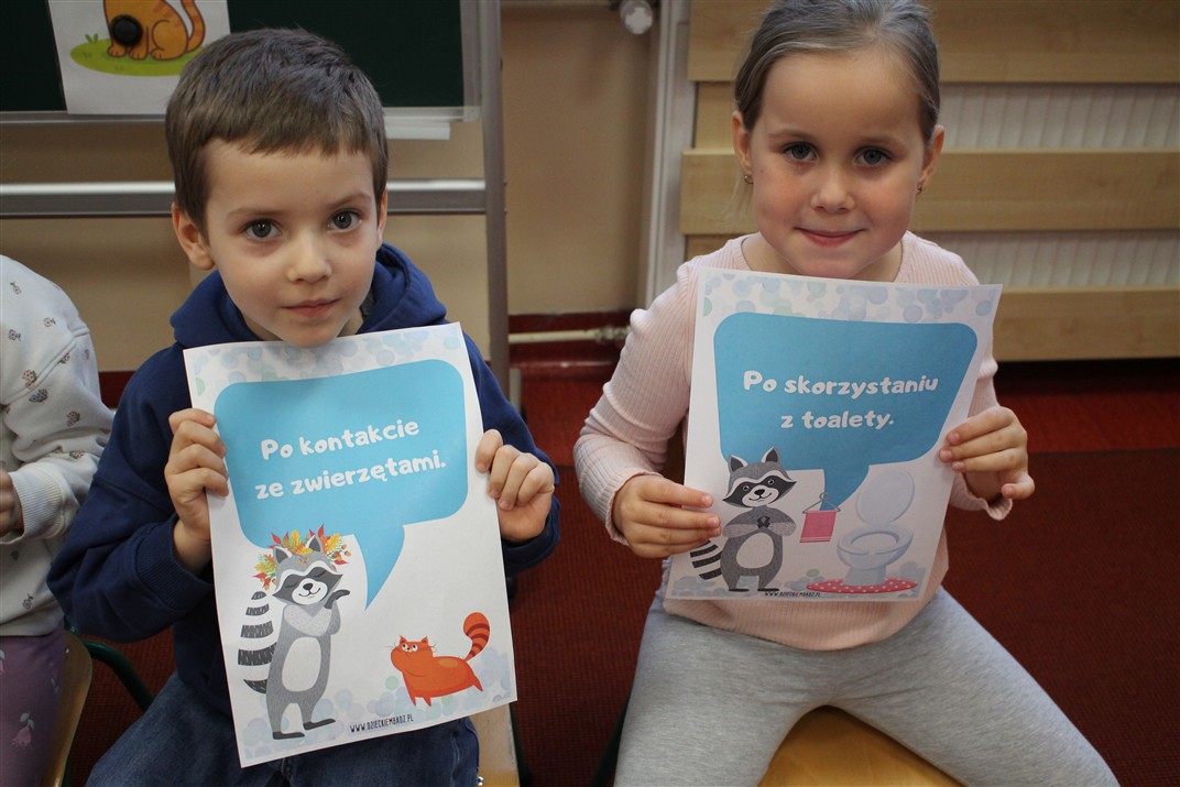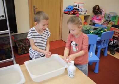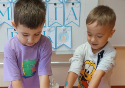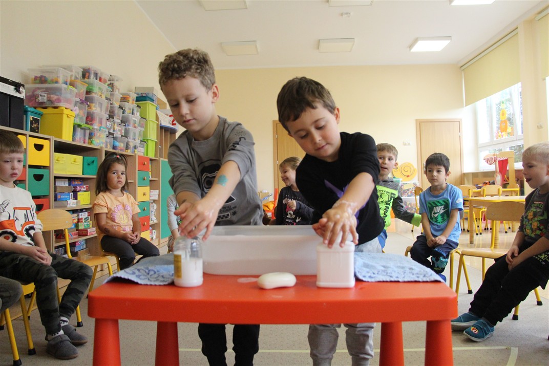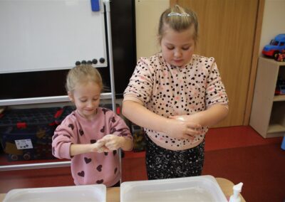 15 października przypada Światowy Dzień Mycia Rąk – święto ustanowione, by promować prawidłowe nawyki higieniczne, szczególnie wśród dzieci. W naszym przedszkolu również uczciliśmy ten dzień w wyjątkowy sposób, łącząc naukę z zabawą, aby uświadomić najmłodszym, jak ważne jest dbanie o czystość rąk. Dzieci podczas zajęć uczyły się prawidłowej techniki mycia rąk przy użyciu mydła i wody. Dowiedziały się również kiedy należy myć ręce. Eksperymentowały z „magicznym pieprzem” – prostym doświadczeniem, które pokazało, jak mydło „odstrasza” brud. Poznały różne rodzaje produktów przeznaczonych do mycia rąk oraz choroby wywołane nie myciem rąk. Dzieci nie tylko świetnie się bawiły, ale przede wszystkim wyniosły z tego dnia ważną lekcję – że mycie rąk to nie obowiązek, lecz codzienny nawyk, który może ochronić przed wieloma chorobami.