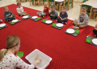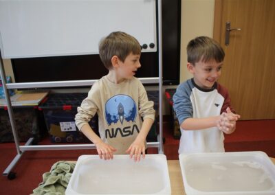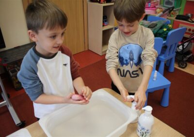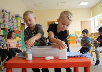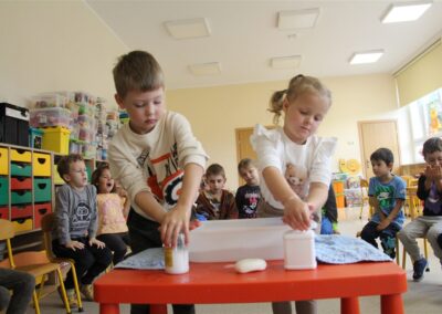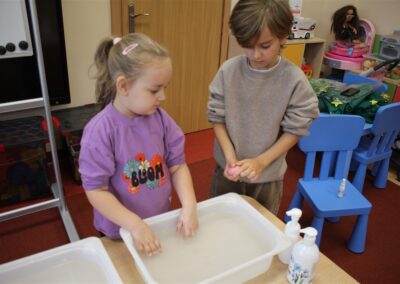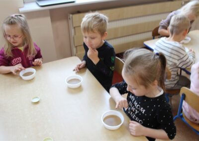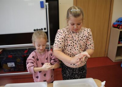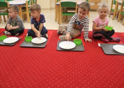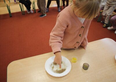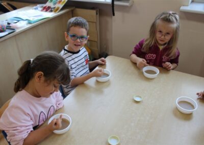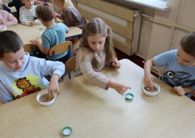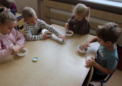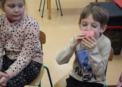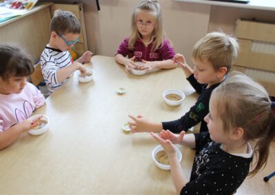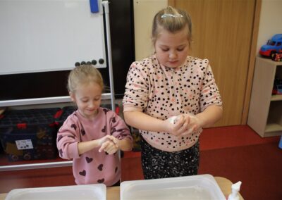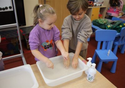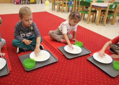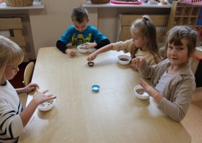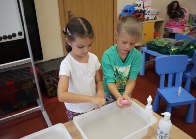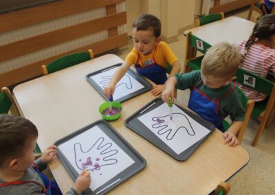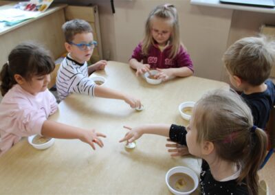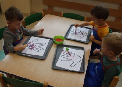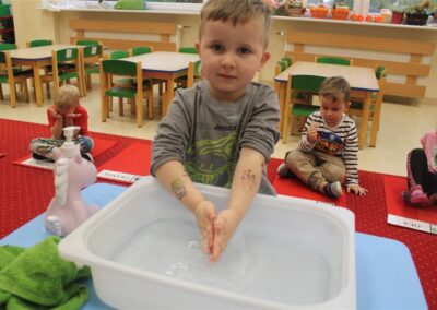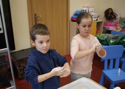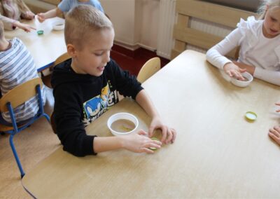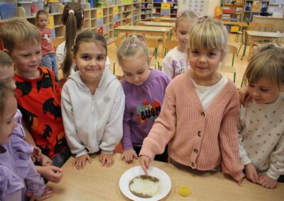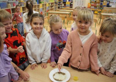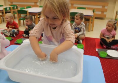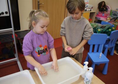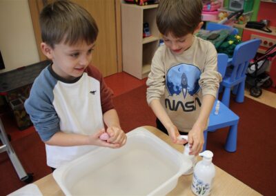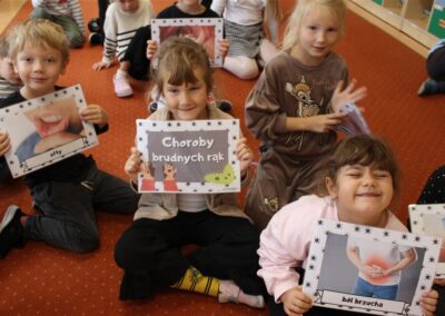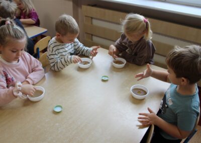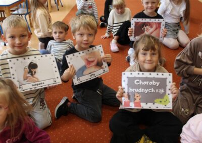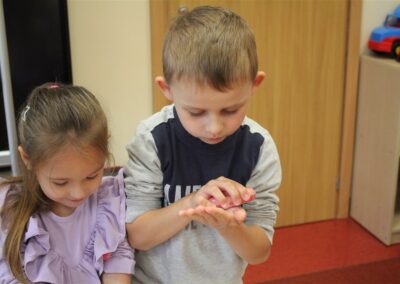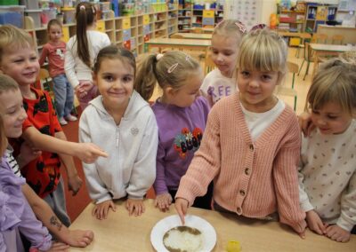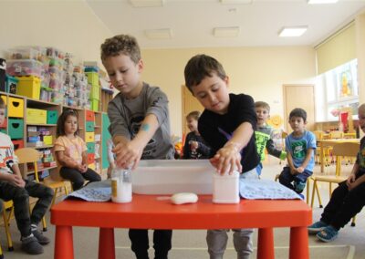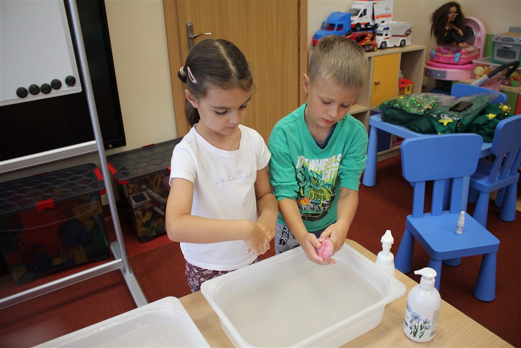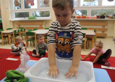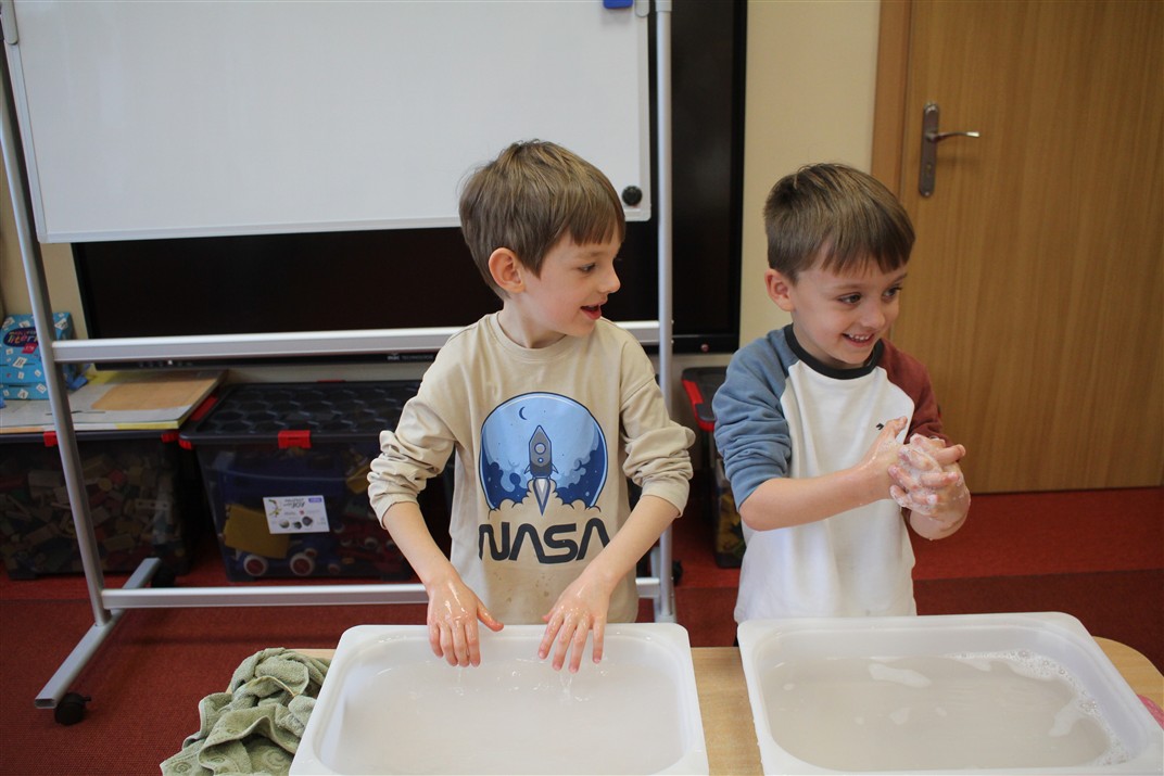 15 października przypada Światowy Dzień Mycia Rąk – święto ustanowione, by promować prawidłowe nawyki higieniczne, szczególnie wśród dzieci. W naszym przedszkolu również uczciliśmy ten dzień w wyjątkowy sposób, łącząc naukę z zabawą, aby uświadomić najmłodszym, jak ważne jest dbanie o czystość rąk. Dzieci podczas zajęć uczyły się prawidłowej techniki mycia rąk przy użyciu mydła i wody. Dowiedziały się również kiedy należy myć ręce. Eksperymentowały z „magicznym pieprzem” – prostym doświadczeniem, które pokazało, jak mydło „odstrasza” brud. Poznały różne rodzaje produktów przeznaczonych do mycia rąk oraz choroby wywołane nie myciem rąk. Dzieci nie tylko świetnie się bawiły, ale przede wszystkim wyniosły z tego dnia ważną lekcję – że mycie rąk to nie obowiązek, lecz codzienny nawyk, który może ochronić przed wieloma chorobami.
