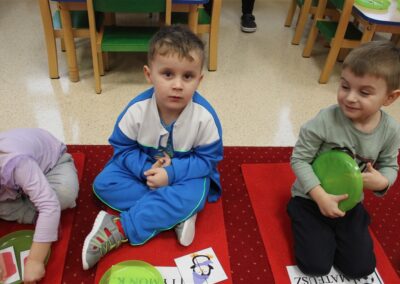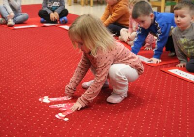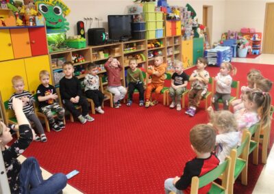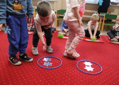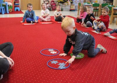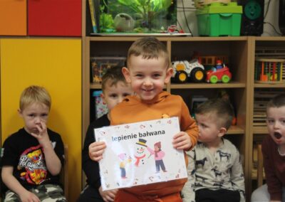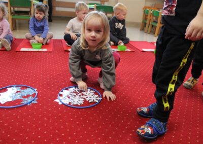 – poznawały zasady bezpiecznej zabawy w zimie (nie wchodzimy na zamarznięte jeziora, nie oddalamy się od dorosłych)