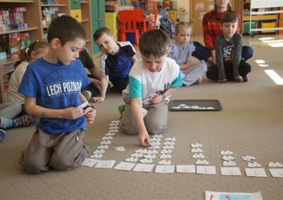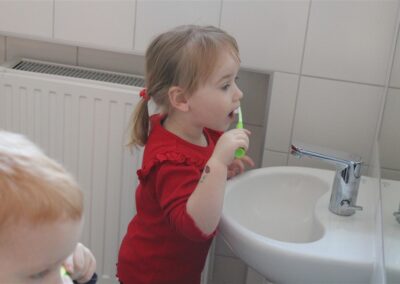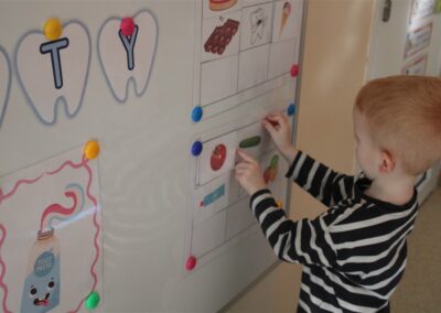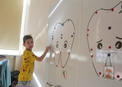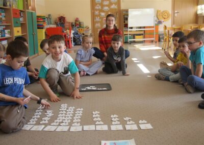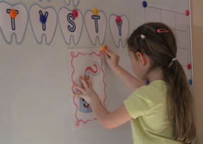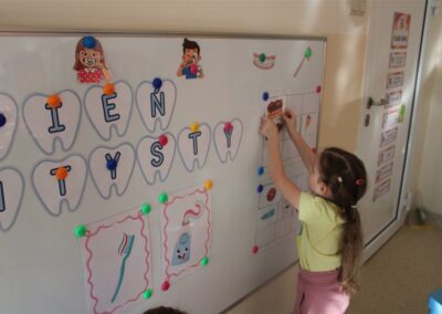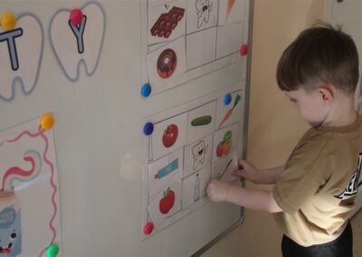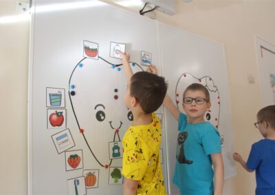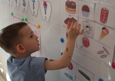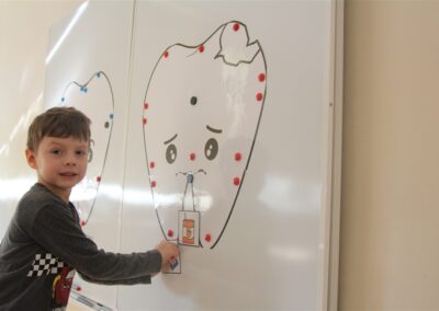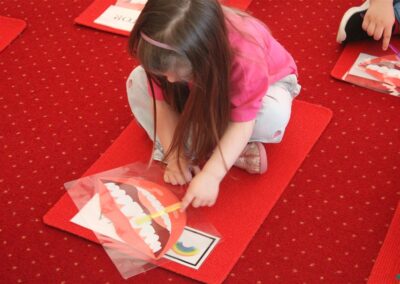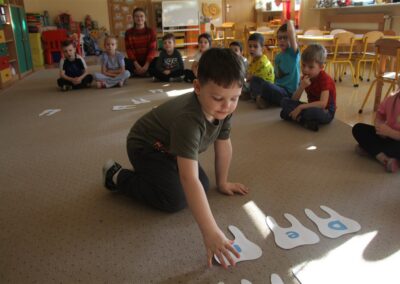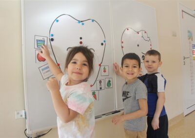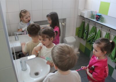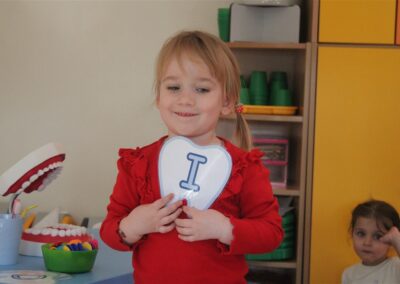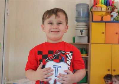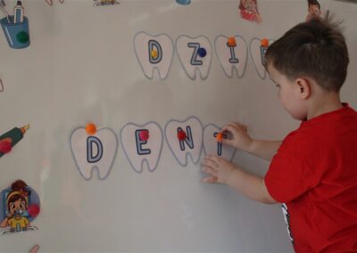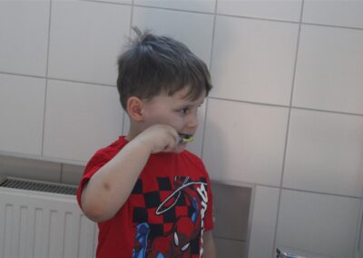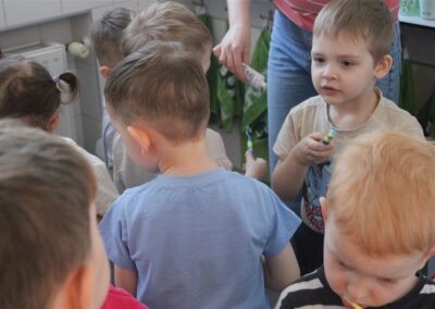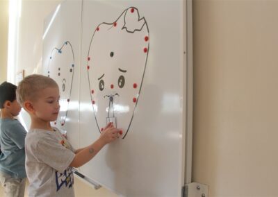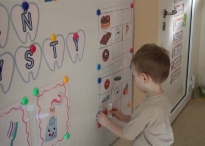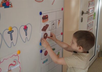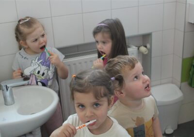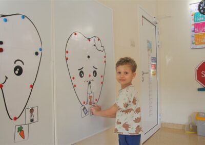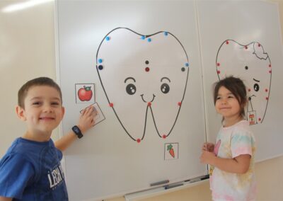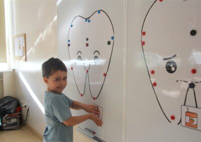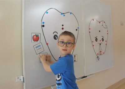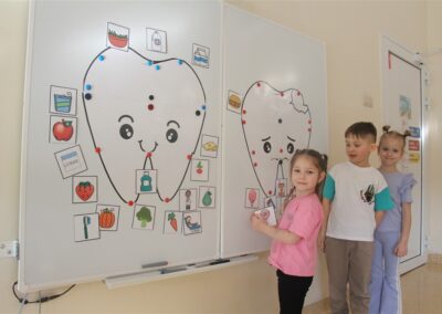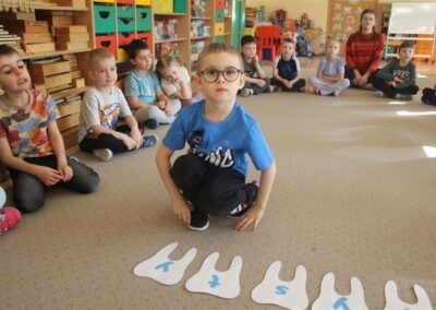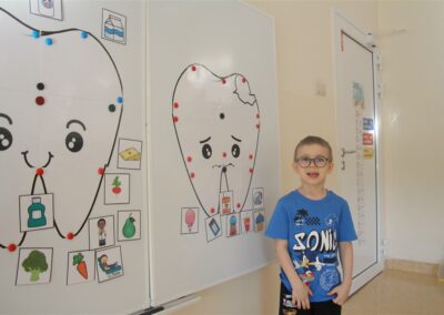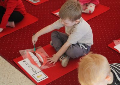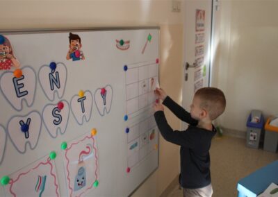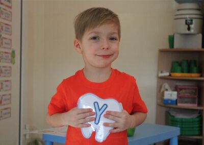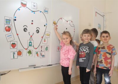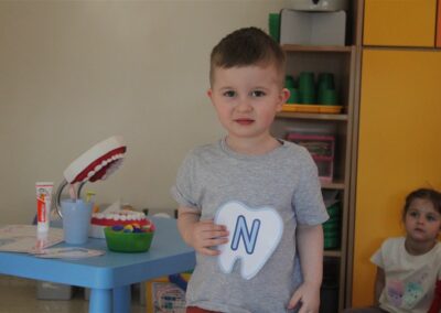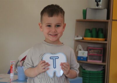 W naszej placówce obchodziliśmy wyjątkowe święto – Dzień Dentysty. Z tej okazji dzieci z grup Żabek, Pszczółek I Motyli wzięły udział w ciekawych zajęciach, podczas których dowiedziały się, jak ważna jest troska o zdrowe zęby. Podczas spotkania przedszkolaki poznały zawód dentysty oraz dowiedziały się, dlaczego regularne mycie zębów jest tak ważne. Dzieci oglądały ilustracje przedstawiające budowę zęba oraz narzędzia używane w gabinecie stomatologicznym. Rozmawialiśmy również o tym, jakie produkty pomagają dbać o zdrowy uśmiech, a które mogą szkodzić naszym zębom. Nie zabrakło także części praktycznej. Dzieci ćwiczyły prawidłowe szczotkowanie zębów, wykorzystując model szczęki i dużą szczoteczkę. Przedszkolaki chętnie brały udział w zabawach edukacyjnych, rozwiązywały zagadki oraz układały obrazki związane z higieną jamy ustnej. Na zakończenie zajęć dzieci wykonały prace plastyczne przedstawiające piękny, zdrowy uśmiech. Była to świetna okazja do utrwalenia zdobytej wiedzy oraz rozwijania kreatywności.