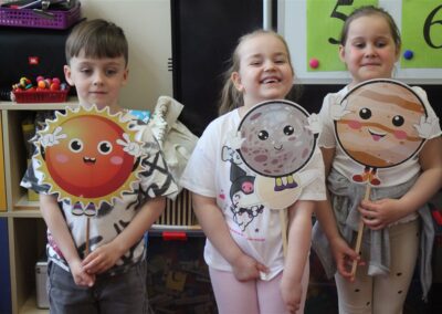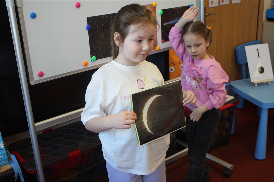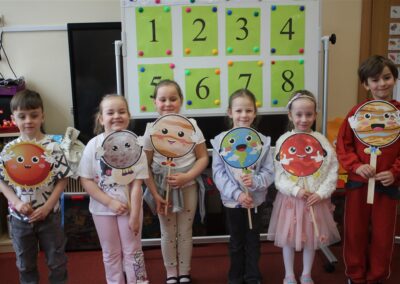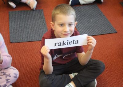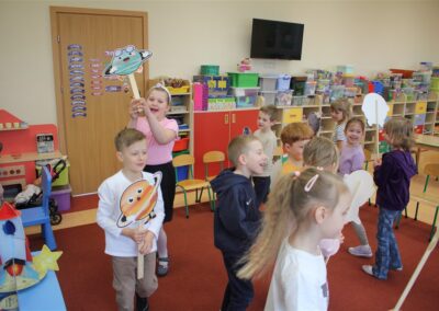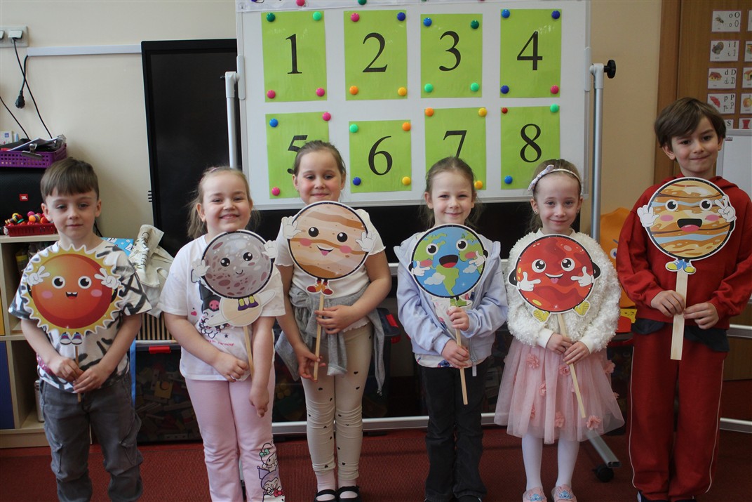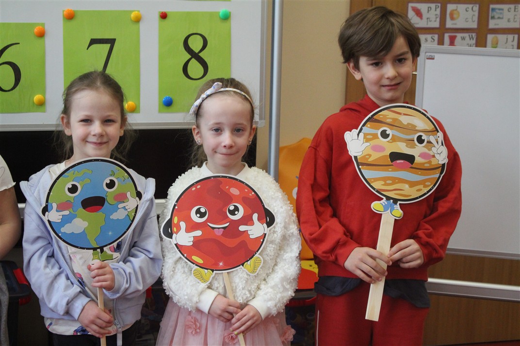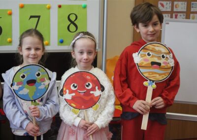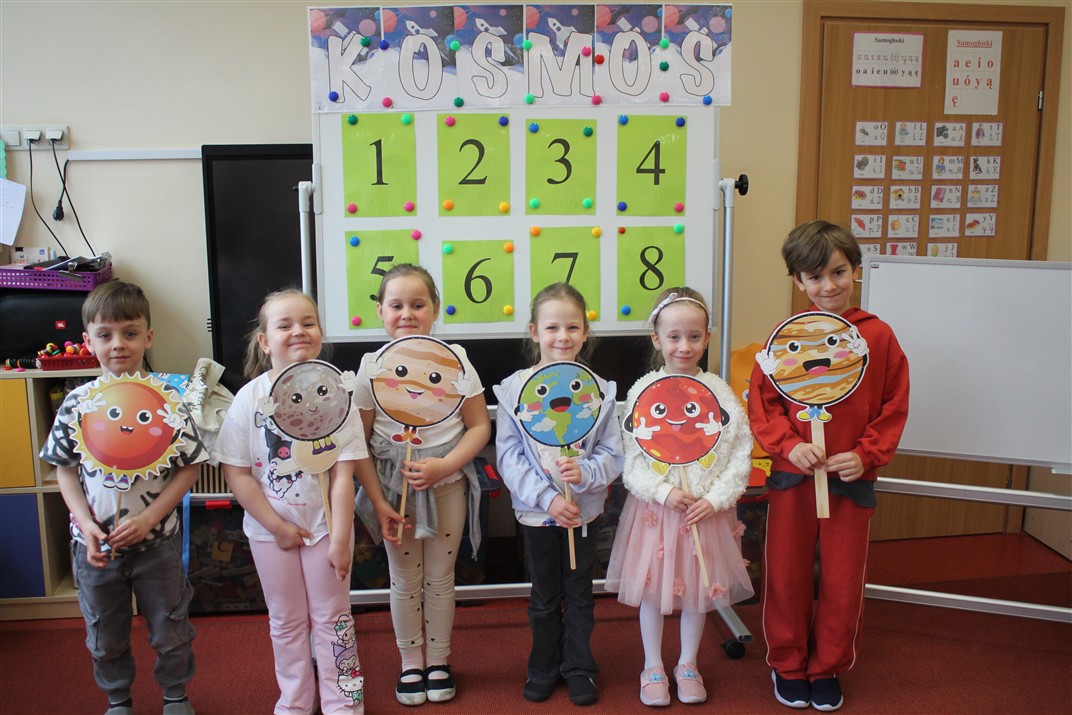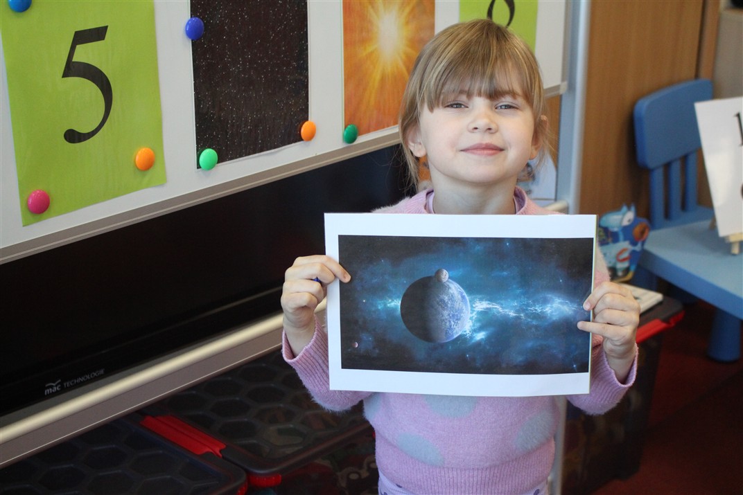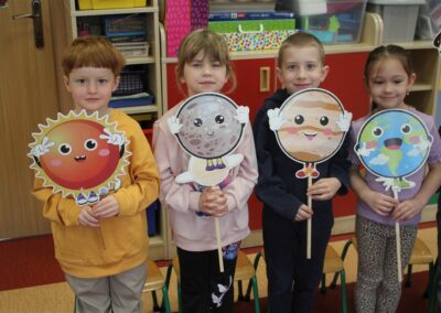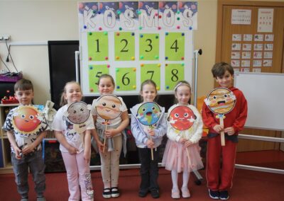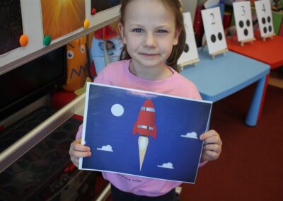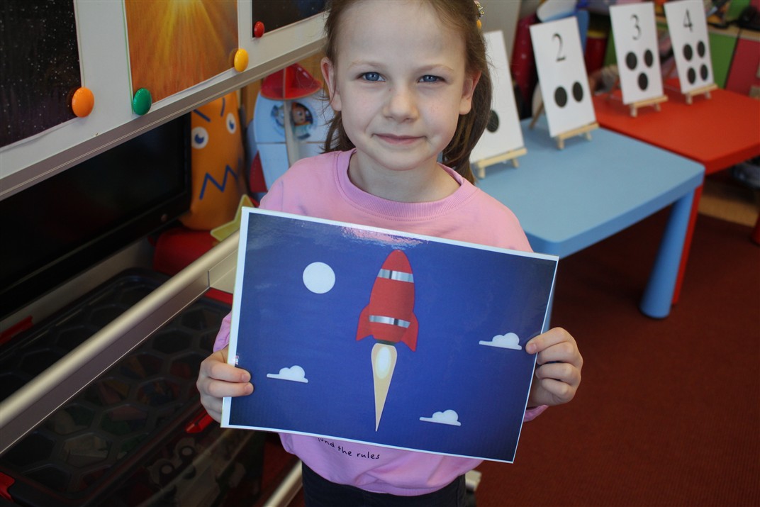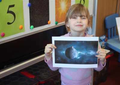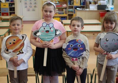 • poznały pojęcia: kosmos, planeta, galaktyka, statek kosmiczny, Księżyc