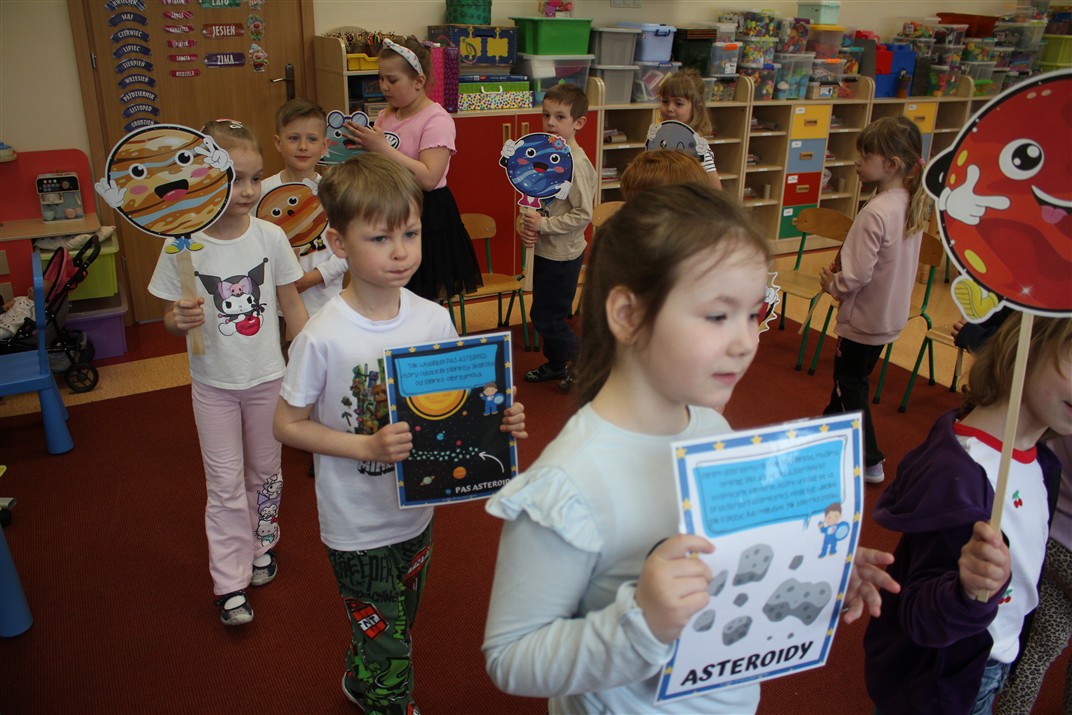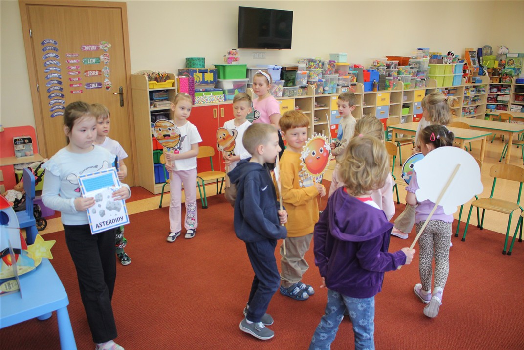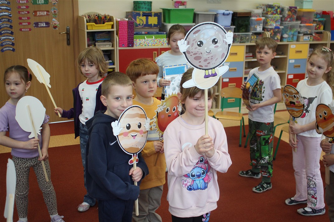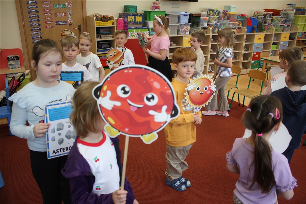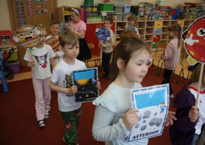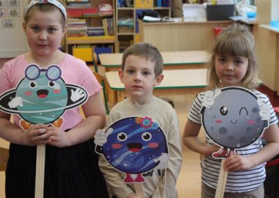 Od 13 – 17 kwietnia przedszkolaki z grupy Myszek realizowały temat pt. „Tajemnica kosmosu” podczas którego: