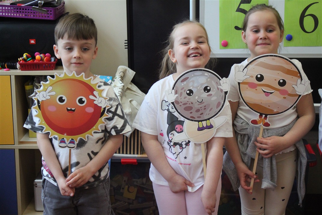• poznały podstawowe cechy planet (np. gorąca, zimna, duża, mała)