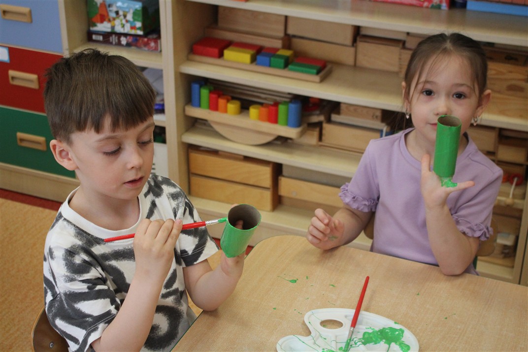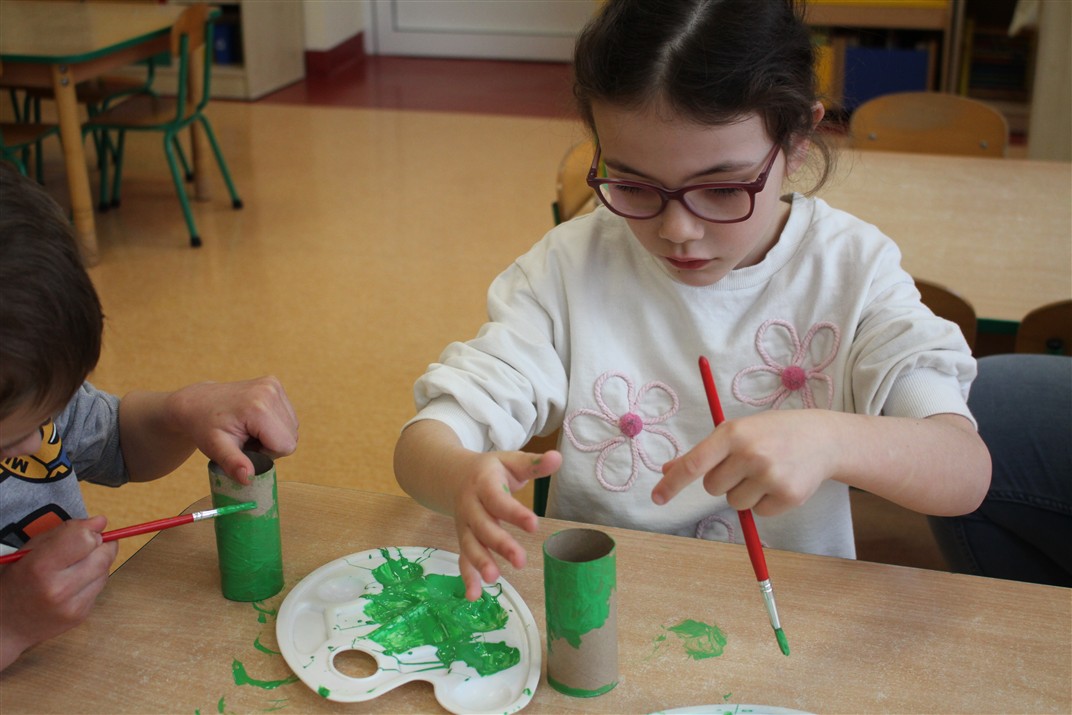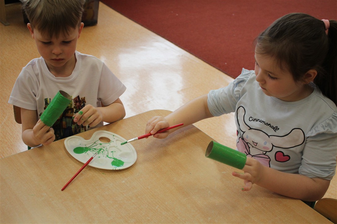 • malowały rolkę po papierze zieloną farbą