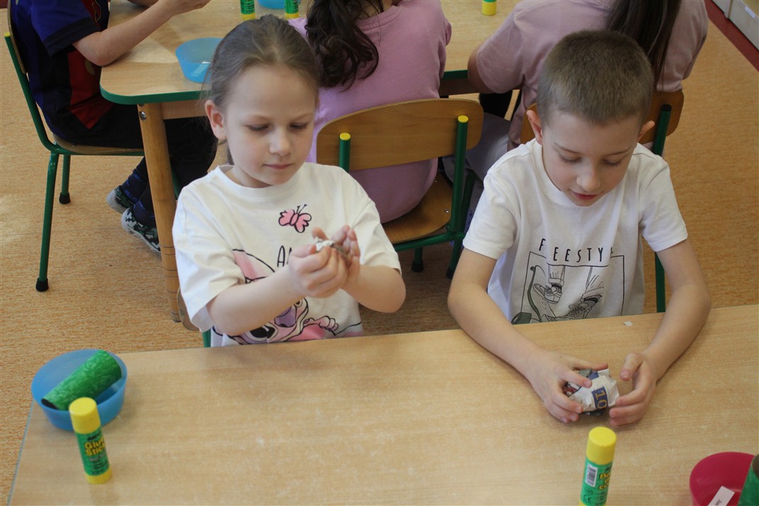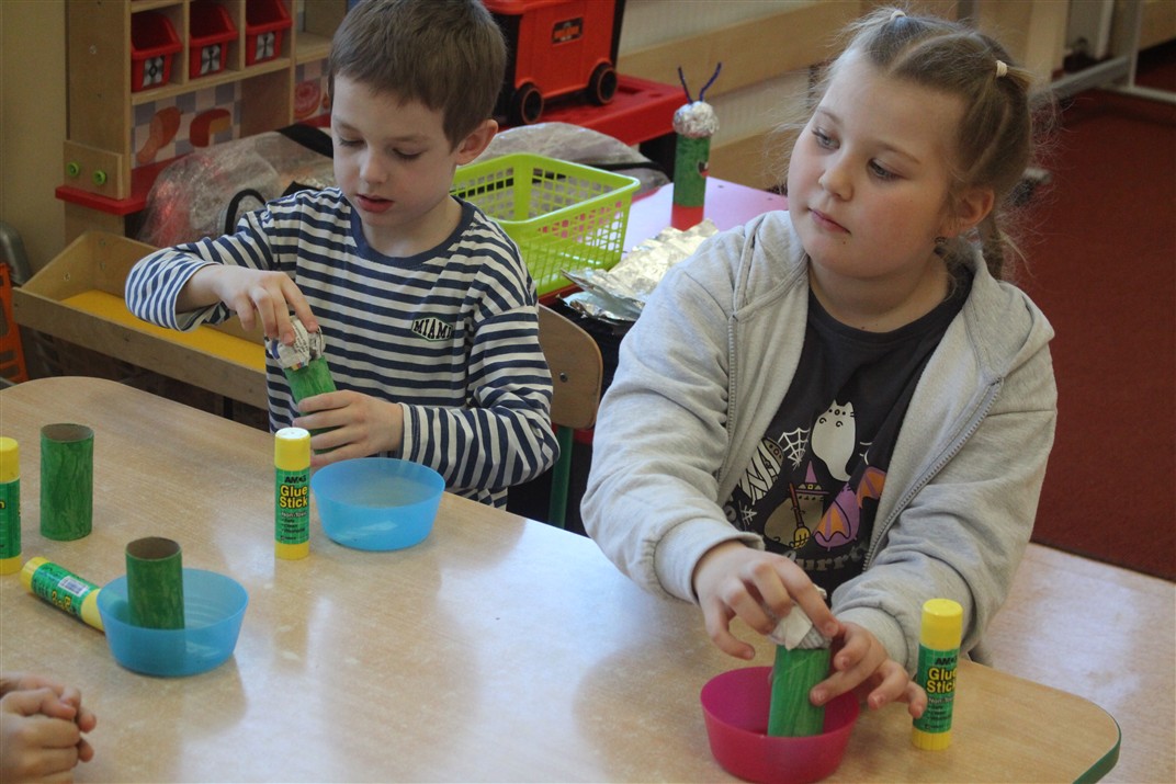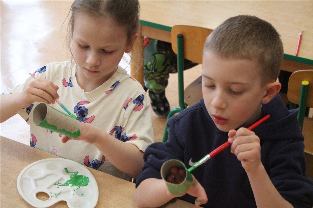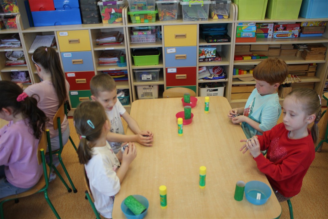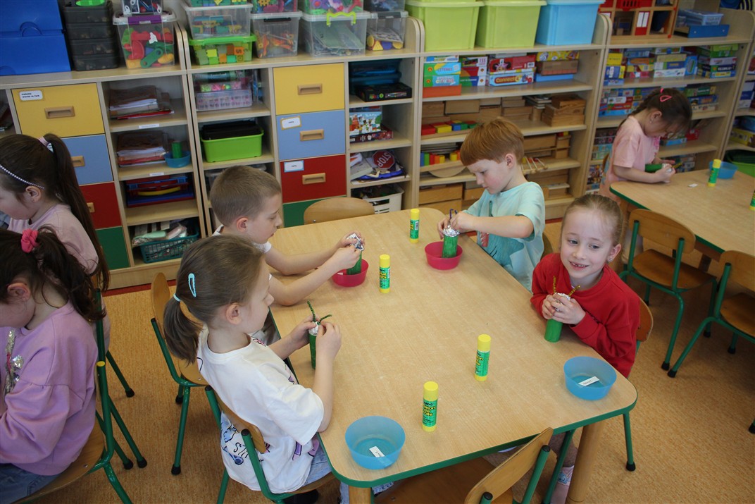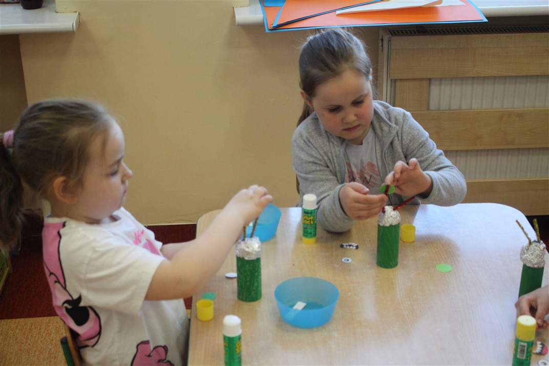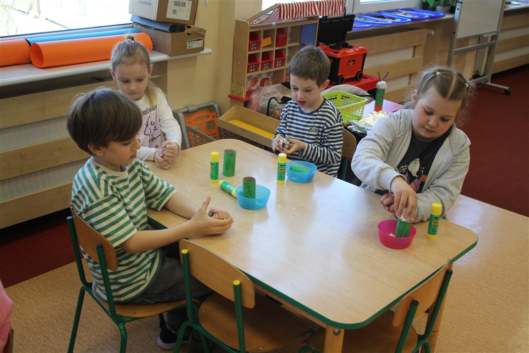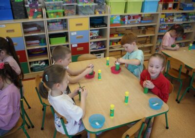• wykonywały pracę plastyczną według instrukcji nauczyciela