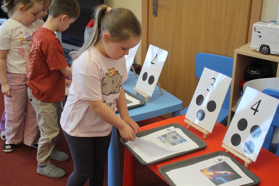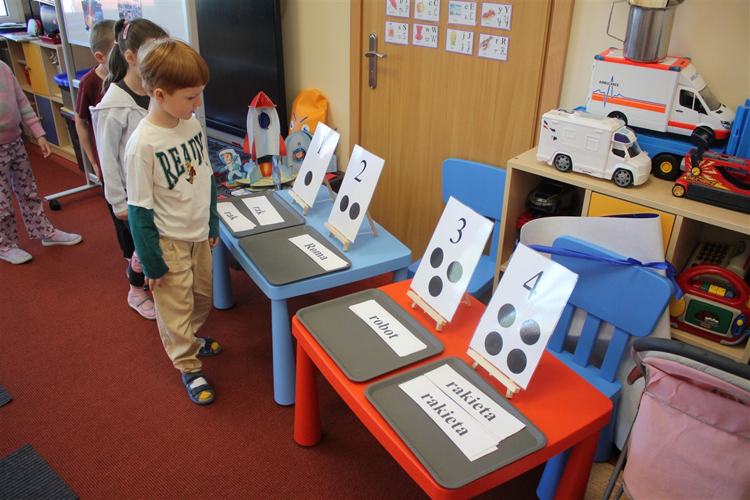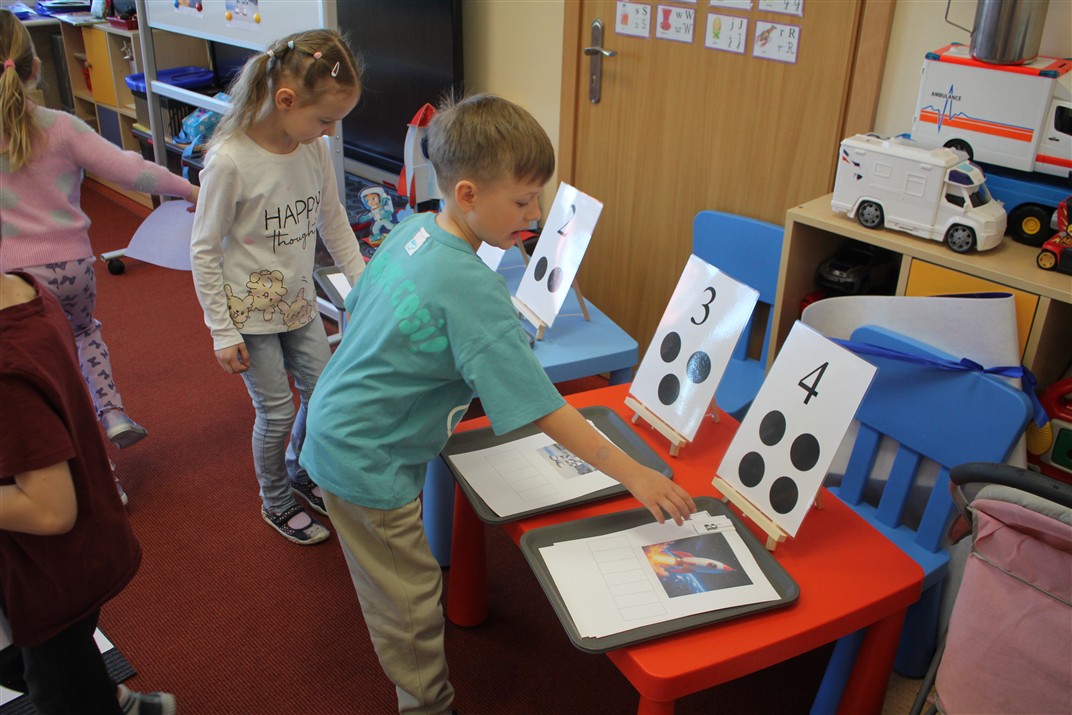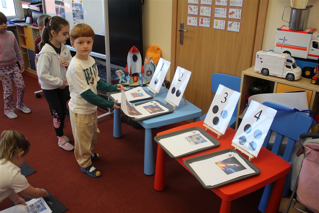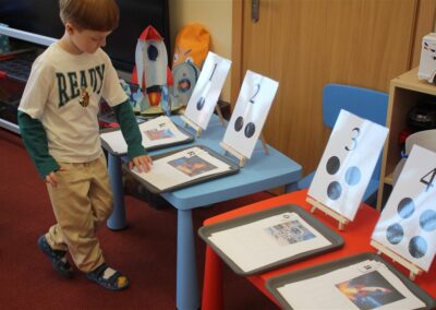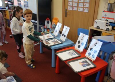 • układały zbiory (np. rakiet, gwiazd, planet) i porównywały je