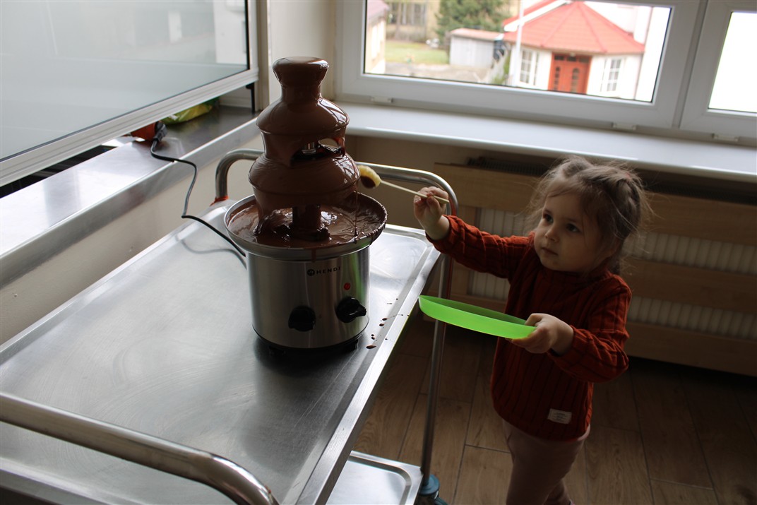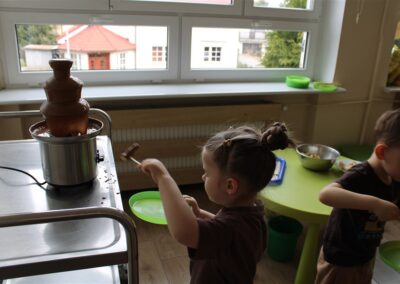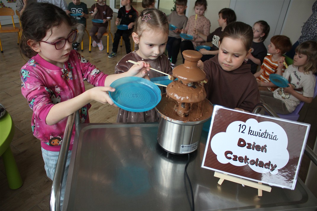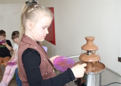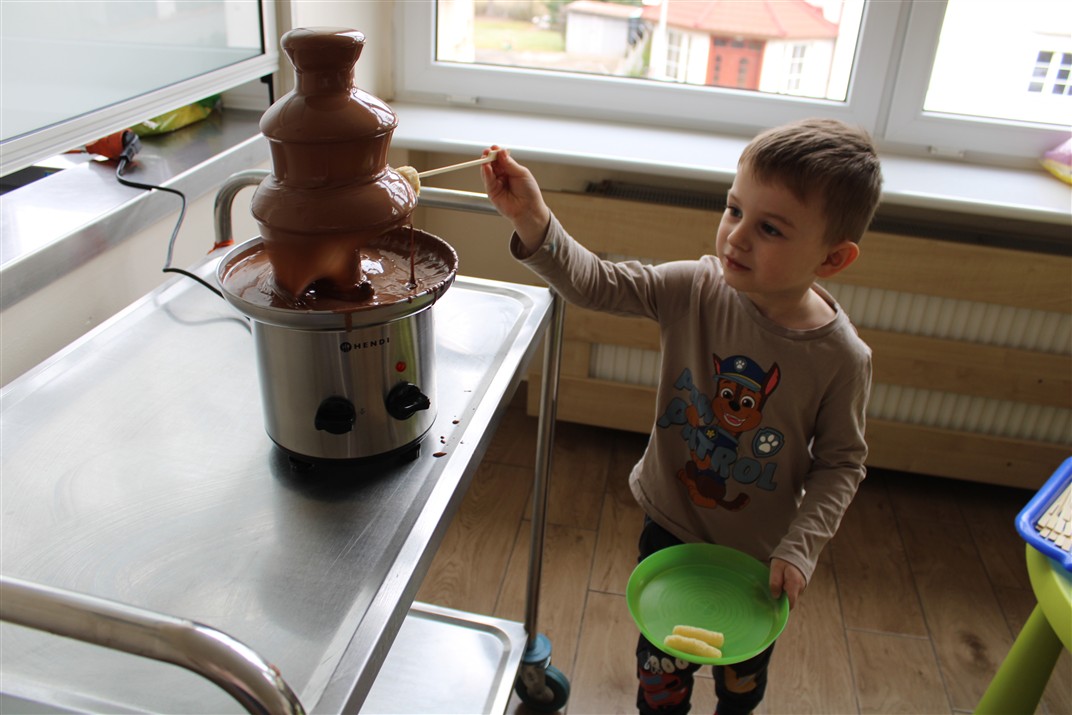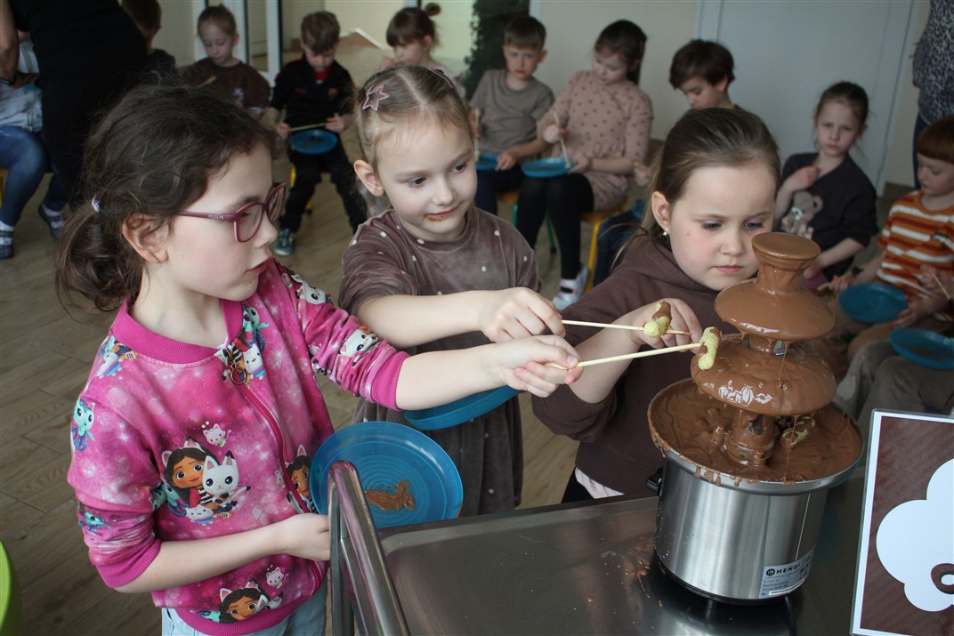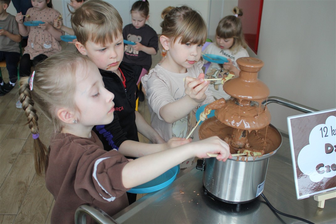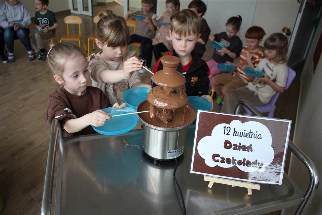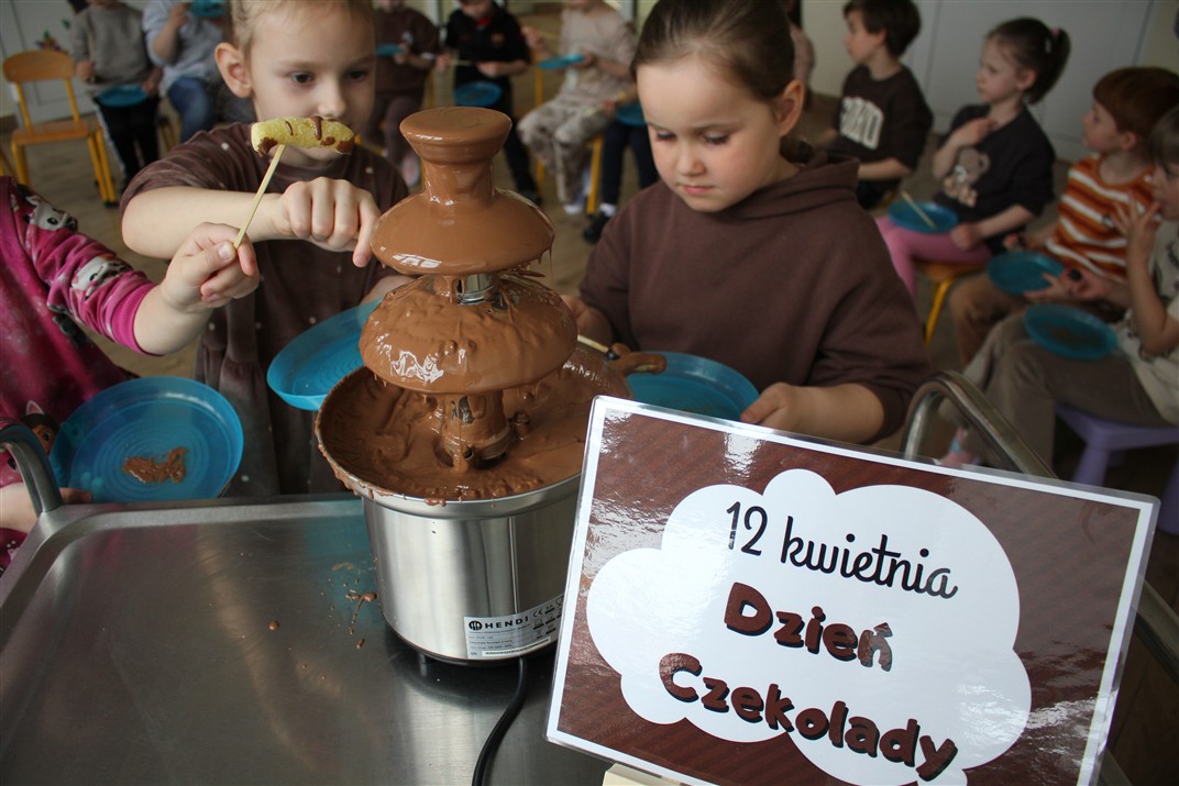 13 kwietnia w naszym przedszkolu obchodziliśmy wyjątkowy i bardzo słodki Dzień Czekolady. Tego dnia dzieci poznały skąd pochodzi czekolada i jak powstaje – od ziaren kakaowca aż po gotowy produkt. Przedszkolaki miały okazję poznać różne rodzaje czekolady – mleczną, białą i z dodatkami. Najbardziej jednak wyczekiwane było spróbowanie tych słodkości. Na dzieci czekała przygotowana fontanna czekolady z owocami. To był wyjątkowy dzień pełen radości oraz oczywiście królowej tego dnia – czekolady!
