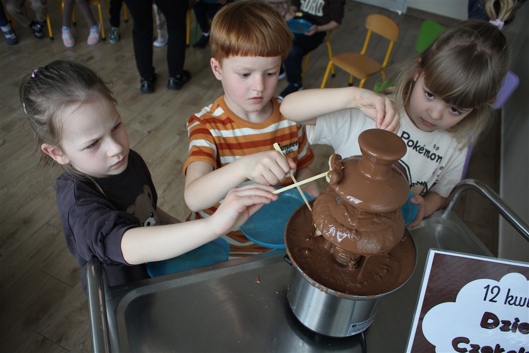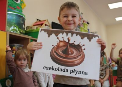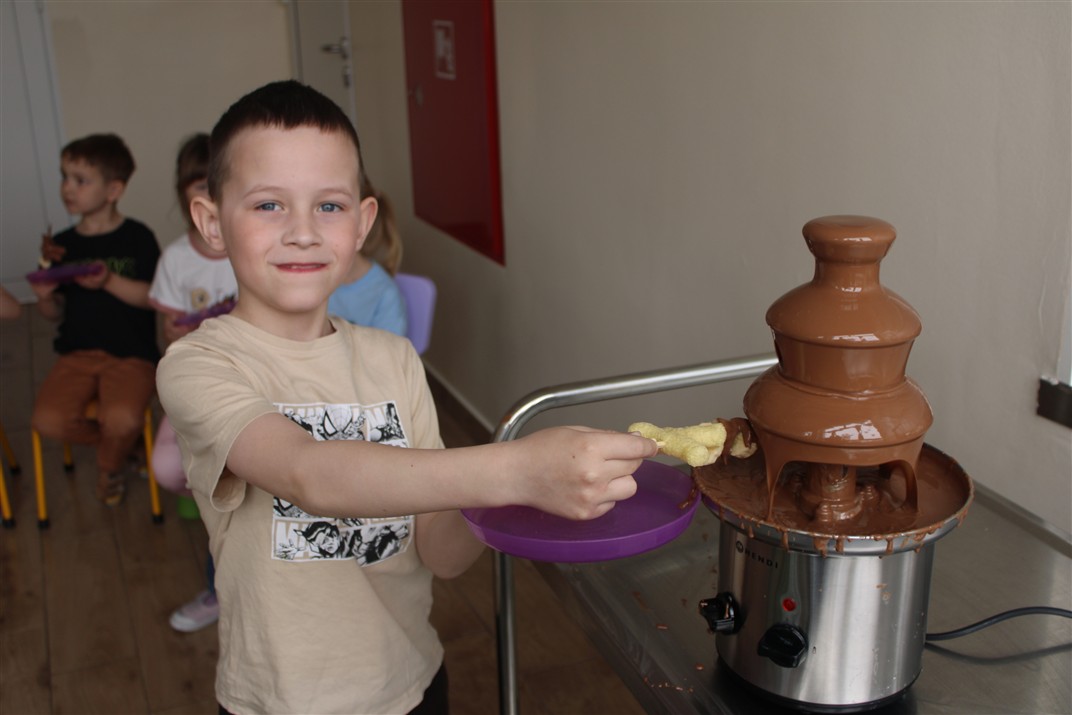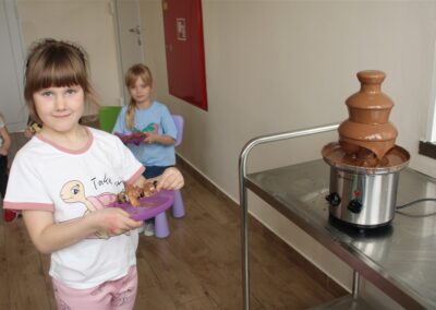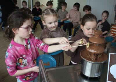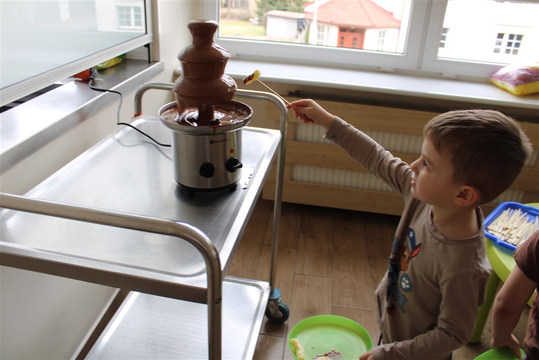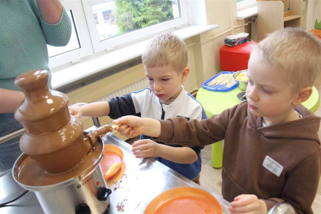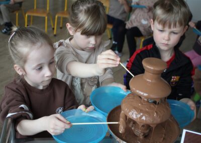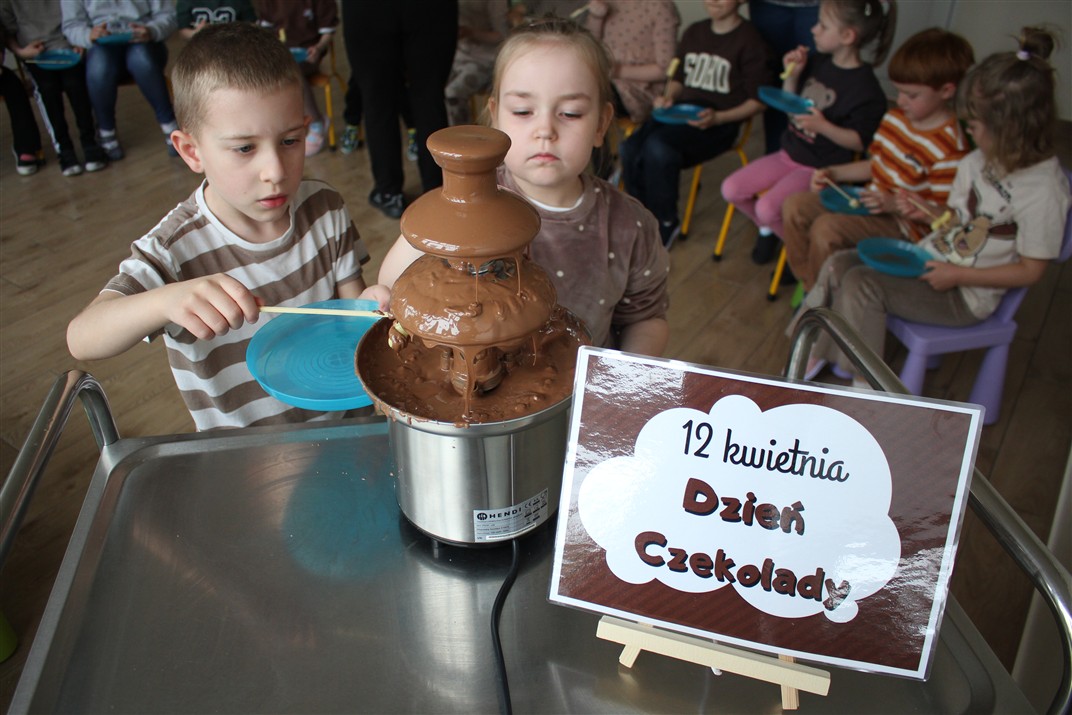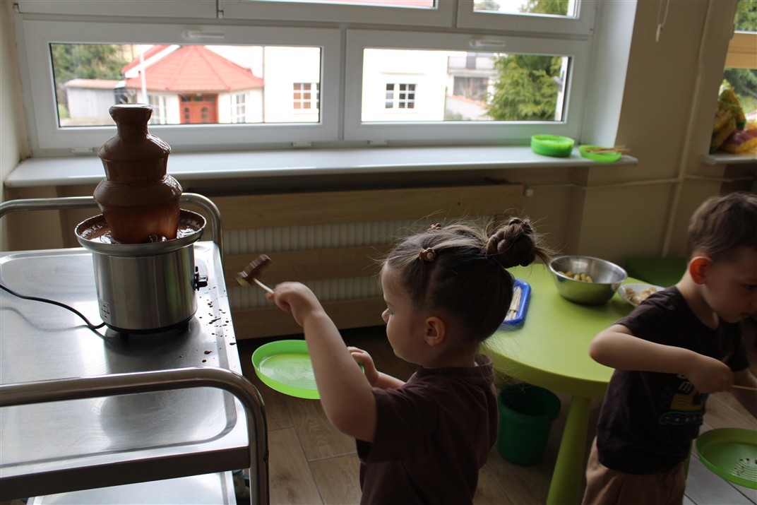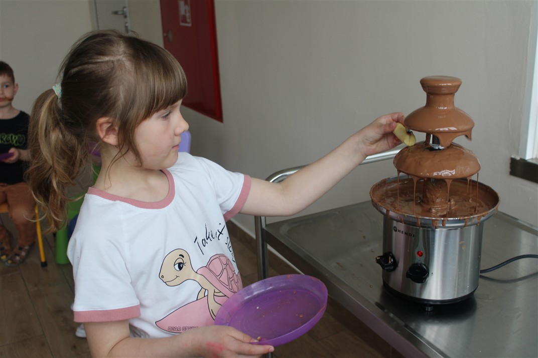 13 kwietnia w naszym przedszkolu obchodziliśmy wyjątkowy i bardzo słodki Dzień Czekolady. Tego dnia dzieci poznały skąd pochodzi czekolada i jak powstaje – od ziaren kakaowca aż po gotowy produkt. Przedszkolaki miały okazję poznać różne rodzaje czekolady – mleczną, białą i z dodatkami. Najbardziej jednak wyczekiwane było spróbowanie tych słodkości. Na dzieci czekała przygotowana fontanna czekolady z owocami. To był wyjątkowy dzień pełen radości oraz oczywiście królowej tego dnia – czekolady!