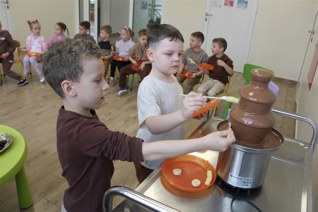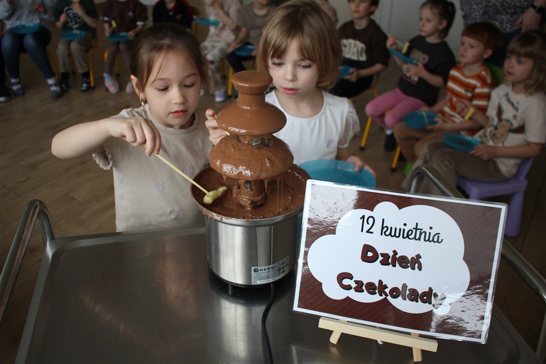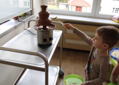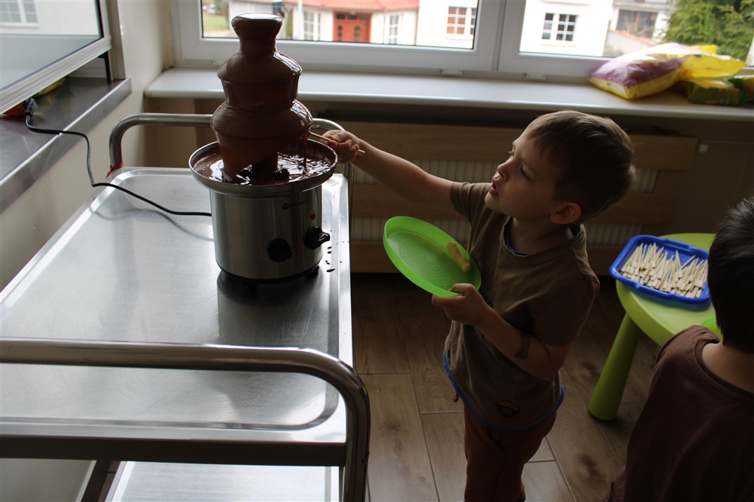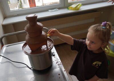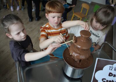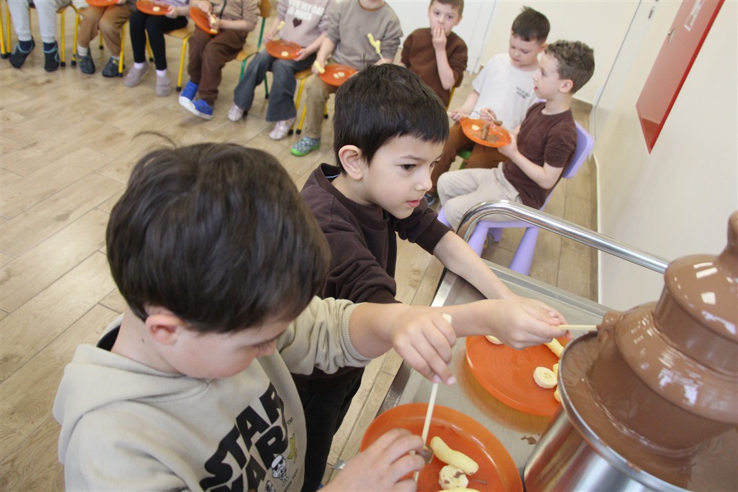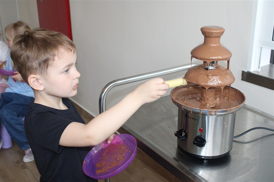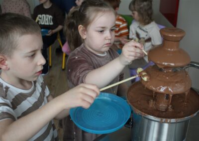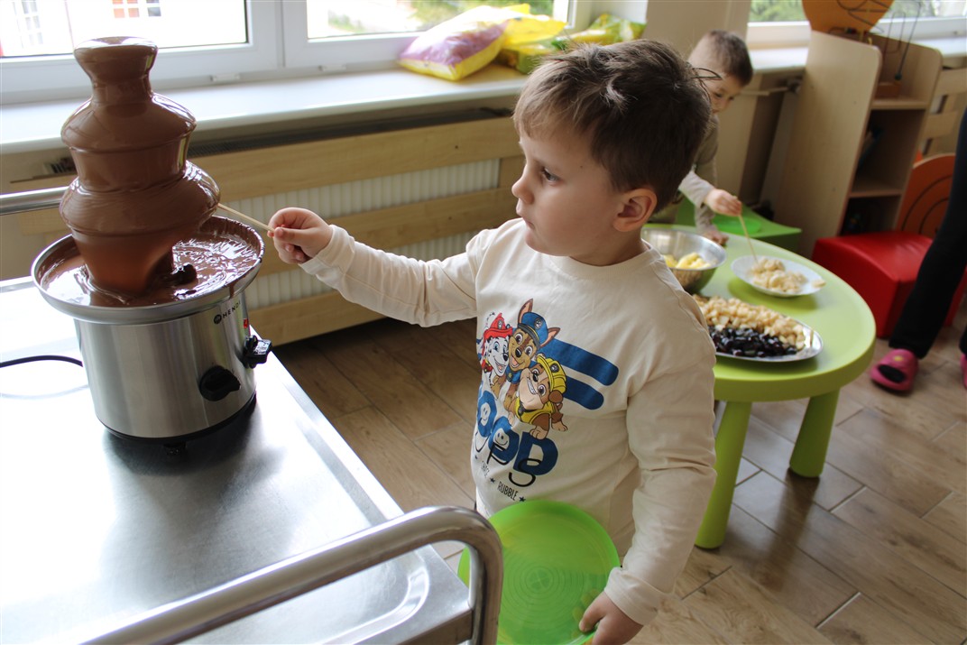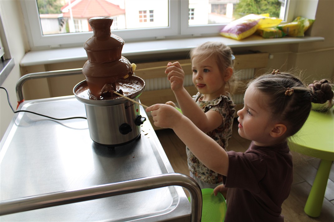 13 kwietnia w naszym przedszkolu obchodziliśmy wyjątkowy i bardzo słodki Dzień Czekolady. Tego dnia dzieci poznały skąd pochodzi czekolada i jak powstaje – od ziaren kakaowca aż po gotowy produkt. Przedszkolaki miały okazję poznać różne rodzaje czekolady – mleczną, białą i z dodatkami. Najbardziej jednak wyczekiwane było spróbowanie tych słodkości. Na dzieci czekała przygotowana fontanna czekolady z owocami. To był wyjątkowy dzień pełen radości oraz oczywiście królowej tego dnia – czekolady!