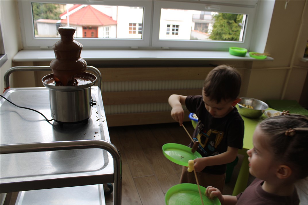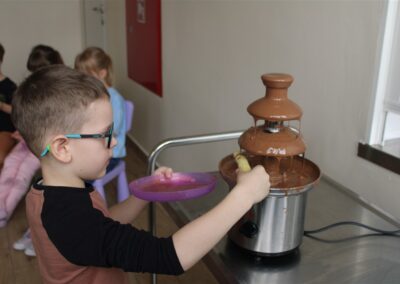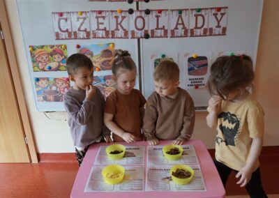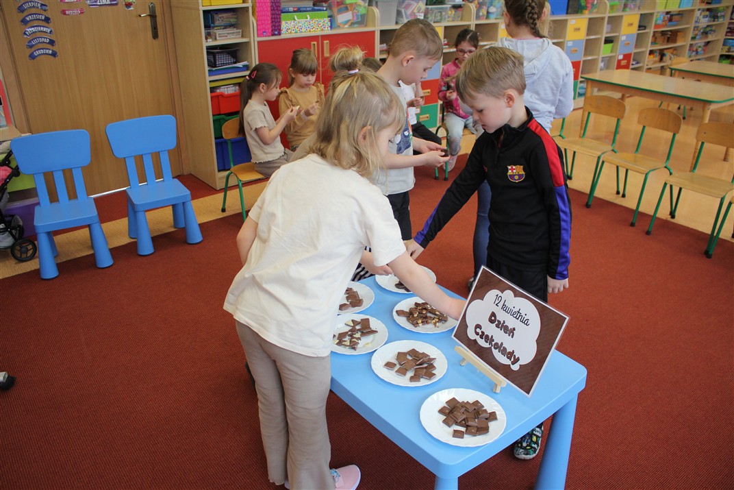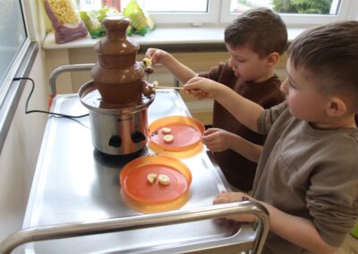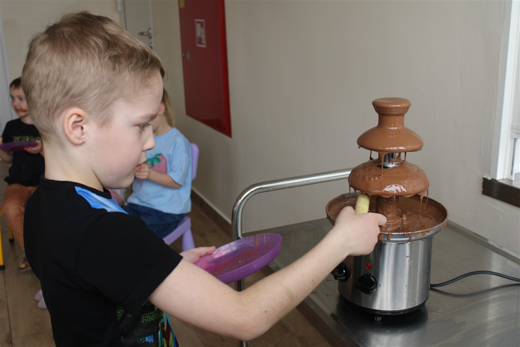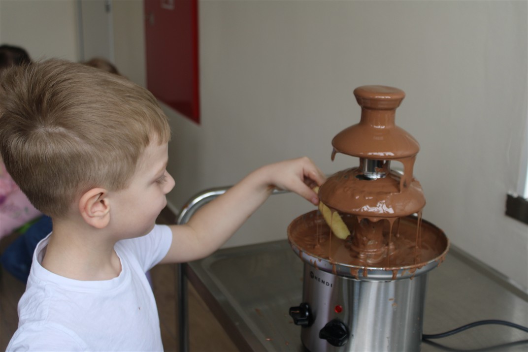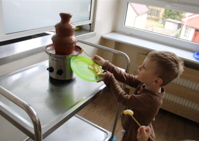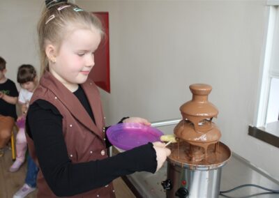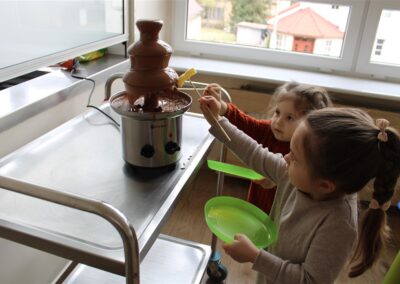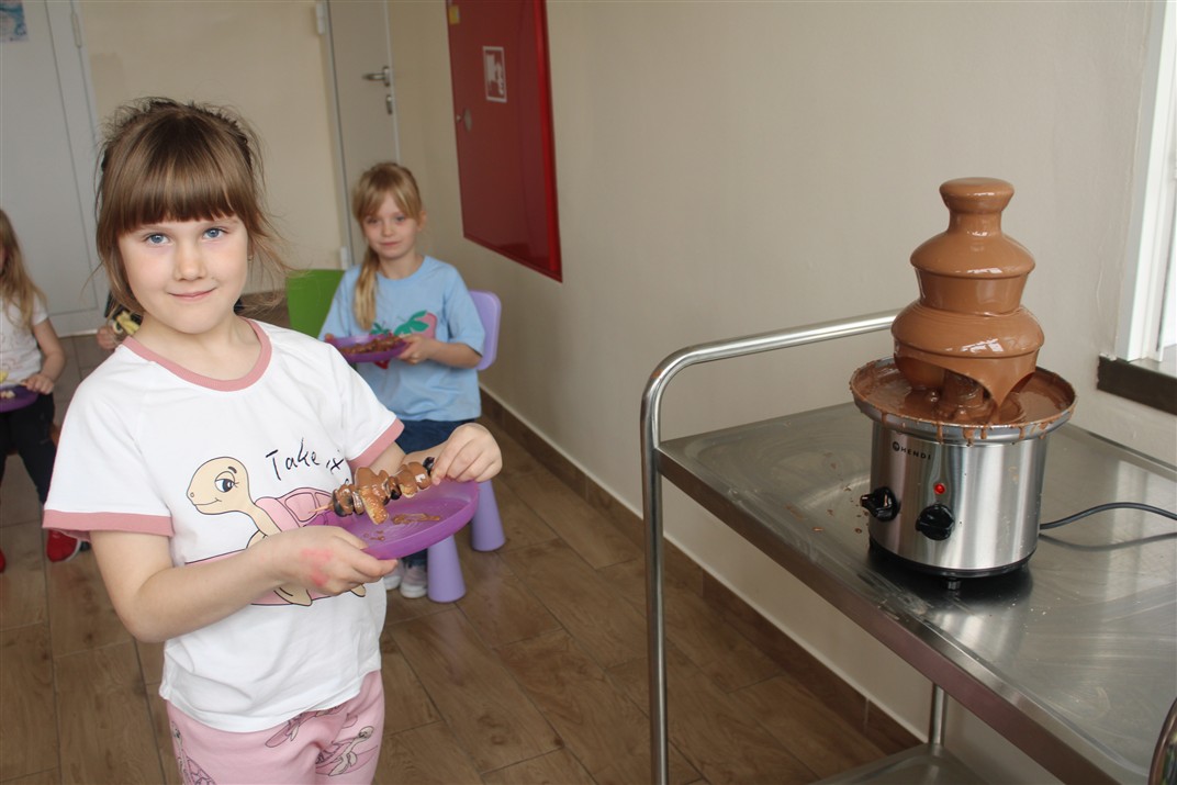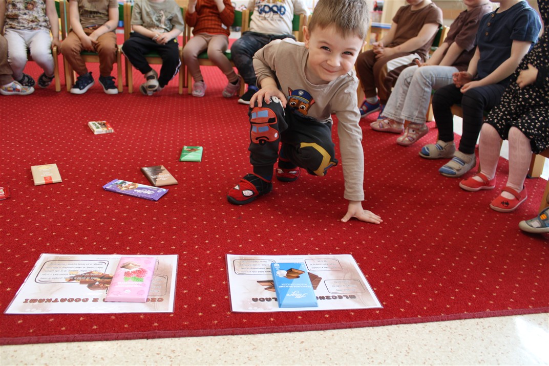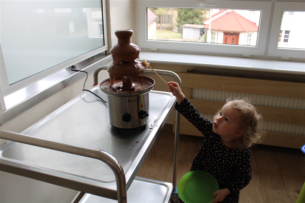 13 kwietnia w naszym przedszkolu obchodziliśmy wyjątkowy i bardzo słodki Dzień Czekolady. Tego dnia dzieci poznały skąd pochodzi czekolada i jak powstaje – od ziaren kakaowca aż po gotowy produkt. Przedszkolaki miały okazję poznać różne rodzaje czekolady – mleczną, białą i z dodatkami. Najbardziej jednak wyczekiwane było spróbowanie tych słodkości. Na dzieci czekała przygotowana fontanna czekolady z owocami. To był wyjątkowy dzień pełen radości oraz oczywiście królowej tego dnia – czekolady!