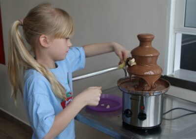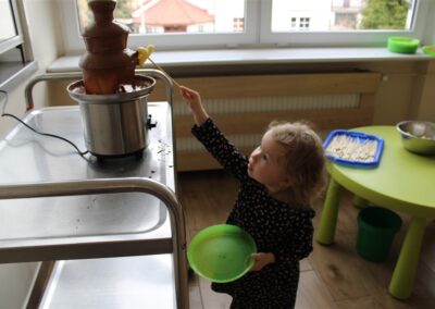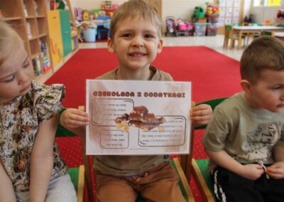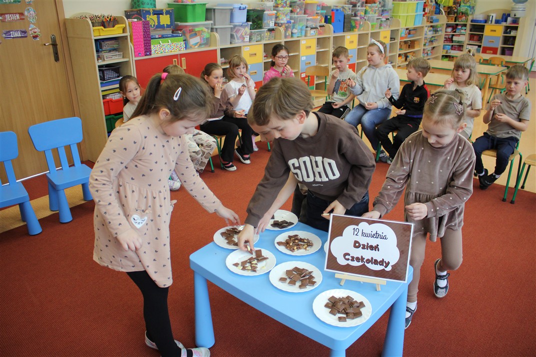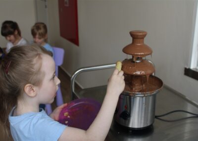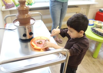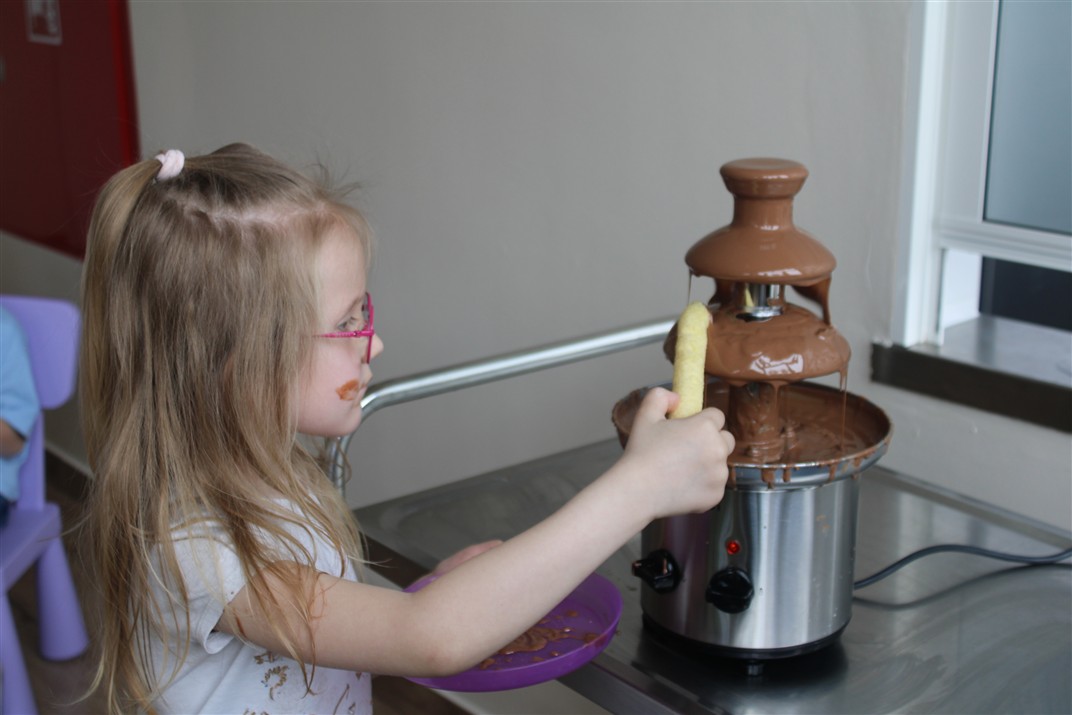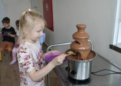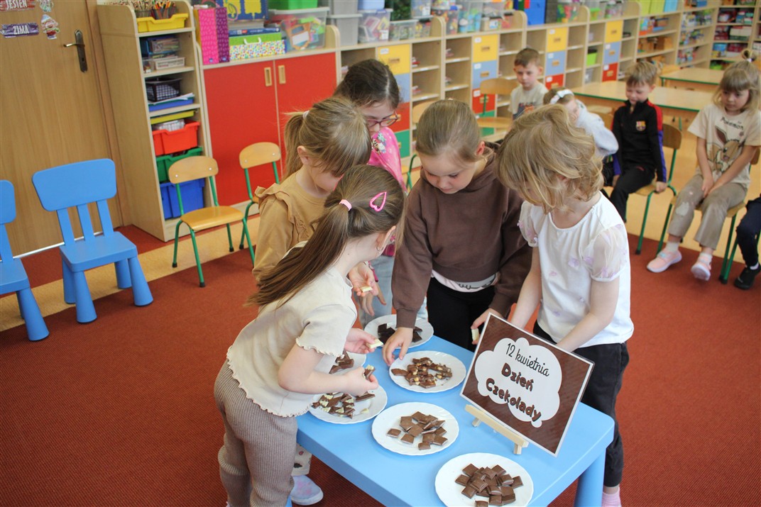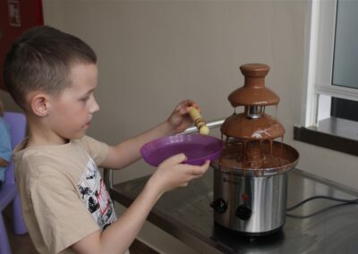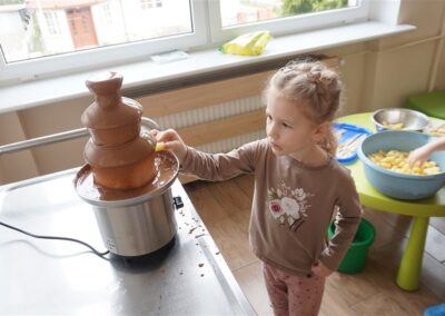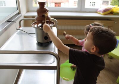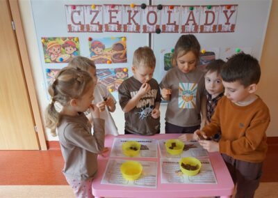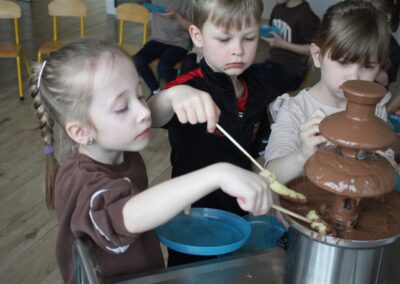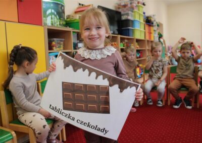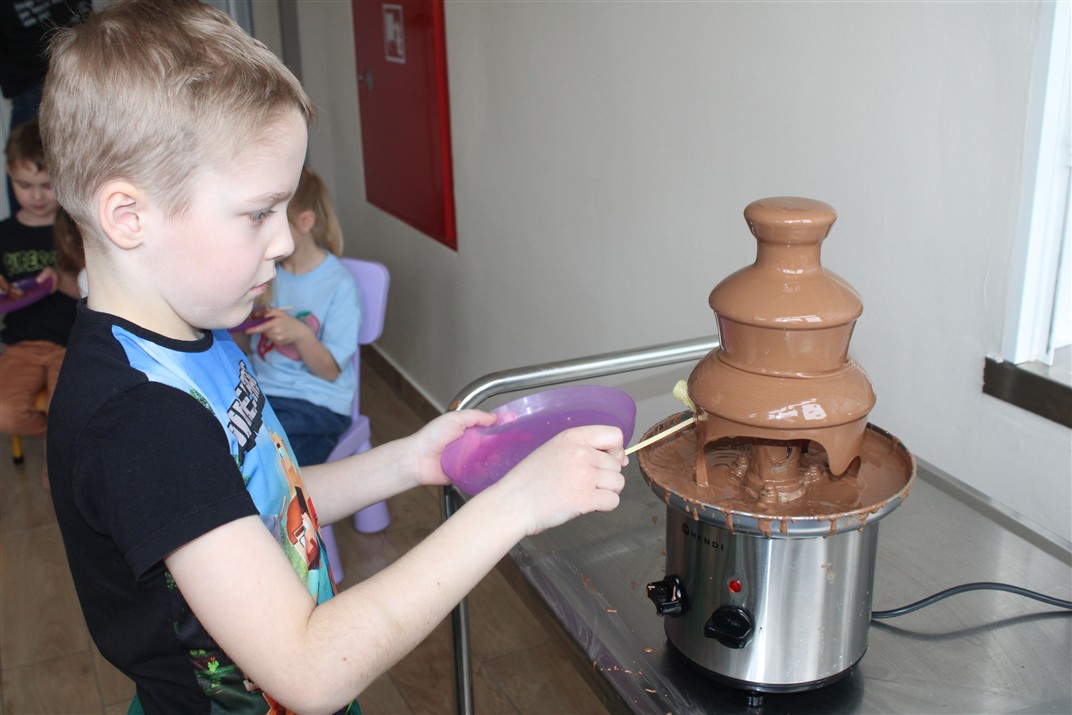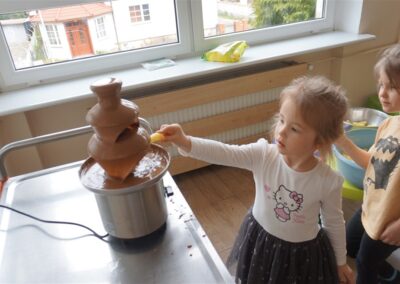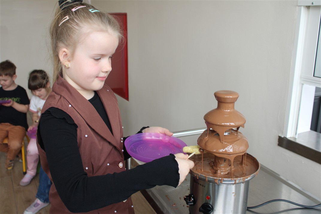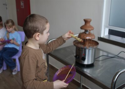 13 kwietnia w naszym przedszkolu obchodziliśmy wyjątkowy i bardzo słodki Dzień Czekolady. Tego dnia dzieci poznały skąd pochodzi czekolada i jak powstaje – od ziaren kakaowca aż po gotowy produkt. Przedszkolaki miały okazję poznać różne rodzaje czekolady – mleczną, białą i z dodatkami. Najbardziej jednak wyczekiwane było spróbowanie tych słodkości. Na dzieci czekała przygotowana fontanna czekolady z owocami. To był wyjątkowy dzień pełen radości oraz oczywiście królowej tego dnia – czekolady!
