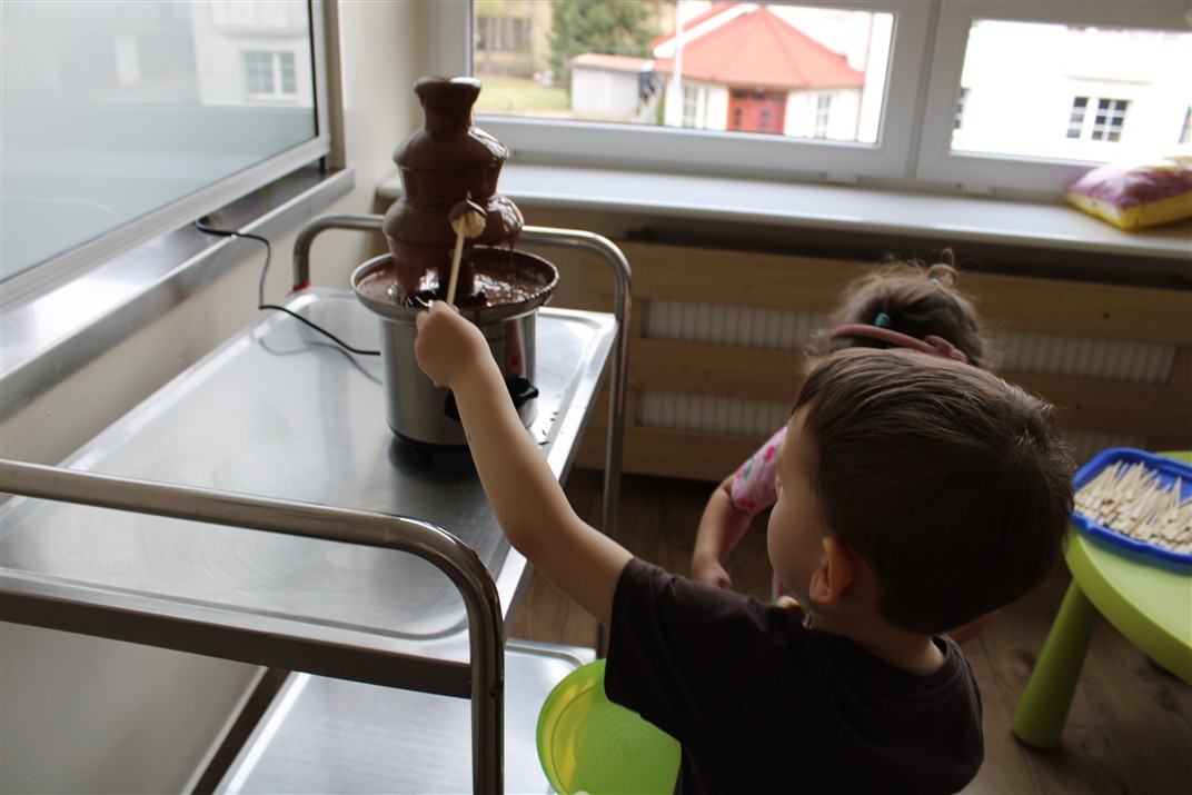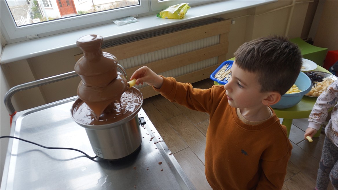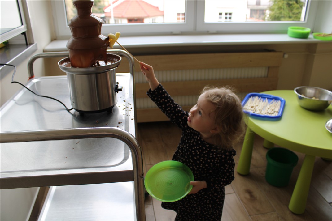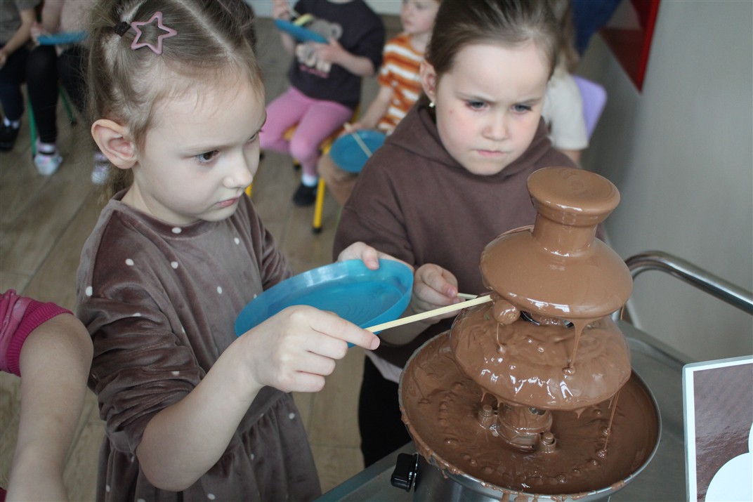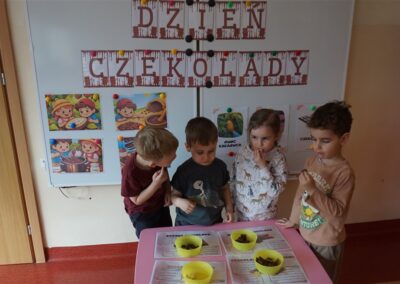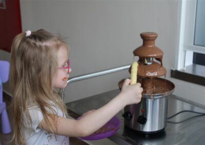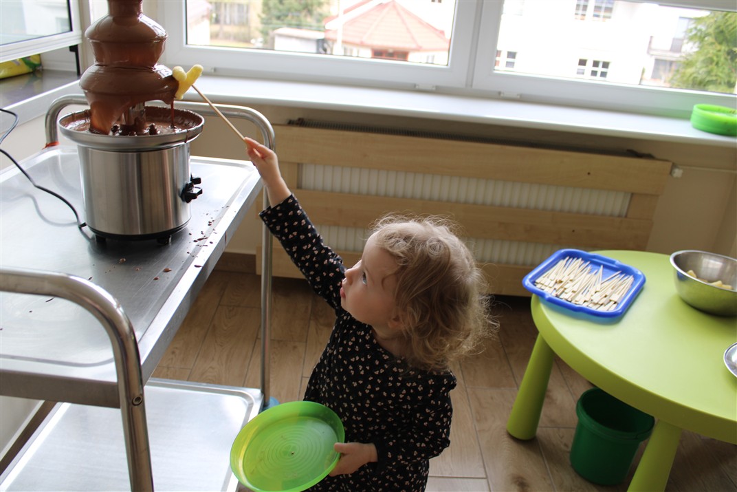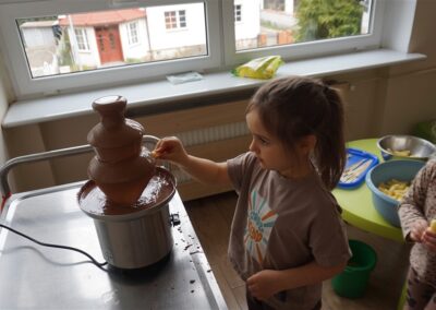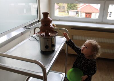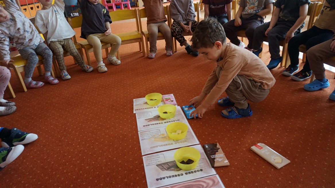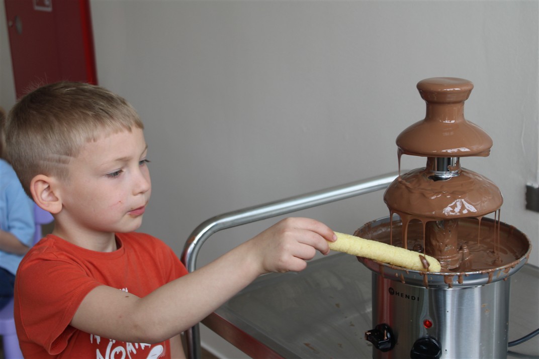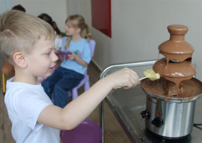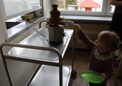 13 kwietnia w naszym przedszkolu obchodziliśmy wyjątkowy i bardzo słodki Dzień Czekolady. Tego dnia dzieci poznały skąd pochodzi czekolada i jak powstaje – od ziaren kakaowca aż po gotowy produkt. Przedszkolaki miały okazję poznać różne rodzaje czekolady – mleczną, białą i z dodatkami. Najbardziej jednak wyczekiwane było spróbowanie tych słodkości. Na dzieci czekała przygotowana fontanna czekolady z owocami. To był wyjątkowy dzień pełen radości oraz oczywiście królowej tego dnia – czekolady!