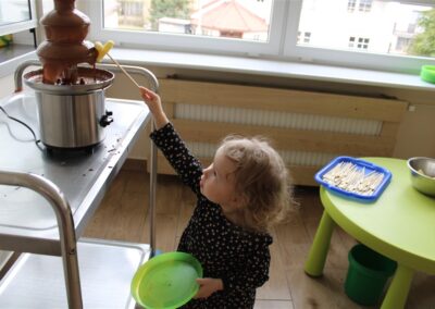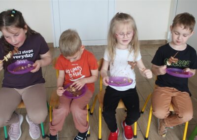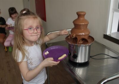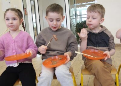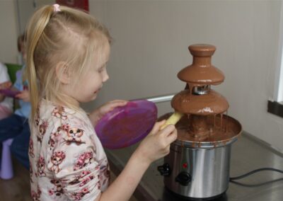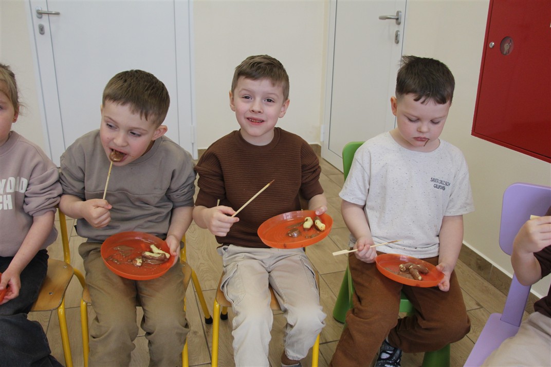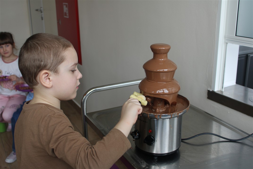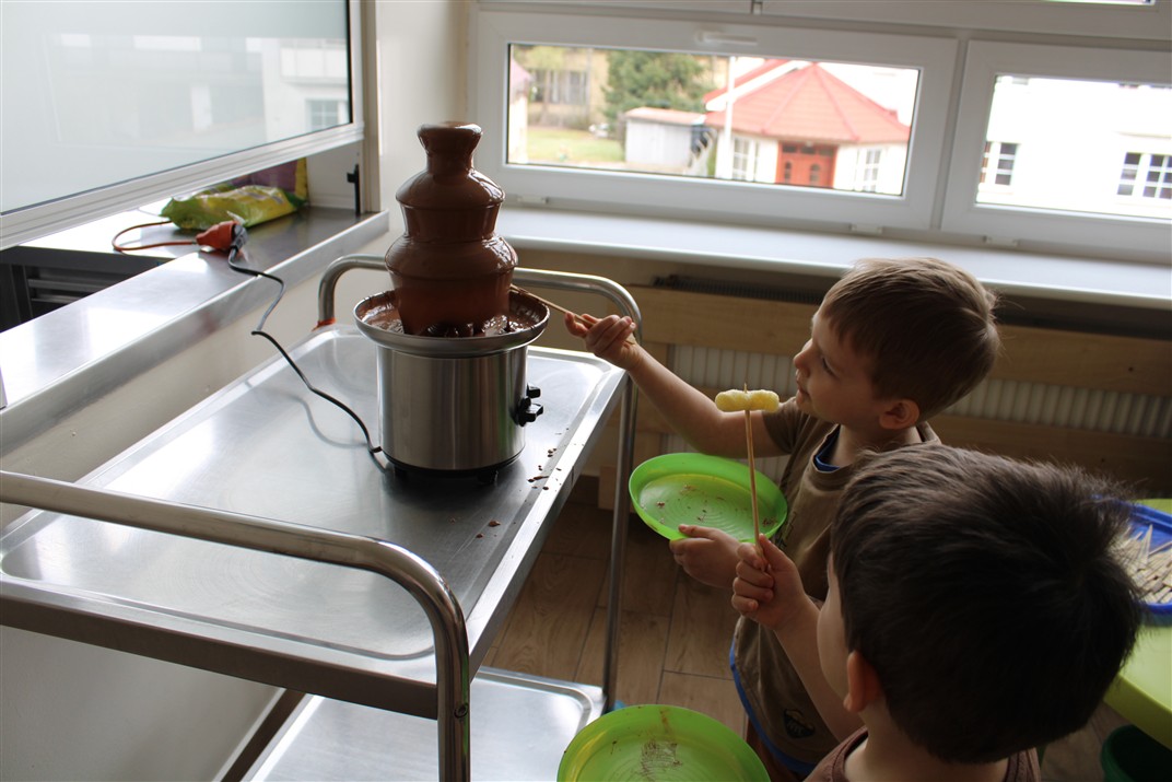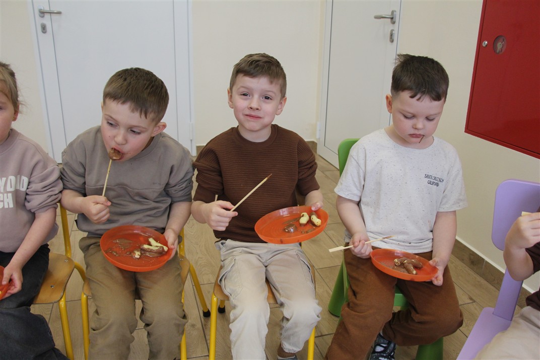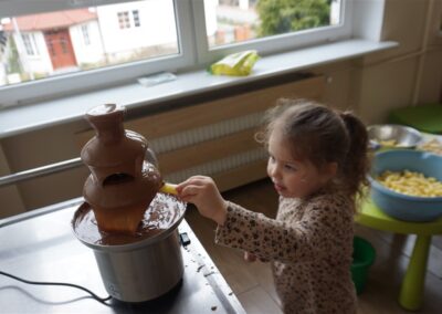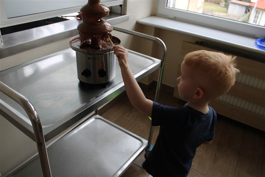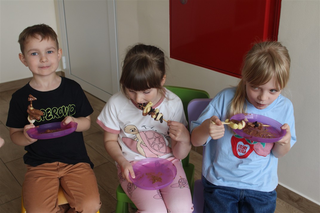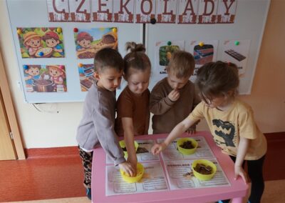 13 kwietnia w naszym przedszkolu obchodziliśmy wyjątkowy i bardzo słodki Dzień Czekolady. Tego dnia dzieci poznały skąd pochodzi czekolada i jak powstaje – od ziaren kakaowca aż po gotowy produkt. Przedszkolaki miały okazję poznać różne rodzaje czekolady – mleczną, białą i z dodatkami. Najbardziej jednak wyczekiwane było spróbowanie tych słodkości. Na dzieci czekała przygotowana fontanna czekolady z owocami. To był wyjątkowy dzień pełen radości oraz oczywiście królowej tego dnia – czekolady!