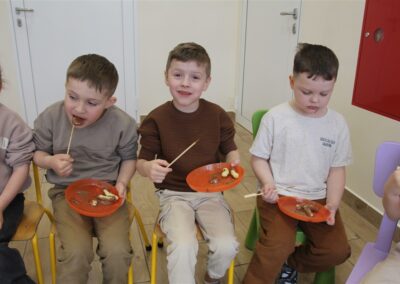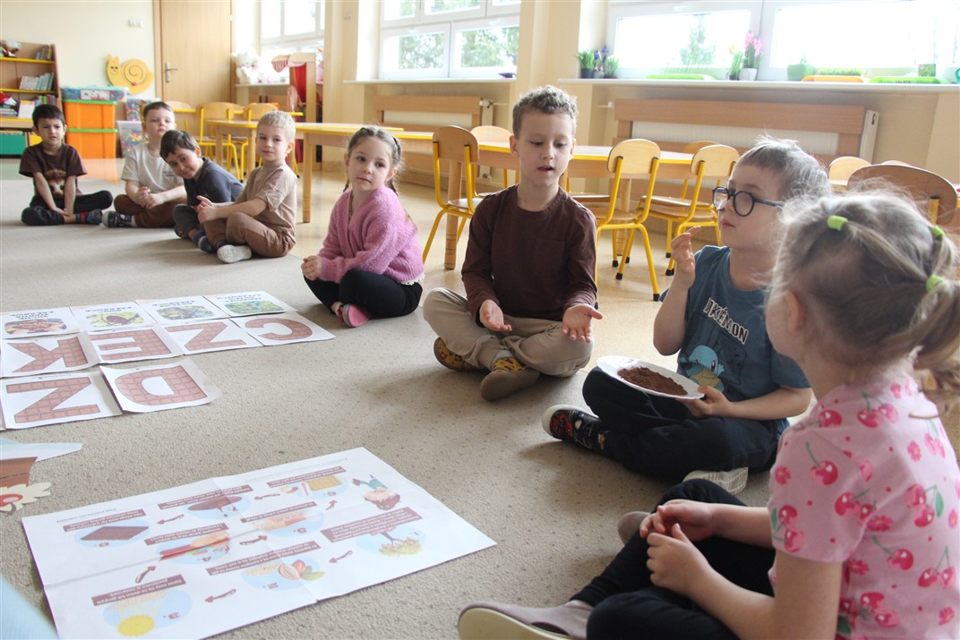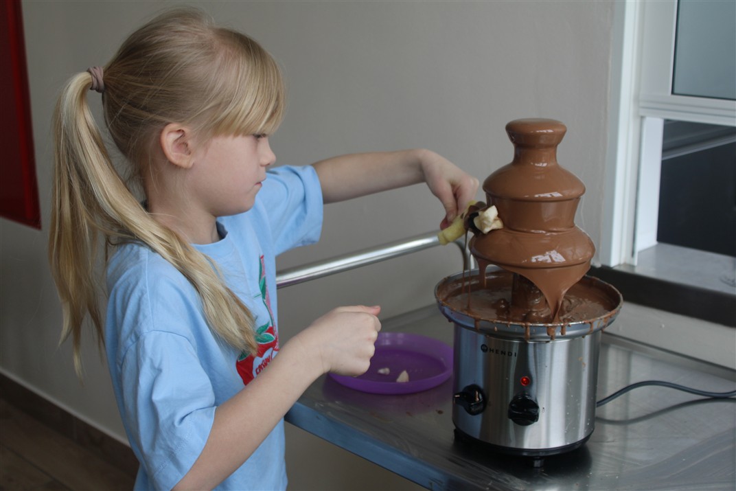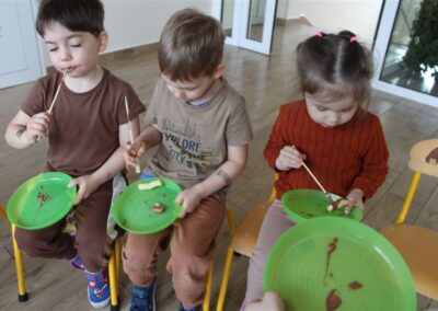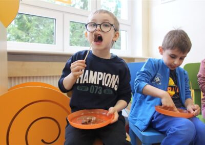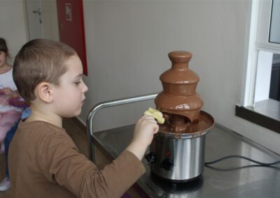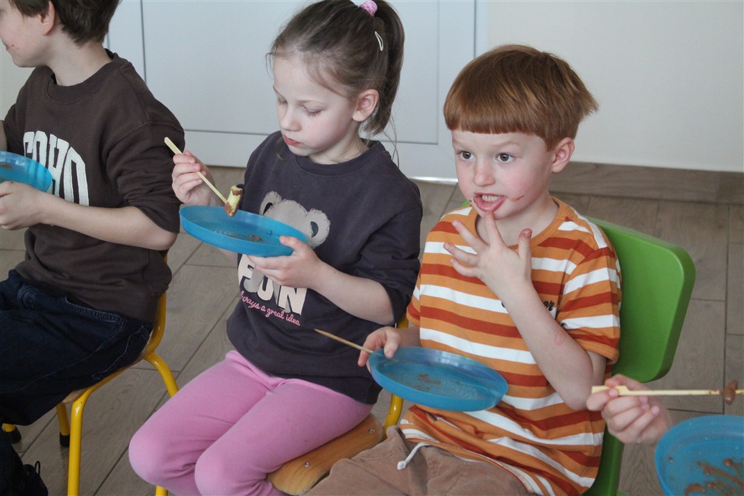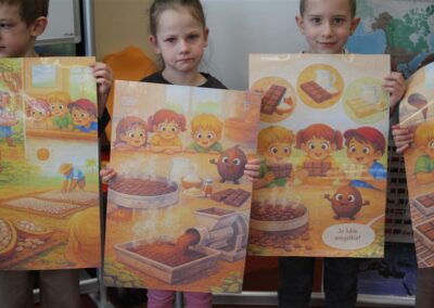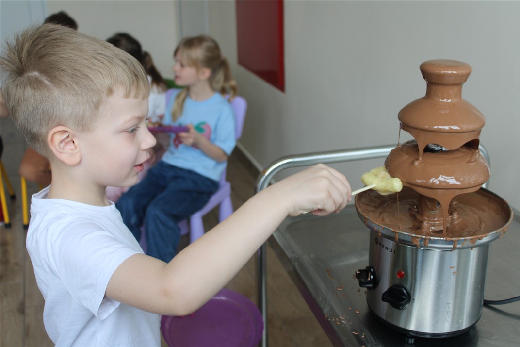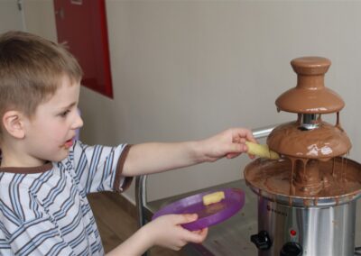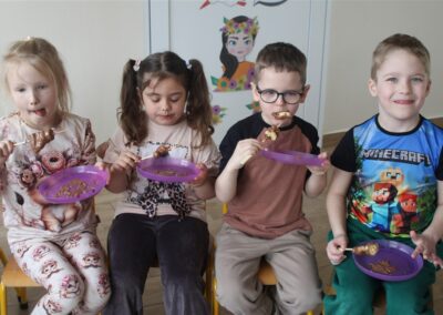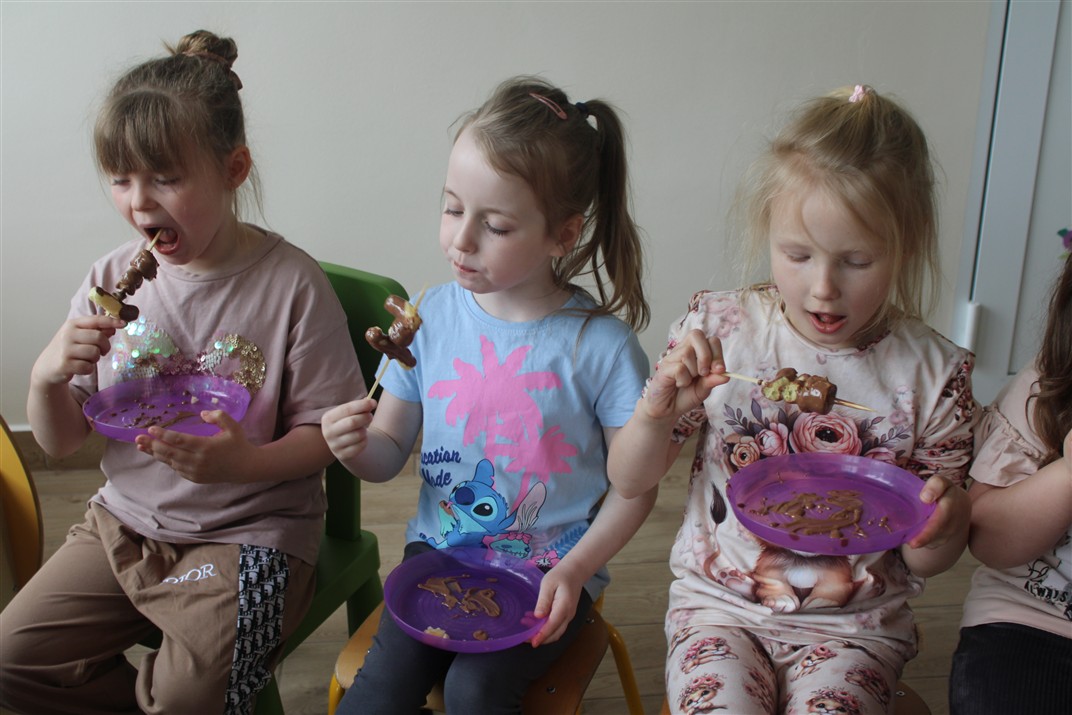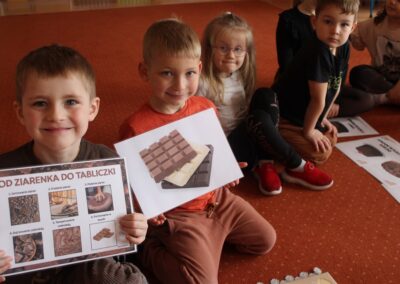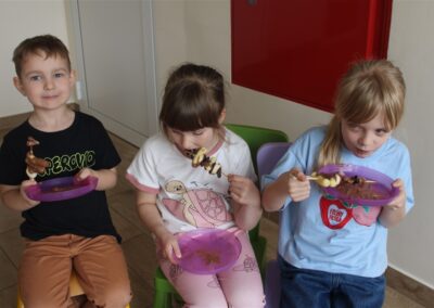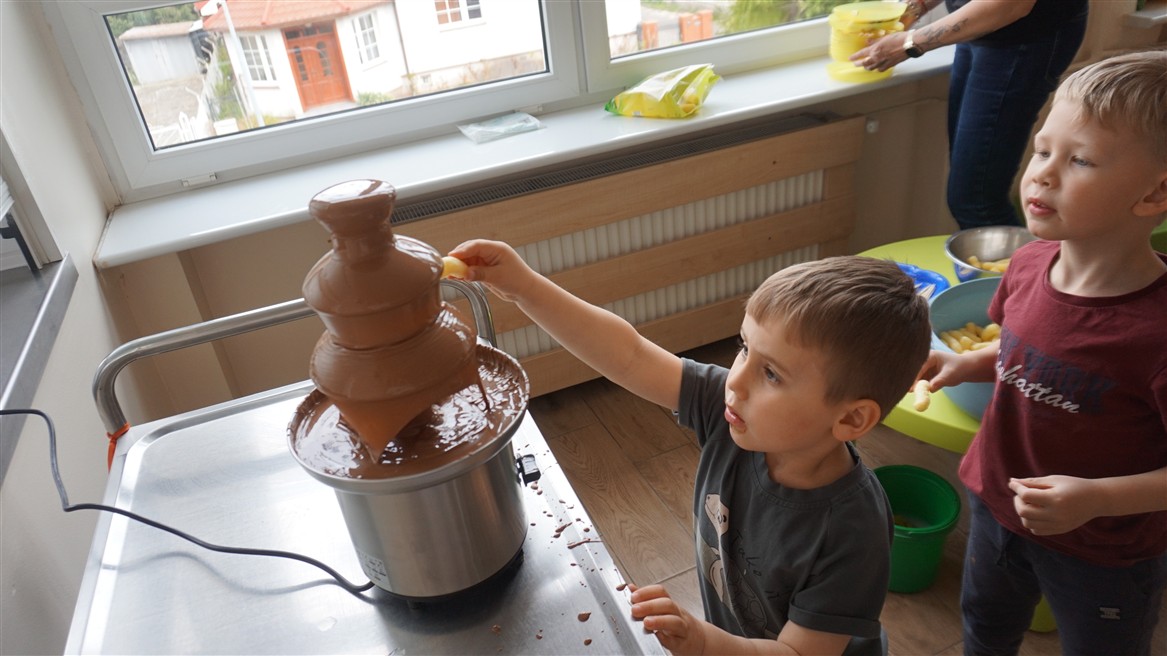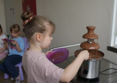 13 kwietnia w naszym przedszkolu obchodziliśmy wyjątkowy i bardzo słodki Dzień Czekolady. Tego dnia dzieci poznały skąd pochodzi czekolada i jak powstaje – od ziaren kakaowca aż po gotowy produkt. Przedszkolaki miały okazję poznać różne rodzaje czekolady – mleczną, białą i z dodatkami. Najbardziej jednak wyczekiwane było spróbowanie tych słodkości. Na dzieci czekała przygotowana fontanna czekolady z owocami. To był wyjątkowy dzień pełen radości oraz oczywiście królowej tego dnia – czekolady!