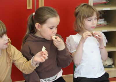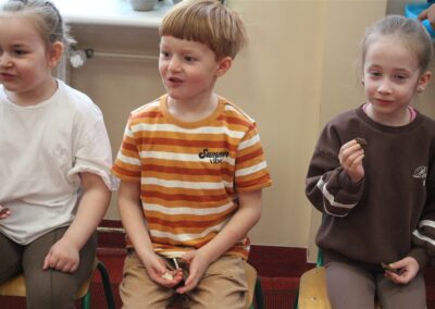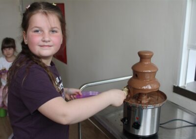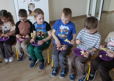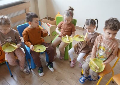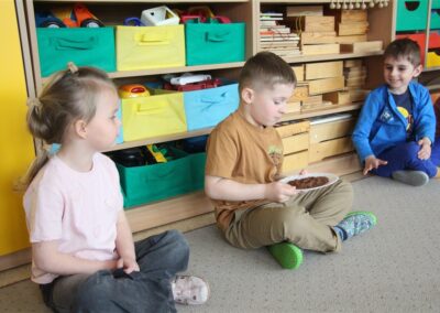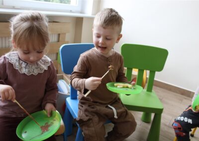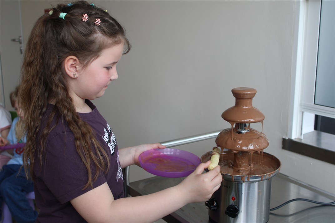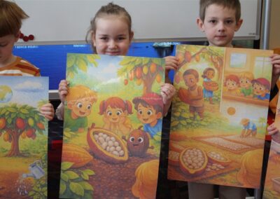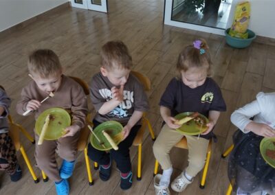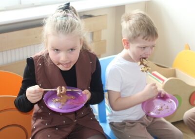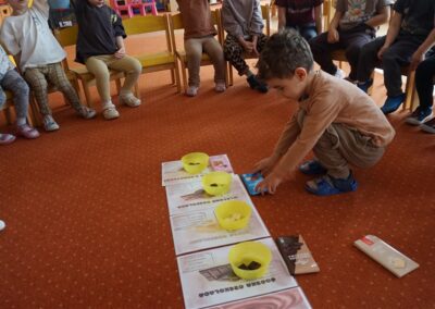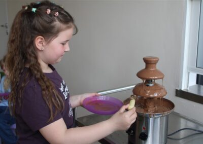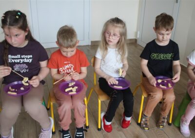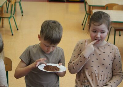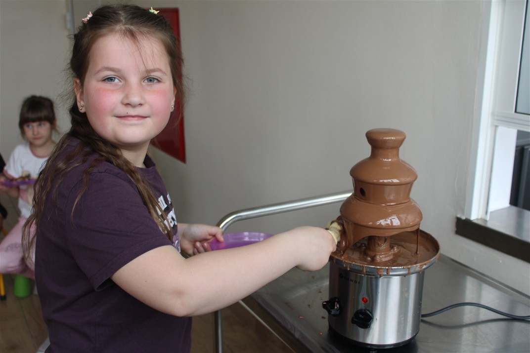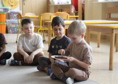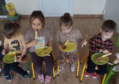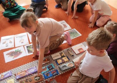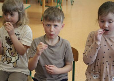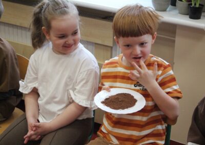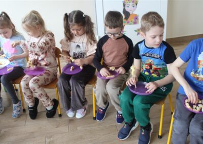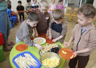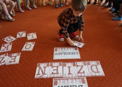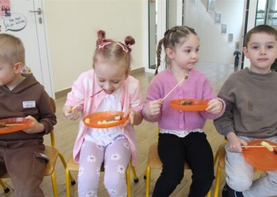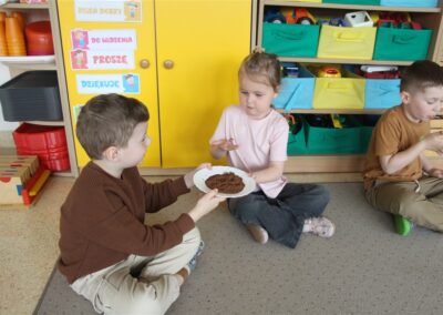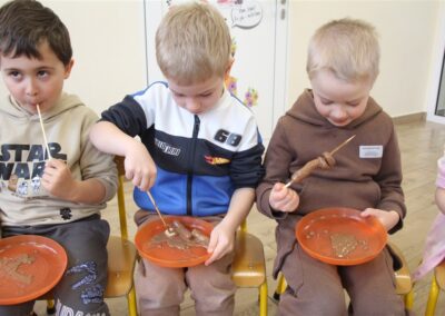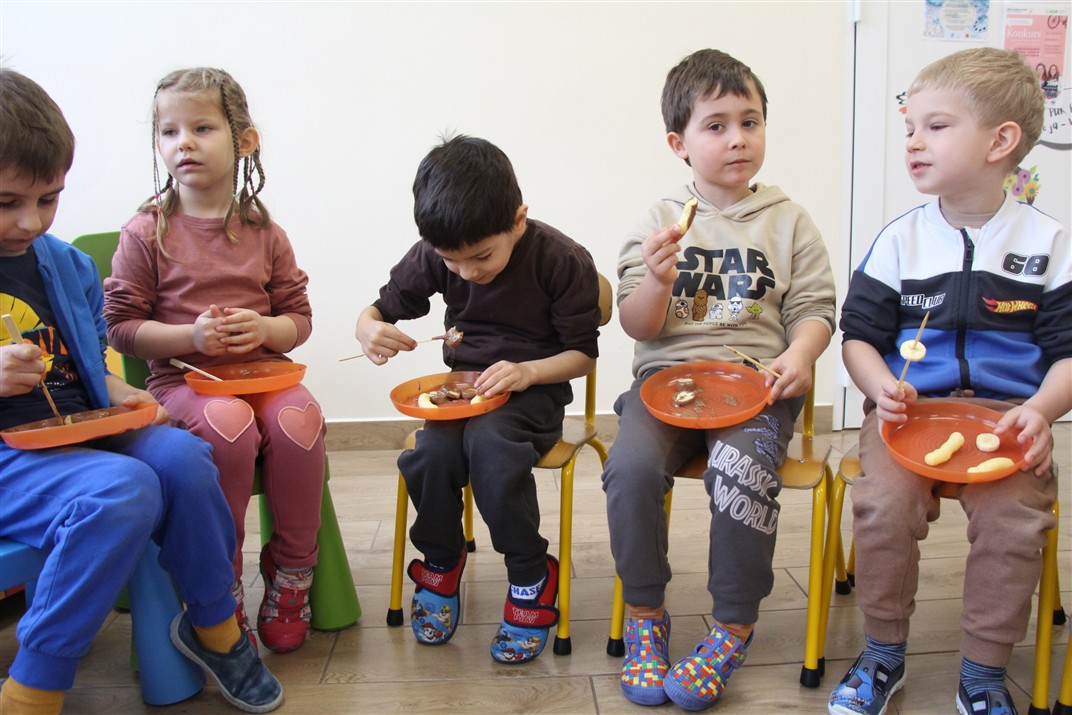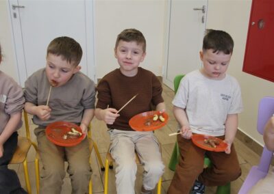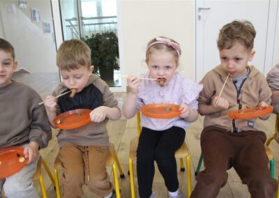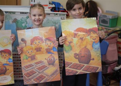 13 kwietnia w naszym przedszkolu obchodziliśmy wyjątkowy i bardzo słodki Dzień Czekolady. Tego dnia dzieci poznały skąd pochodzi czekolada i jak powstaje – od ziaren kakaowca aż po gotowy produkt. Przedszkolaki miały okazję poznać różne rodzaje czekolady – mleczną, białą i z dodatkami. Najbardziej jednak wyczekiwane było spróbowanie tych słodkości. Na dzieci czekała przygotowana fontanna czekolady z owocami. To był wyjątkowy dzień pełen radości oraz oczywiście królowej tego dnia – czekolady!
