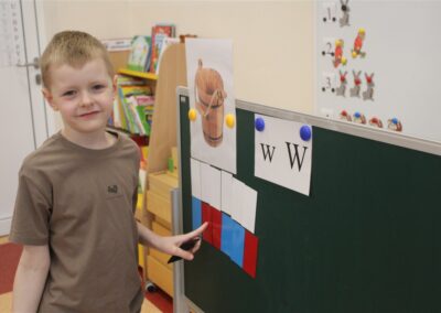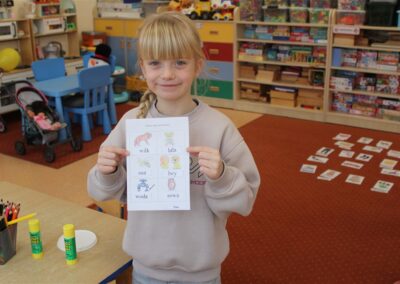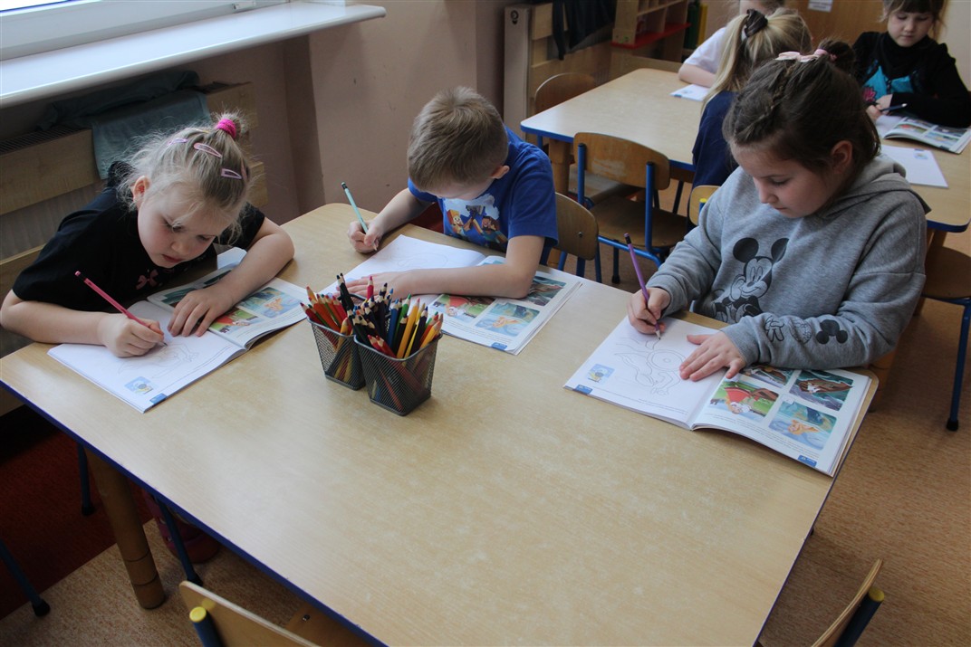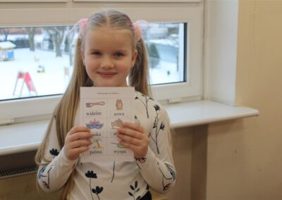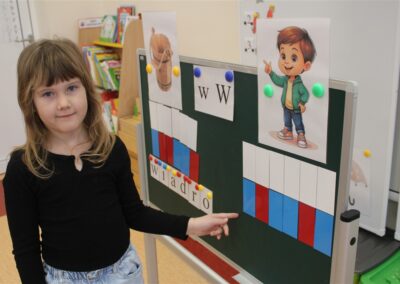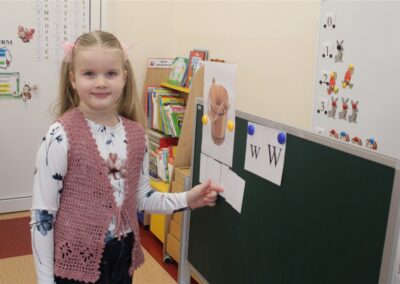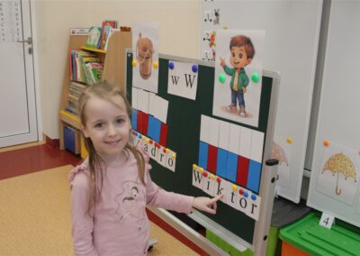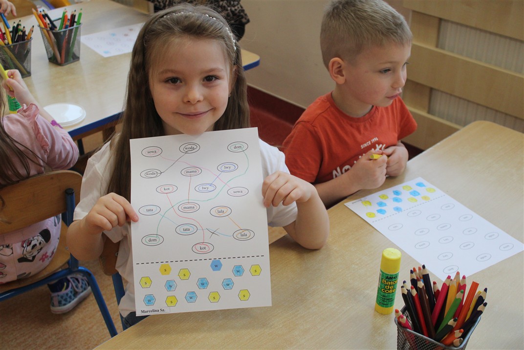 - utrwaliły poznane litery i poznały nową literę w, W – doskonaliły umiejętność czytania /wg indywidualnych możliwości/