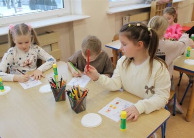 - rozwijały koordynację wzrokowo-ruchową i sprawność dłoni podczas wycinania, sklejania, rysowania – m.in. podczas wykonywania walentynek