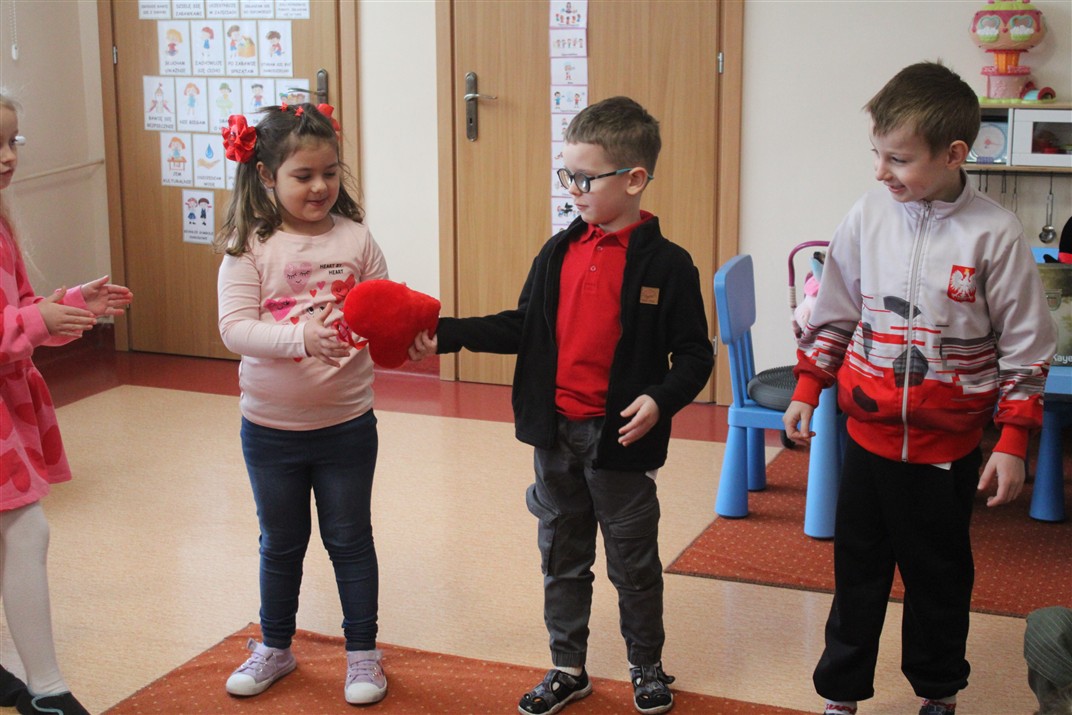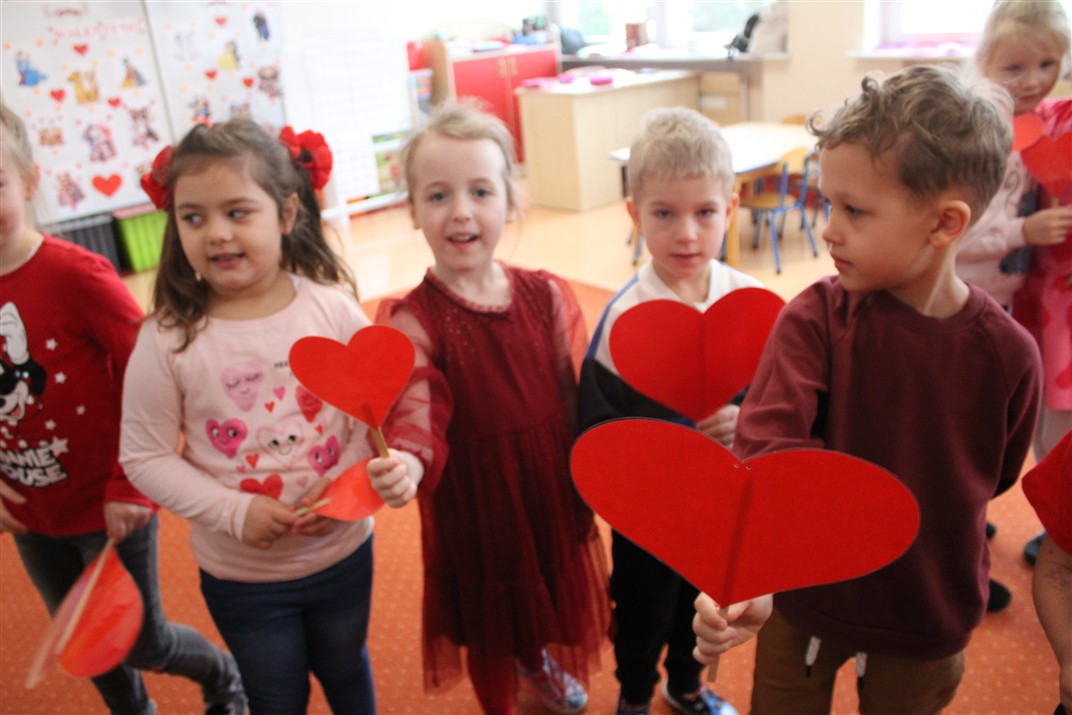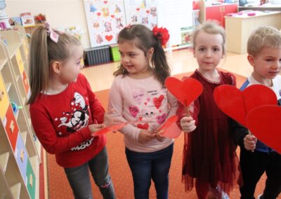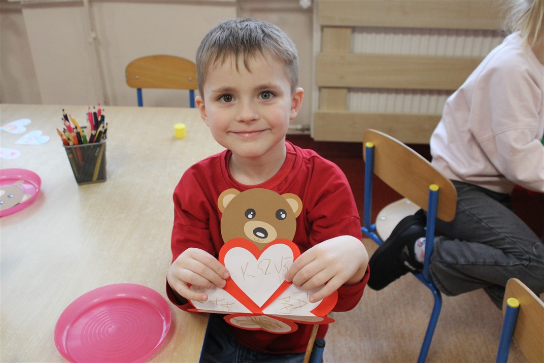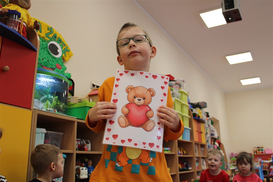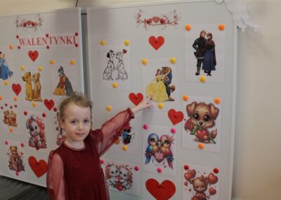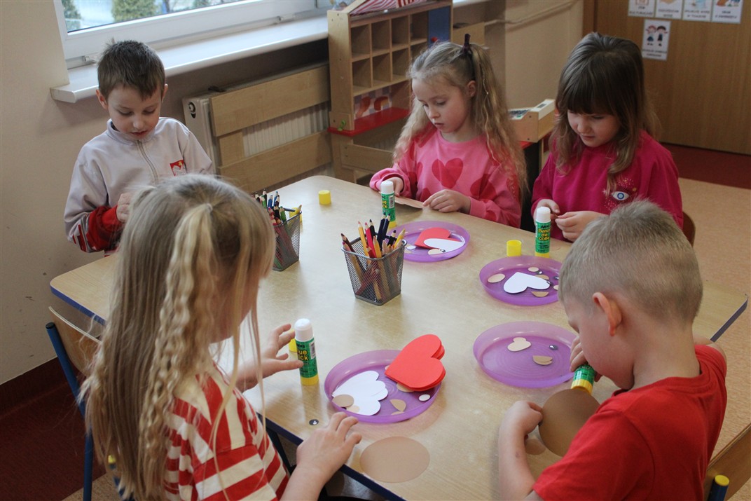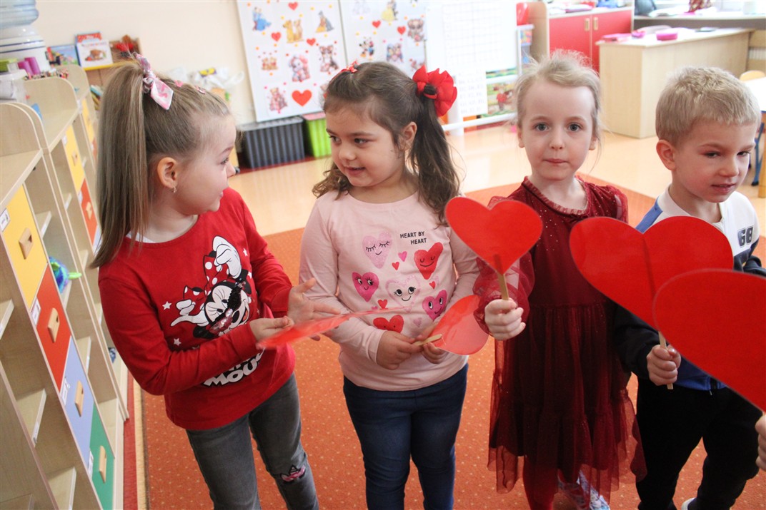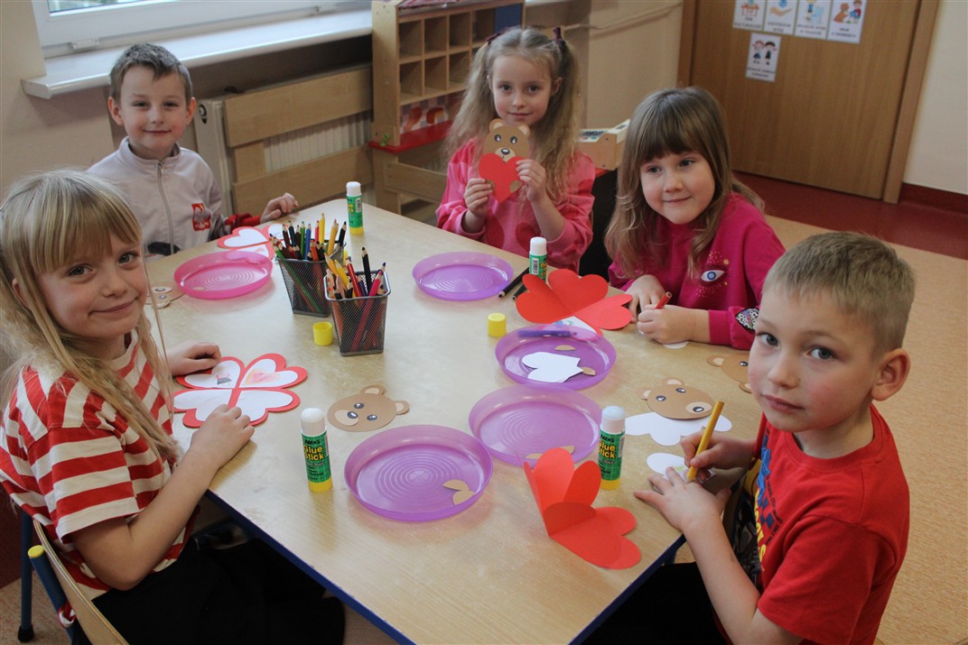 W dniu 13 lutego dzieci z grupy „Żabek” i „Biedronek” obchodziły Walentynki. Tego dnia wesoło bawiły się przy muzyce, układały memory, poznały bajkę dotyczącą Walentynek. Ponadto starszacy odkodowali obrazek przedstawiający serce, rozwiązali krzyżówkę o zakochanych bohaterach ulubionych bajek, której hasło brzmiało Walentynki. Natomiast podczas zabawy plastycznej wykonały walentynkę dla rodziców. Dzieci świetnie bawiły się i jednocześnie uczyły się okazywać uczucia innym osobom – kolegom, koleżankom, rodzicom… Był to dzień, który sprawił im wiele radości i niespodzianek.
