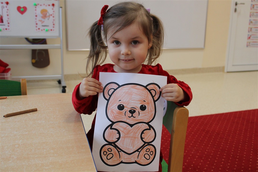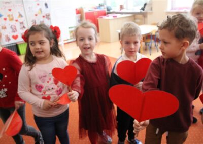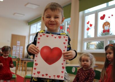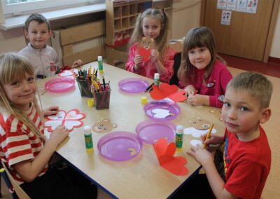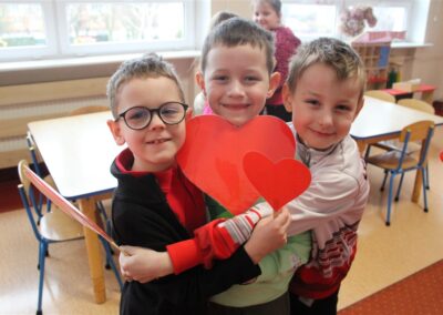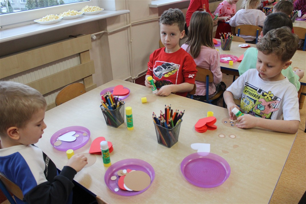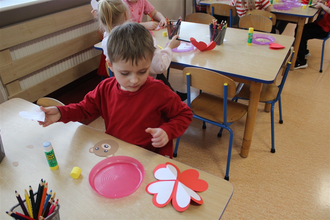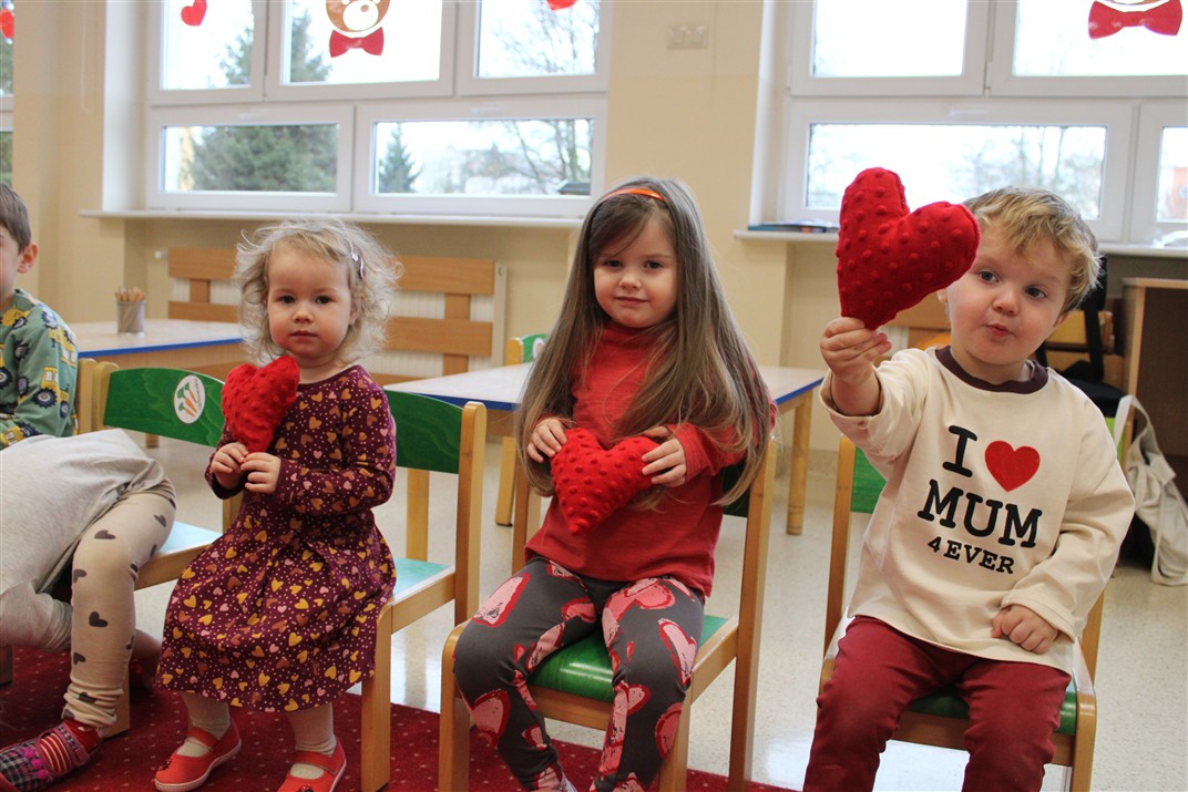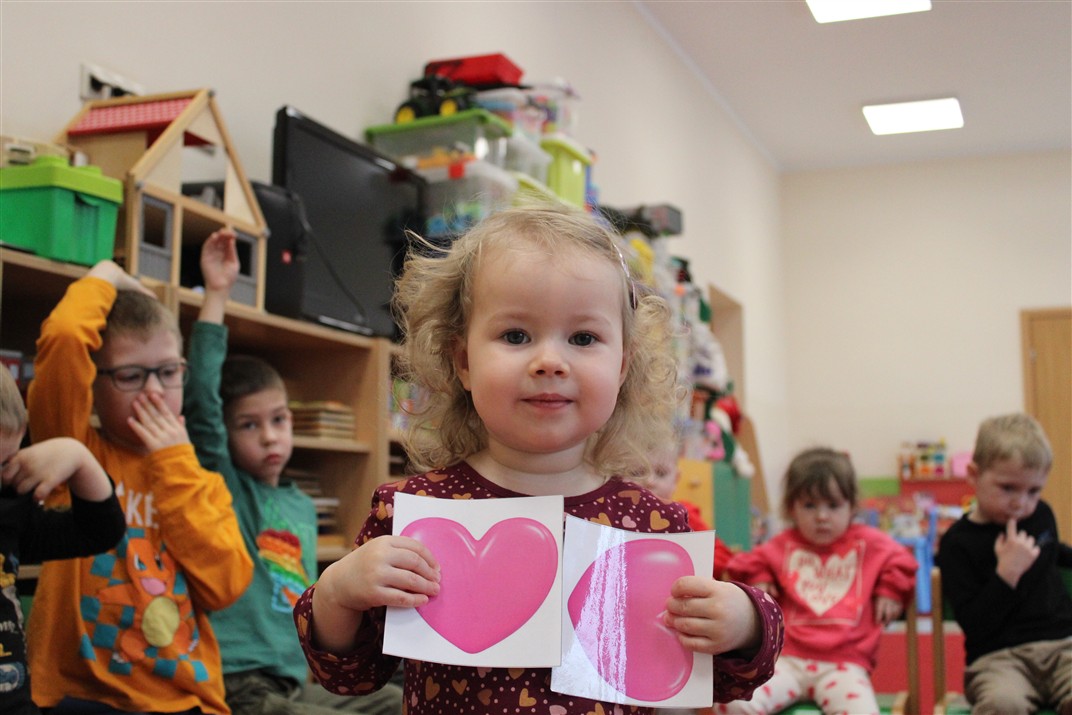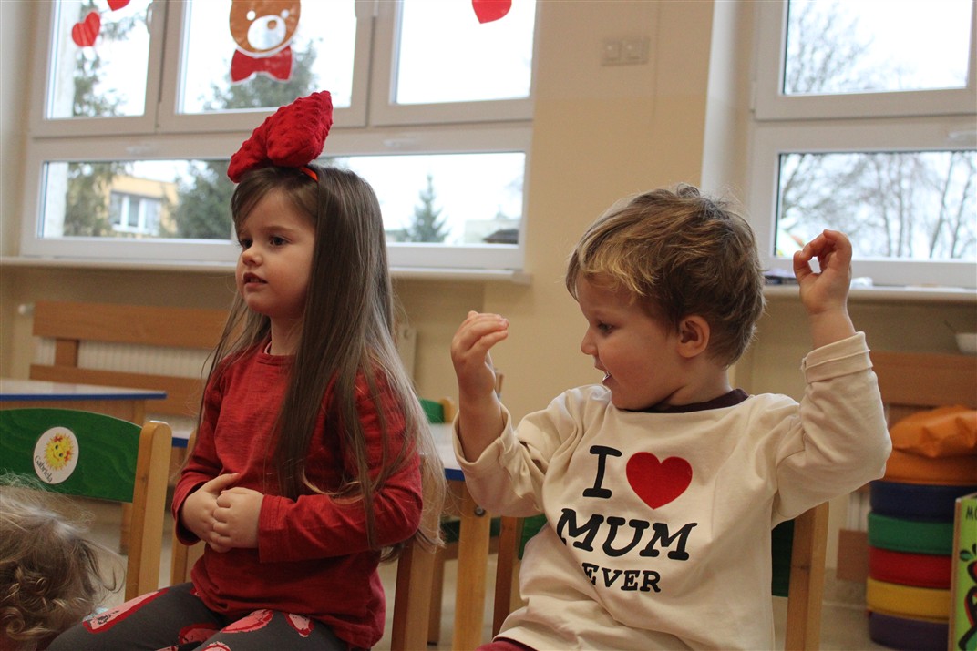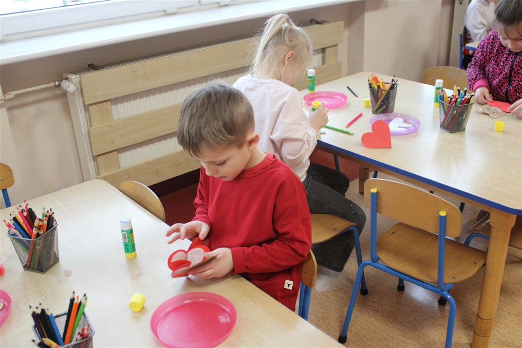 W dniu 13 lutego dzieci z grupy „Żabek” i „Biedronek” obchodziły Walentynki. Tego dnia wesoło bawiły się przy muzyce, układały memory, poznały bajkę dotyczącą Walentynek. Ponadto starszacy odkodowali obrazek przedstawiający serce, rozwiązali krzyżówkę o zakochanych bohaterach ulubionych bajek, której hasło brzmiało Walentynki. Natomiast podczas zabawy plastycznej wykonały walentynkę dla rodziców. Dzieci świetnie bawiły się i jednocześnie uczyły się okazywać uczucia innym osobom – kolegom, koleżankom, rodzicom… Był to dzień, który sprawił im wiele radości i niespodzianek.