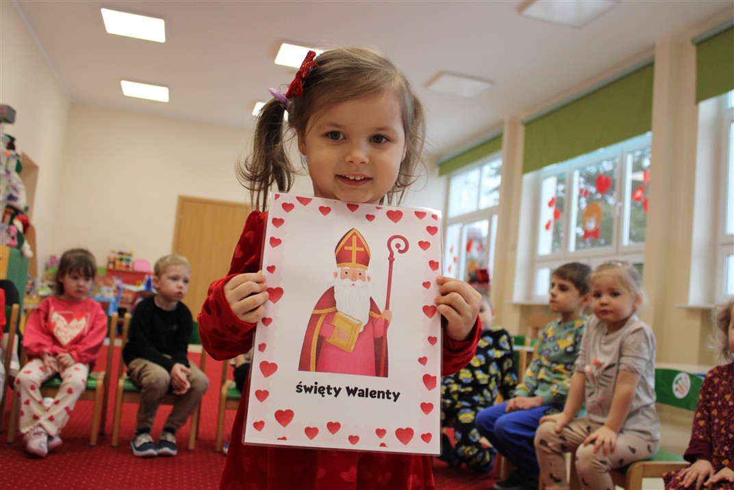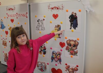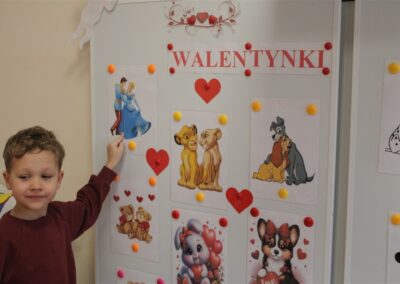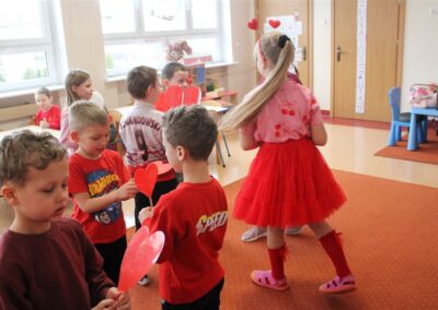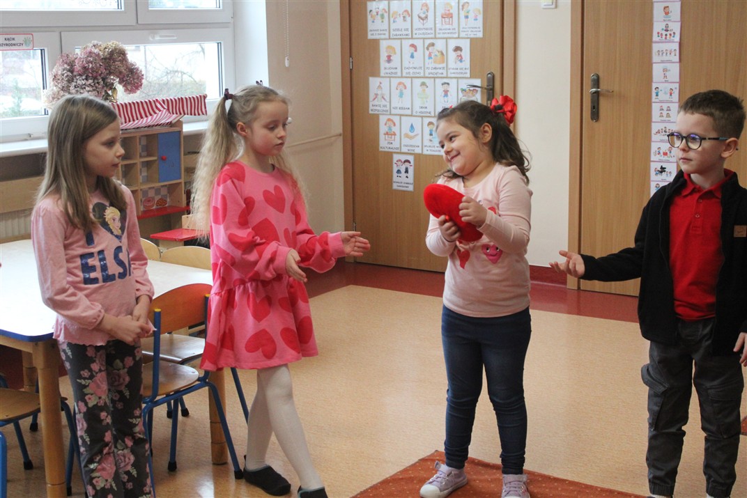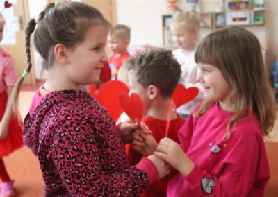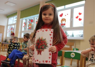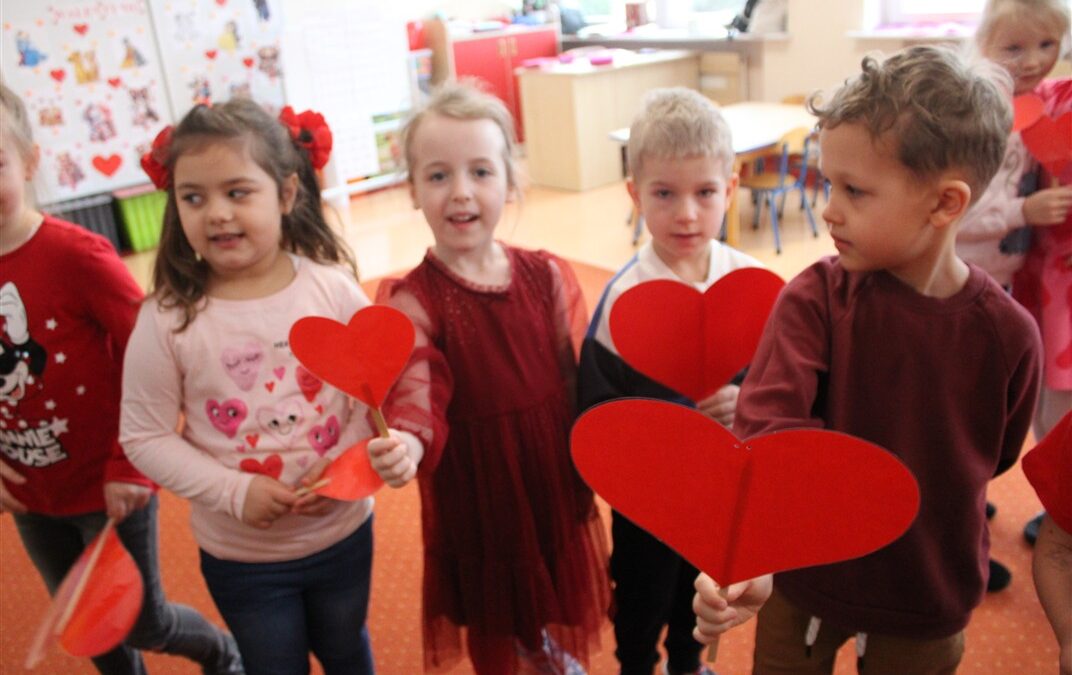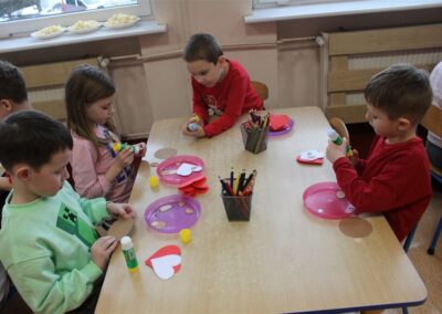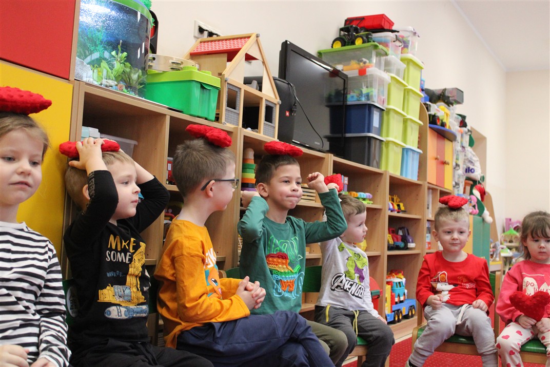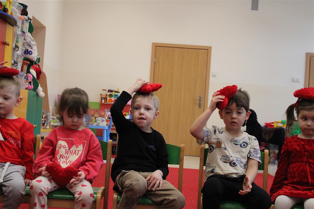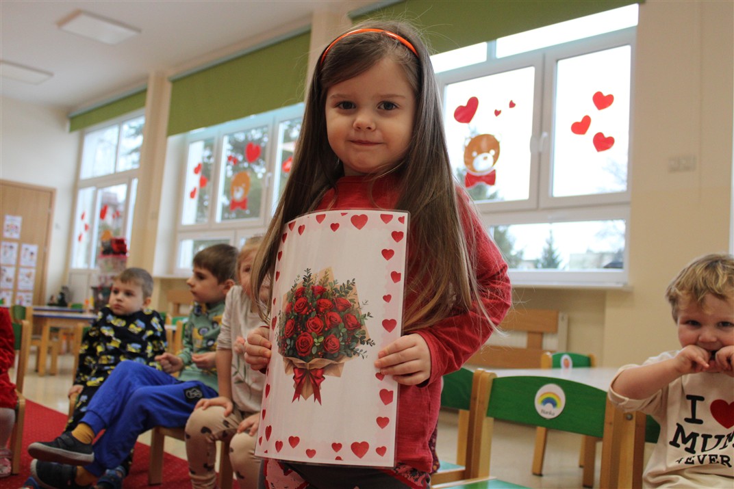 W dniu 13 lutego dzieci z grupy „Żabek” i „Biedronek” obchodziły Walentynki. Tego dnia wesoło bawiły się przy muzyce, układały memory, poznały bajkę dotyczącą Walentynek. Ponadto starszacy odkodowali obrazek przedstawiający serce, rozwiązali krzyżówkę o zakochanych bohaterach ulubionych bajek, której hasło brzmiało Walentynki. Natomiast podczas zabawy plastycznej wykonały walentynkę dla rodziców. Dzieci świetnie bawiły się i jednocześnie uczyły się okazywać uczucia innym osobom – kolegom, koleżankom, rodzicom… Był to dzień, który sprawił im wiele radości i niespodzianek.