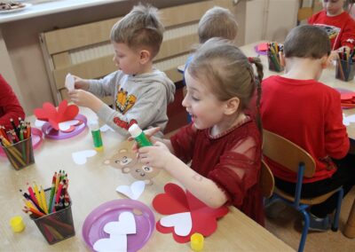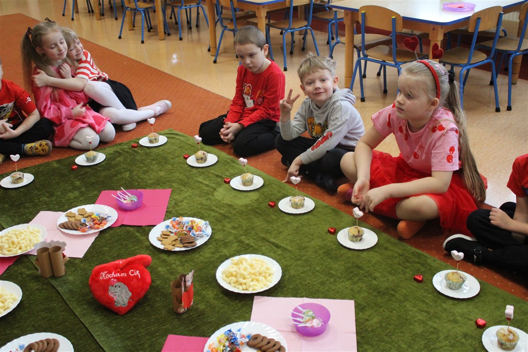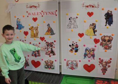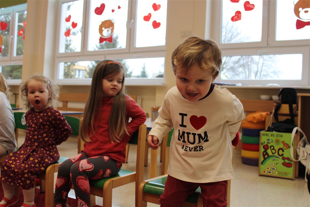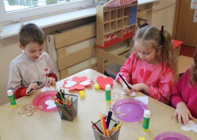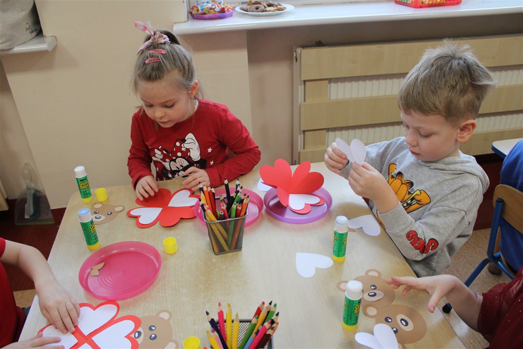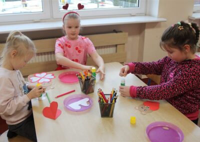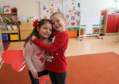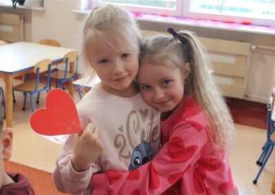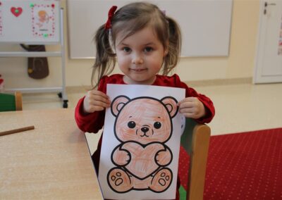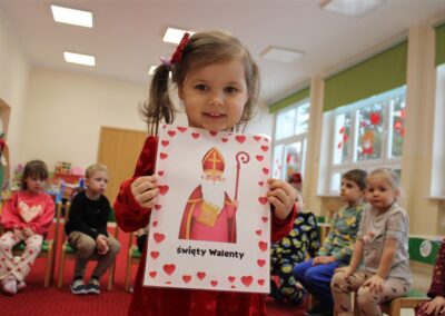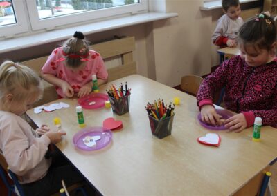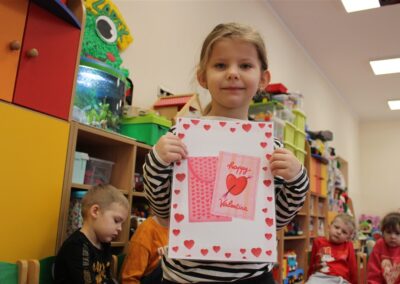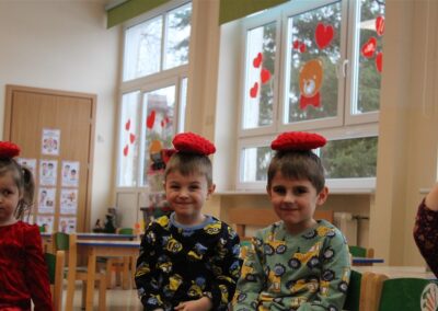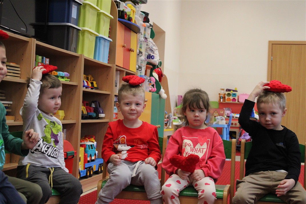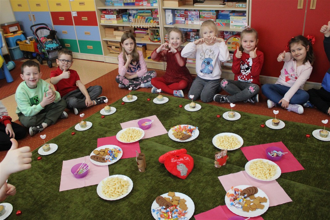 W dniu 13 lutego dzieci z grupy „Żabek” i „Biedronek” obchodziły Walentynki. Tego dnia wesoło bawiły się przy muzyce, układały memory, poznały bajkę dotyczącą Walentynek. Ponadto starszacy odkodowali obrazek przedstawiający serce, rozwiązali krzyżówkę o zakochanych bohaterach ulubionych bajek, której hasło brzmiało Walentynki. Natomiast podczas zabawy plastycznej wykonały walentynkę dla rodziców. Dzieci świetnie bawiły się i jednocześnie uczyły się okazywać uczucia innym osobom – kolegom, koleżankom, rodzicom… Był to dzień, który sprawił im wiele radości i niespodzianek.